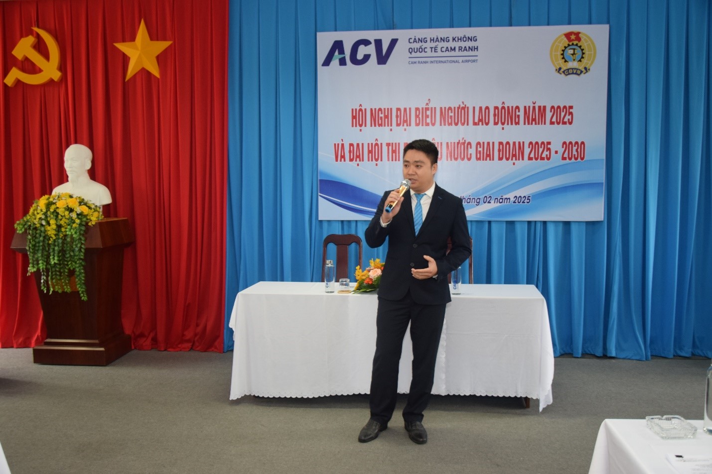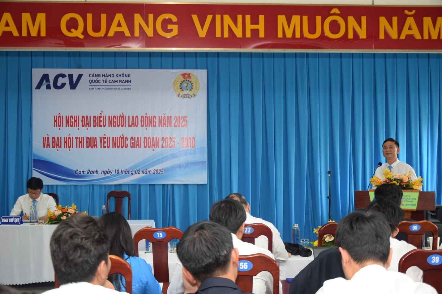 Chiều ngày 10/02/2025, trong không khí làm việc sôi nổi với tinh thần trách nhiệm cao, Cảng hàng không quốc tế Cam Ranh đã tổ chức thành công Hội nghị đại biểu Người lao động năm 2025 và Đại hội thi đua yêu nước giai đoạn 2025-2030. Đây là sự kiện quan trọng nhằm tổng kết tình hình hoạt động trong năm qua, đề ra phương hướng cho năm tới, đồng thời là diễn đàn để người lao động thực hiện quyền dân chủ được biết, được tham gia ý kiến, được giám sát, kiểm tra những vấn đề có liên quan đến quyền, lợi ích, nghĩa vụ và trách nhiệm của người lao động. Thông qua thực hiện quyền dân chủ trực tiếp tại hội nghị người lao động xây dựng mối quan hệ lao động hài hòa, ổn định và tiến bộ, góp phần vào sự phát triển chung của đơn vị.