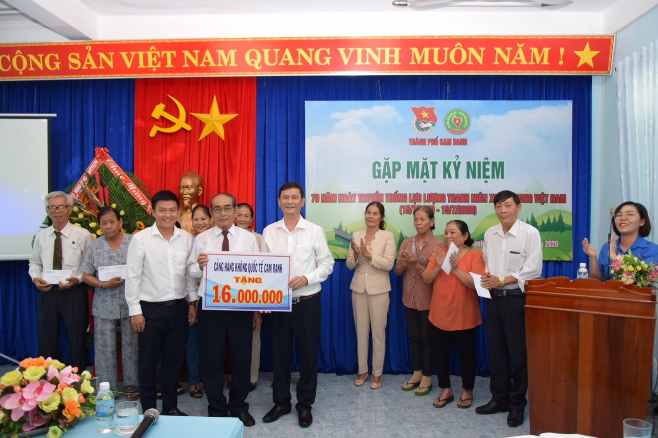 Với ý nghĩa đó, để chia sẻ một phần khó khăn của Hội, Công đoàn – Đoàn thanh niên Cảng hàng không QT Cam Ranh đã trao tặng 11 phần quà cho 11 đồng chí Thanh niên xung phong có hoàn cảnh đặc biệt khó khăn và 01 phần quà cho Hội thanh niên xung phong thành phố Cam Ranh, tổng giá trị các phần quà là 16 triệu đồng.