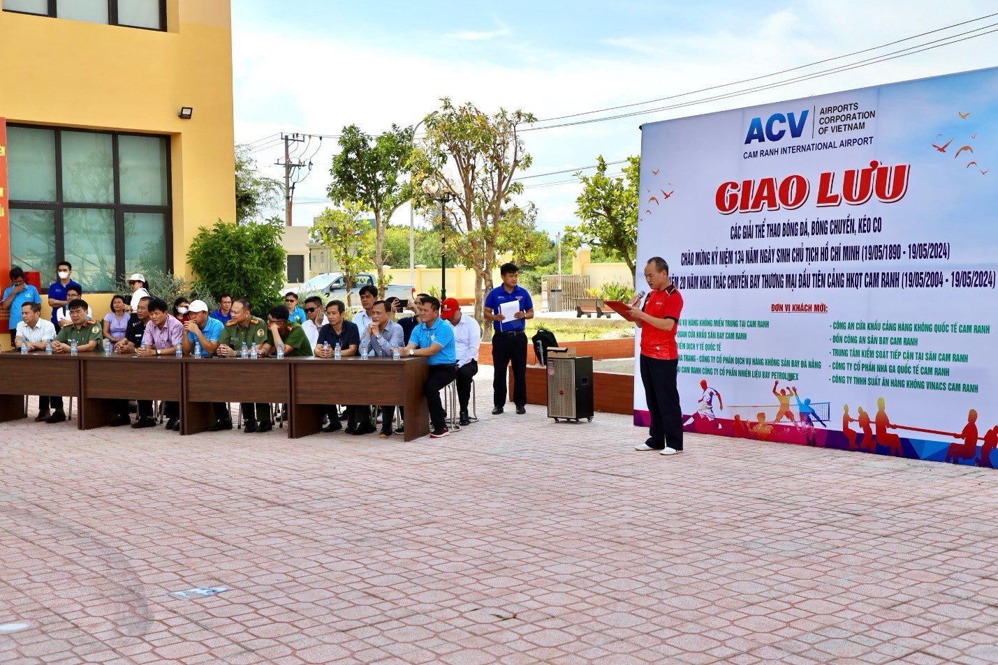 Trong không khí vui tươi, phấn khởi chào mừng các ngày lễ lớn, các sự kiện trọng đại của năm. Cảng hàng không quốc tế Cam Ranh phối hợp với các cơ quan đơn vị long trọng tổ chức giải thể thao mở rộng gồm các môn: Bóng đá, bóng chuyền, kéo co để chào mừng kỷ niệm 134 năm ngày sinh Chủ tịch Hồ Chí Minh (19/05/1890-19/05/2024) và Kỷ niệm 20 năm khai thác chuyến bay thương mại đầu tiên tại Cảng hàng không quốc tế Cam Ranh (19/05/2004-19/05/2024).