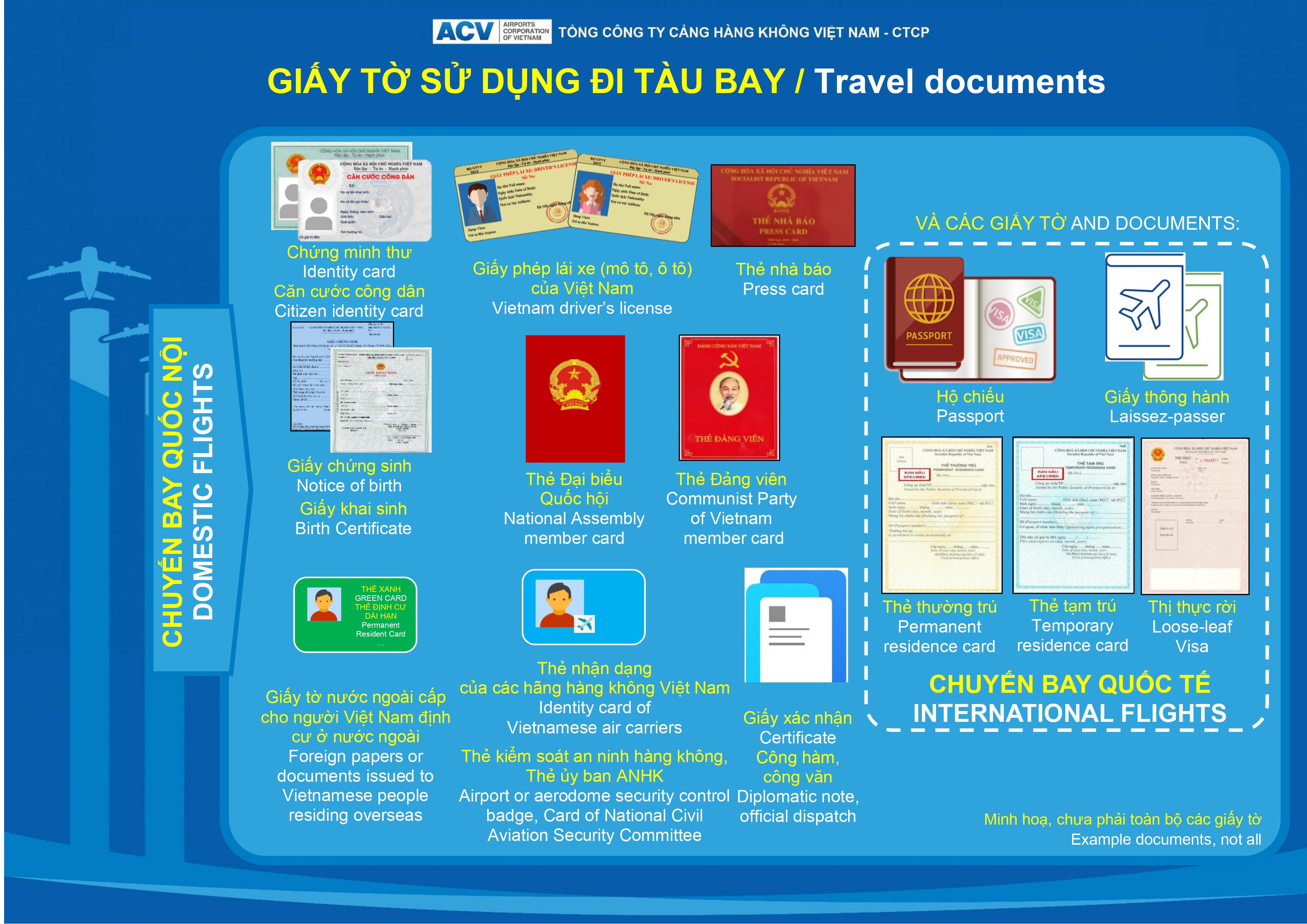 - Các loại giấy tờ có thể sử dụng để đi tàu bay (Travel documents):