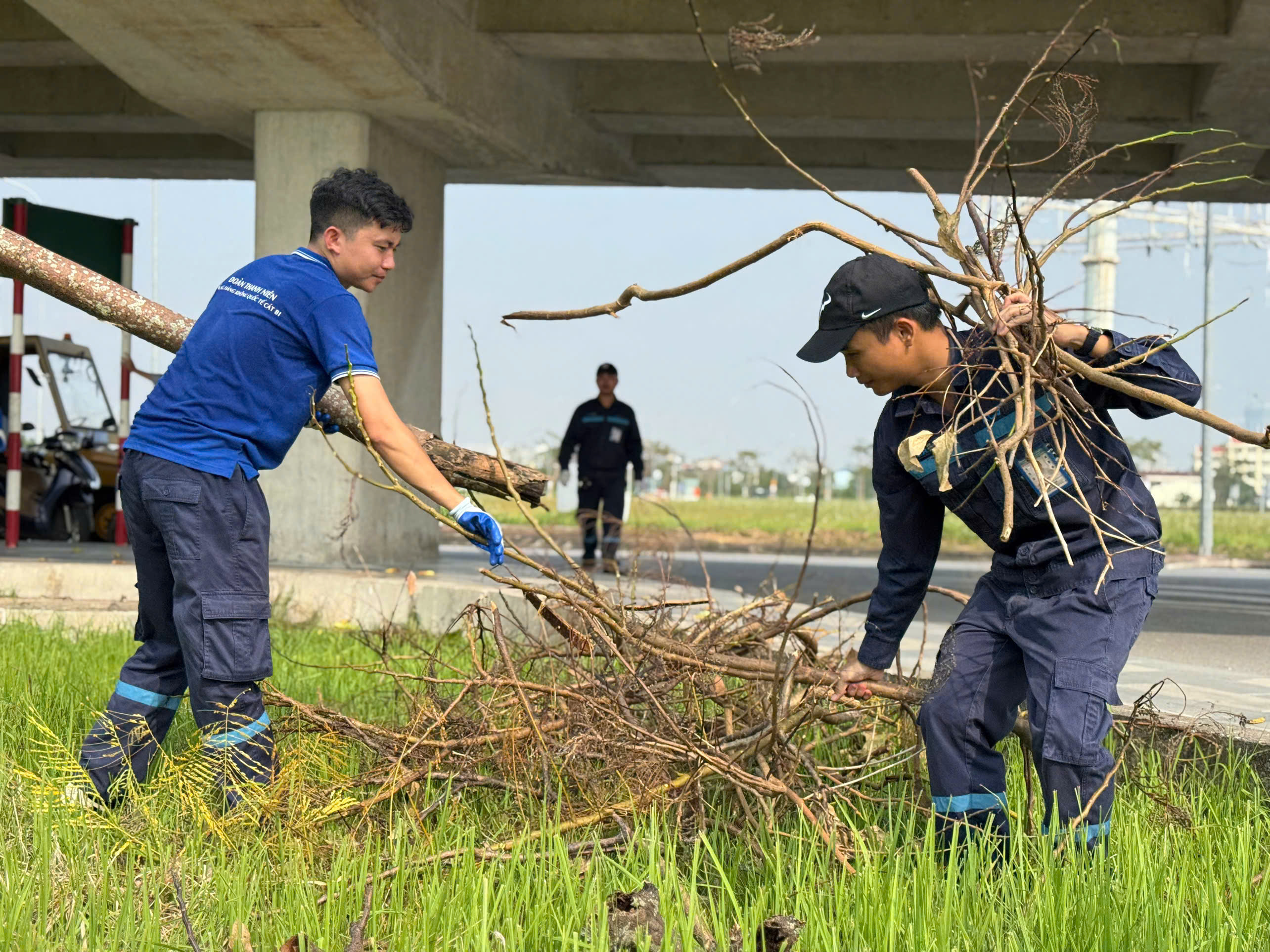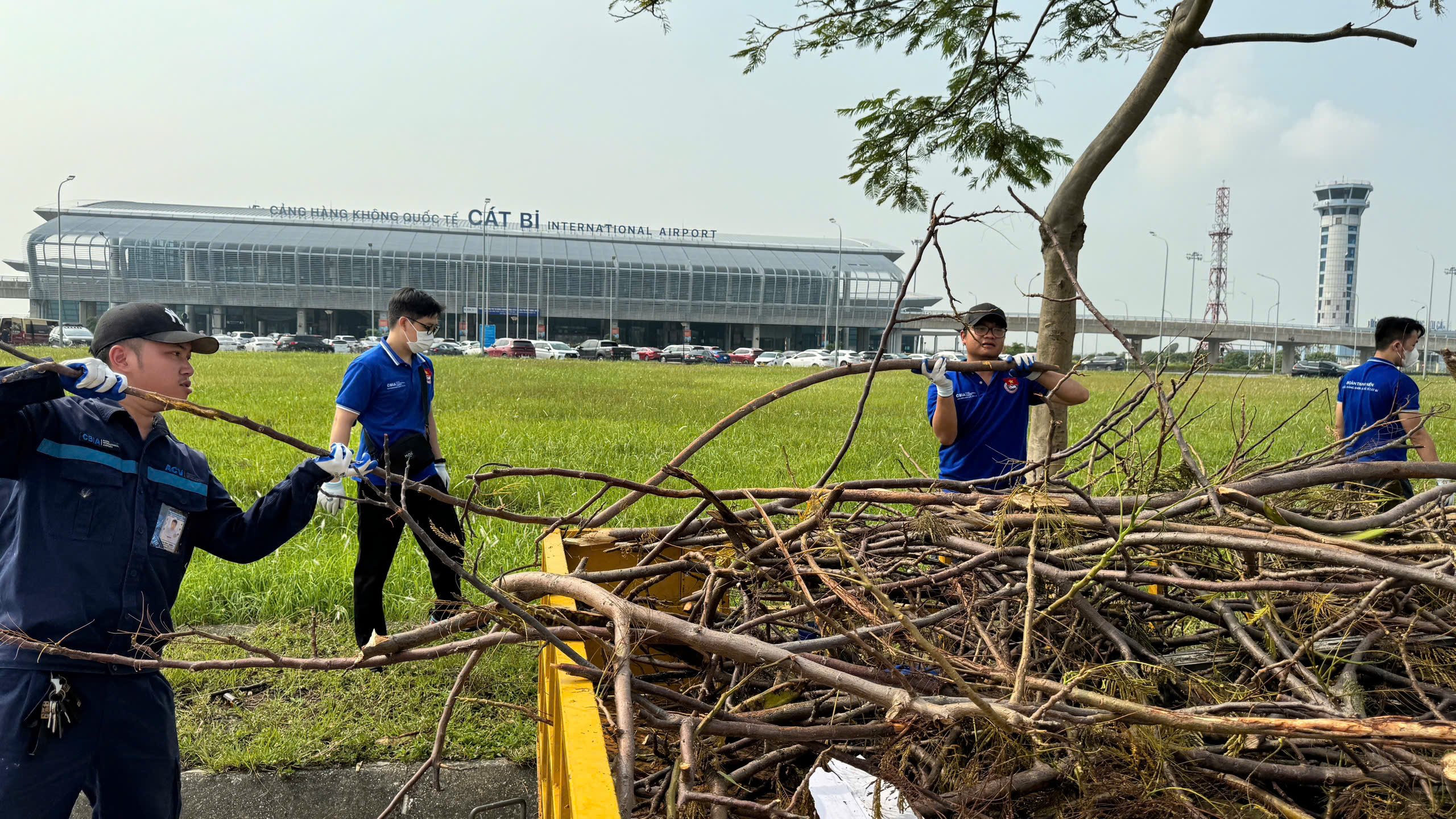 Cơn bão số 3 vừa đi qua, khuôn viên Cảng HKQT Cát Bi có hàng chục cây xanh bị gãy, đổ, các cơ sở hạ tầng bị ảnh hưởng. Tại các điểm thực hiện nhiệm vụ, lực lượng đoàn viên, thanh niên đã tích cực di dời cây cối bị gẫy đổ, thu gom rác còn đọng lại tại các hố ga thoát nước, thu nhặt FOD trên sân đỗ tàu bay, cắt tỉa nhổ cỏ tiếp giáp với tường rào các khu vực, dọn dẹp quét dọn khu vực văn phòng Cảng,....