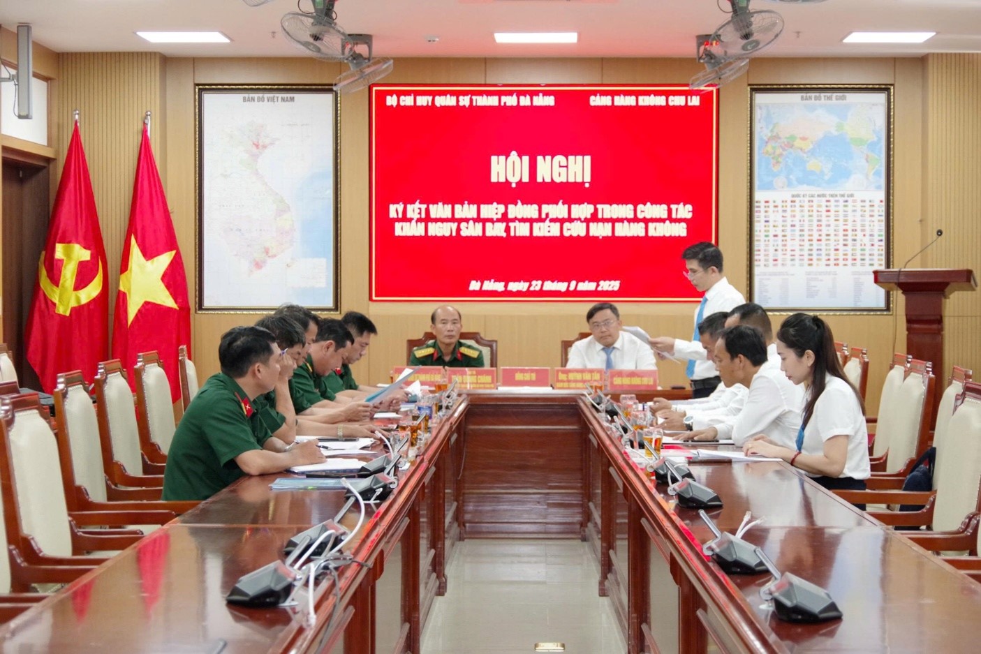 Ngày 23/9/2025, tại thành phố Đà Nẵng đã diễn ra Hội nghị ký kết văn bản hiệp đồng trong công tác Khẩn nguy sân bay (KNSB) và Tìm kiếm cứu nạn hàng không (TKCN) giữa Bộ Chỉ huy Quân sự thành phố Đà Nẵng và Cảng hàng không Chu Lai. Đây là hoạt động có ý nghĩa quan trọng, nhằm cụ thể hóa trách nhiệm, cơ chế phối hợp giữa hai đơn vị trong xử lý các tình huống khẩn nguy, sự cố, tai nạn hàng không, bảo đảm an toàn tuyệt đối cho người, tài sản và hoạt động bay trên địa bàn.