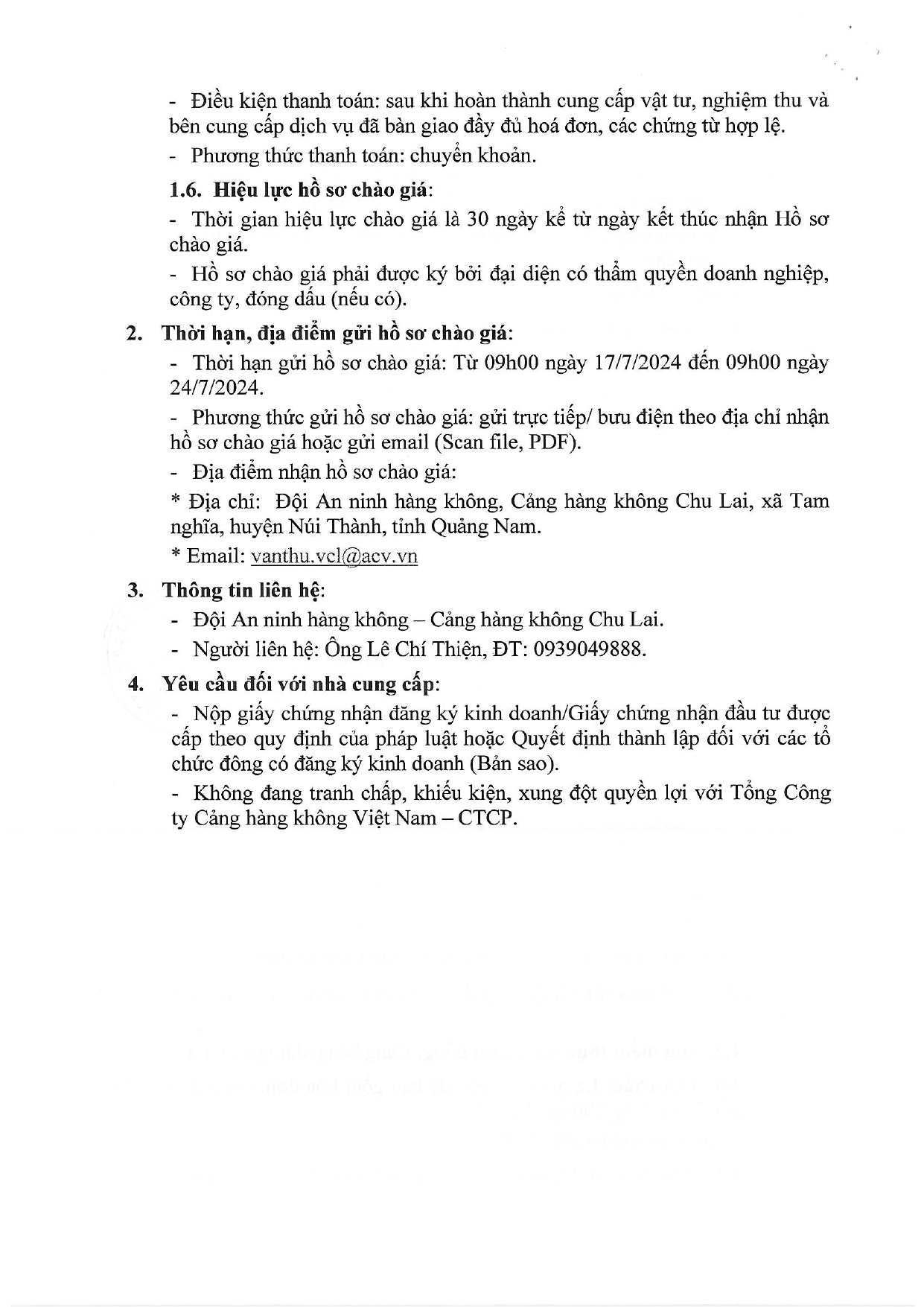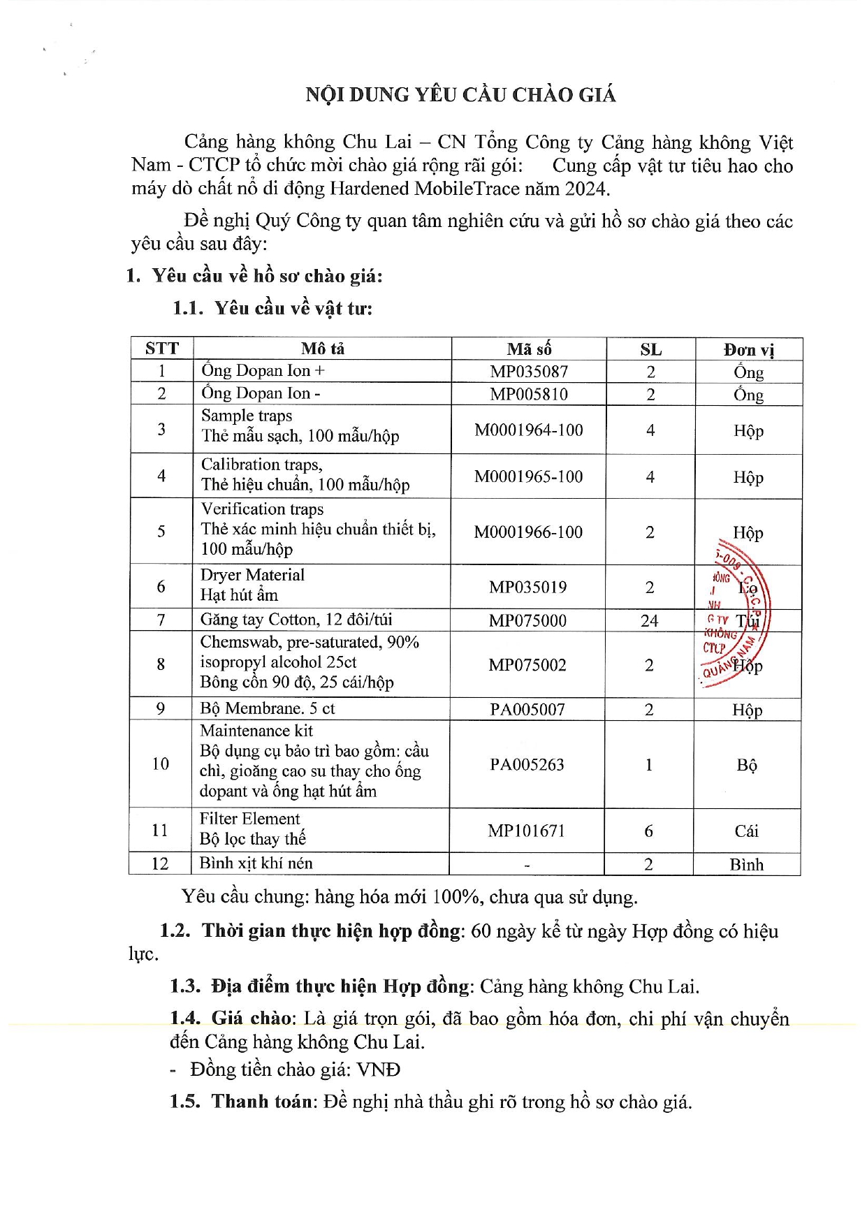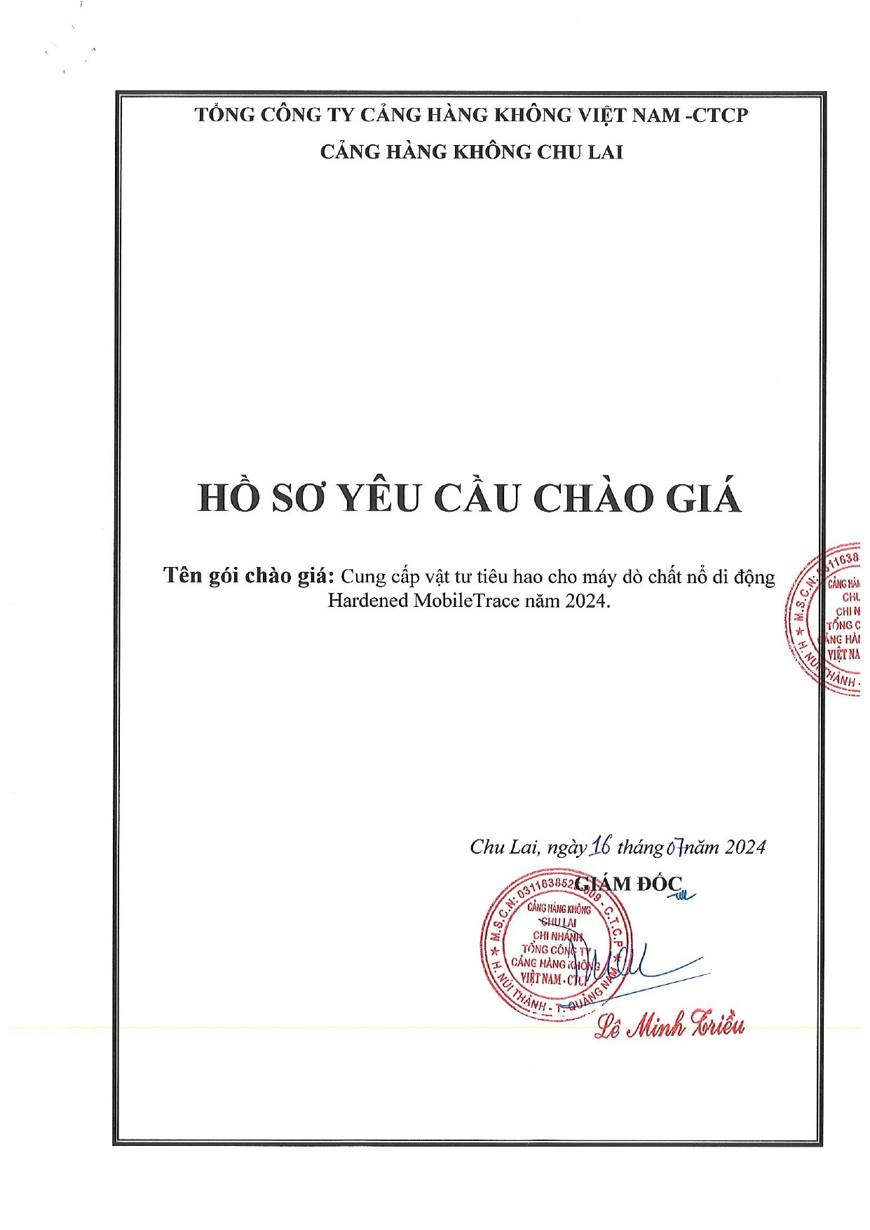 Cảng hàng không Chu Lai thông báo: Mời chào giá Cung cấp vật tư tiêu hao cho máy dò chất nổ di động Hardenned MobileTrace năm 2024