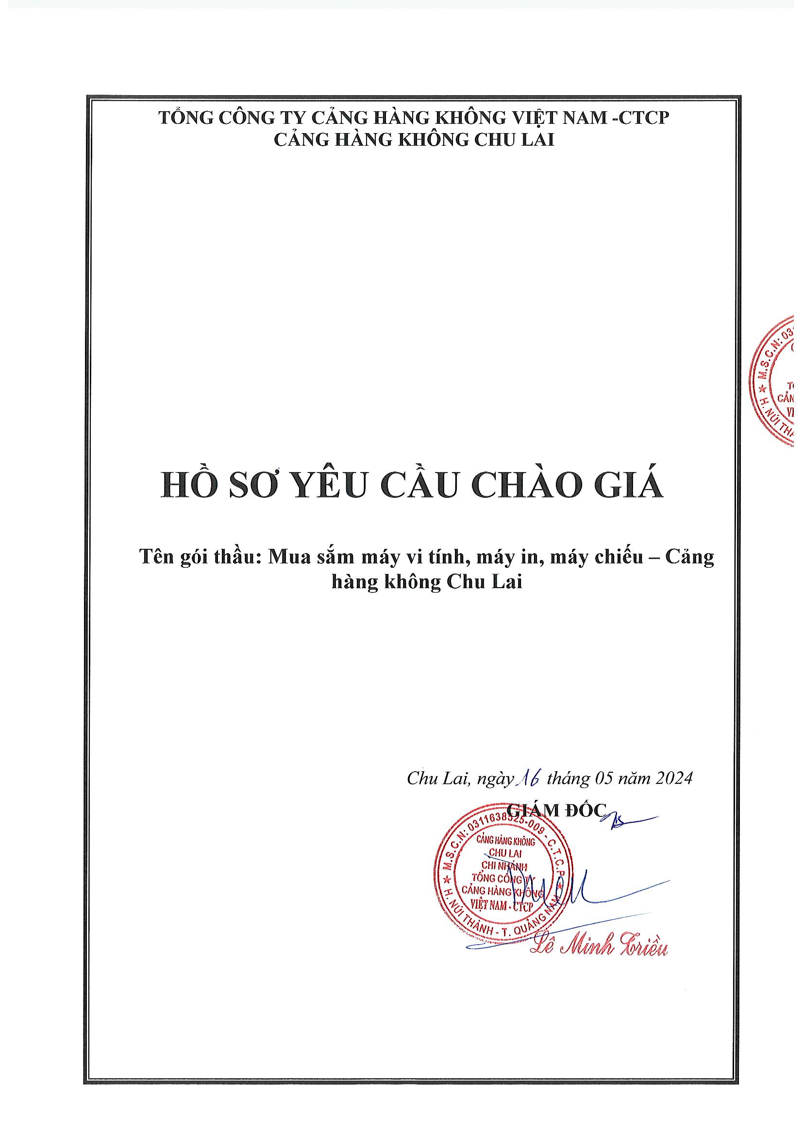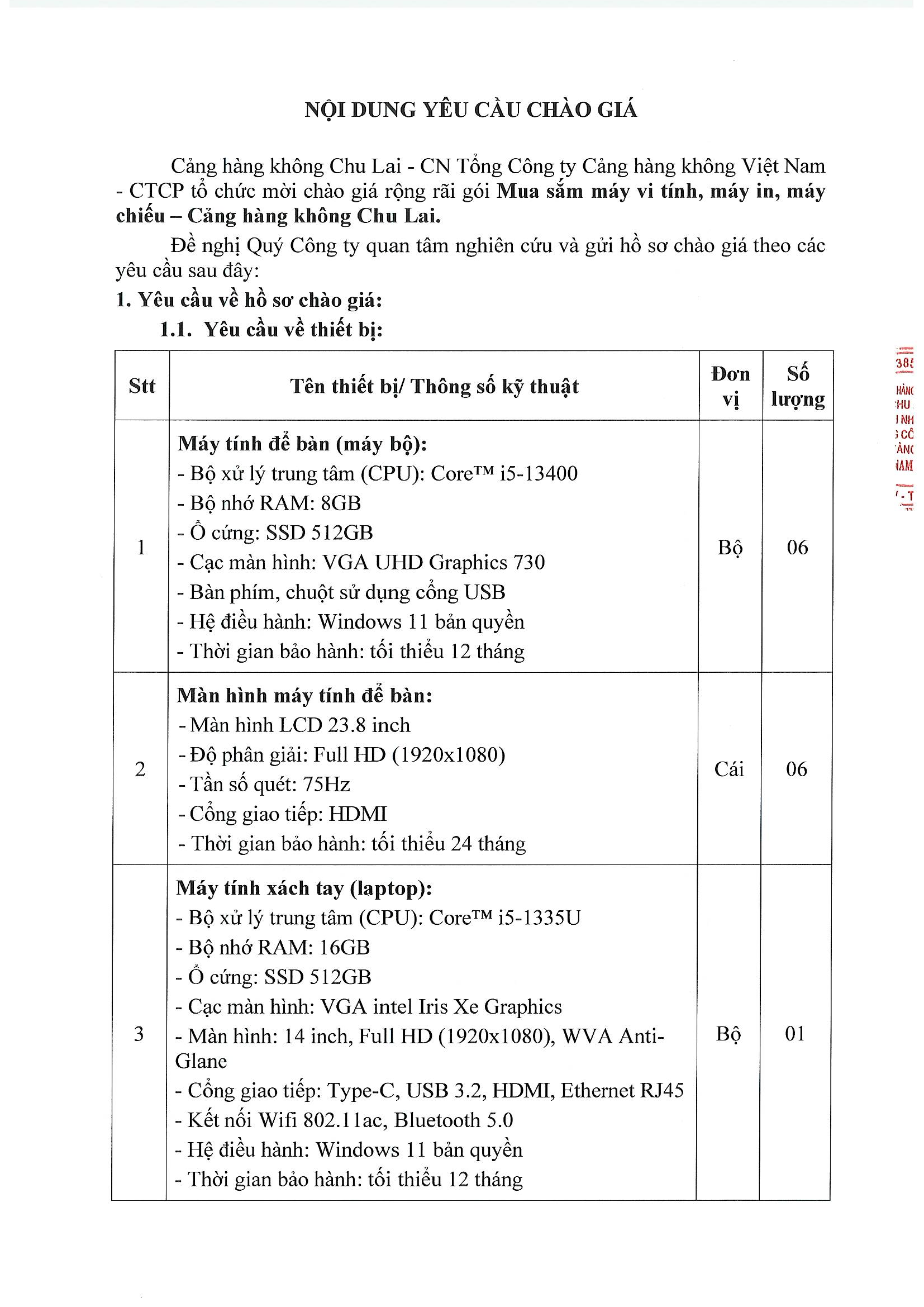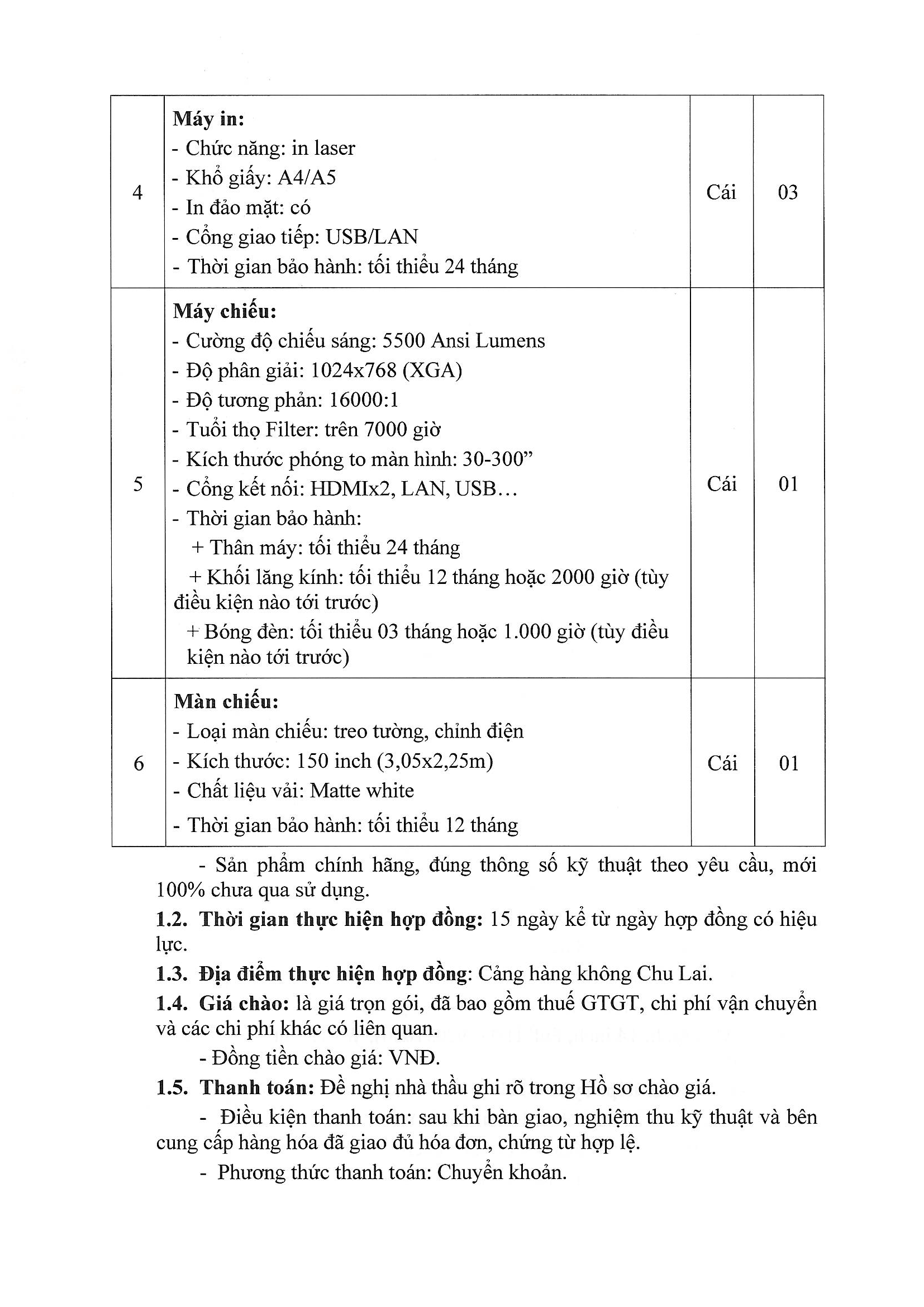 Cảng hàng không Chu Lai thông báo Mời chào giá rộng rãi gói: Mua sắm máy vi tính, máy in, máy chiếu - Cảng hàng không Chu Lai