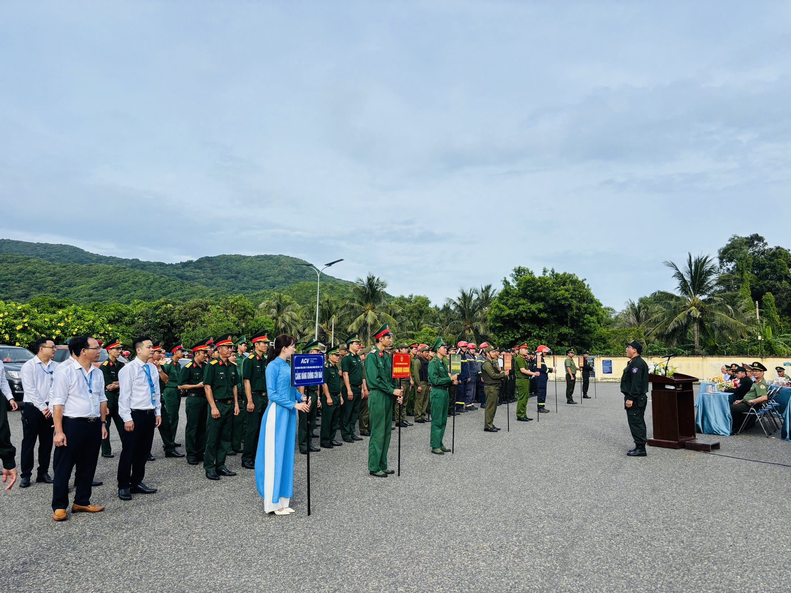 Thượng tá Phan Huy Văn - Phó Giám đốc Công an TP HCM dự và chủ trì buổi lễ. Cùng tham dự có các đồng chí Lãnh đạo đặc khu Côn Đảo; Đại diện lãnh đạo các phòng chức năng thuộc CATP; Ban chỉ huy quân sự phòng thủ khu vực 6; Bộ đội Biên phòng đặc khu Côn Đảo; Đại diện Cảng vụ miền Nam tại Côn Đảo, Cảng Hàng không Côn Đảo, cùng hơn 200 cán bộ, công nhân viên thuộc lực lượng Công an, quân đội, lực lượng an ninh cơ sở và nhân viên Cảng hàng không Côn Đảo…