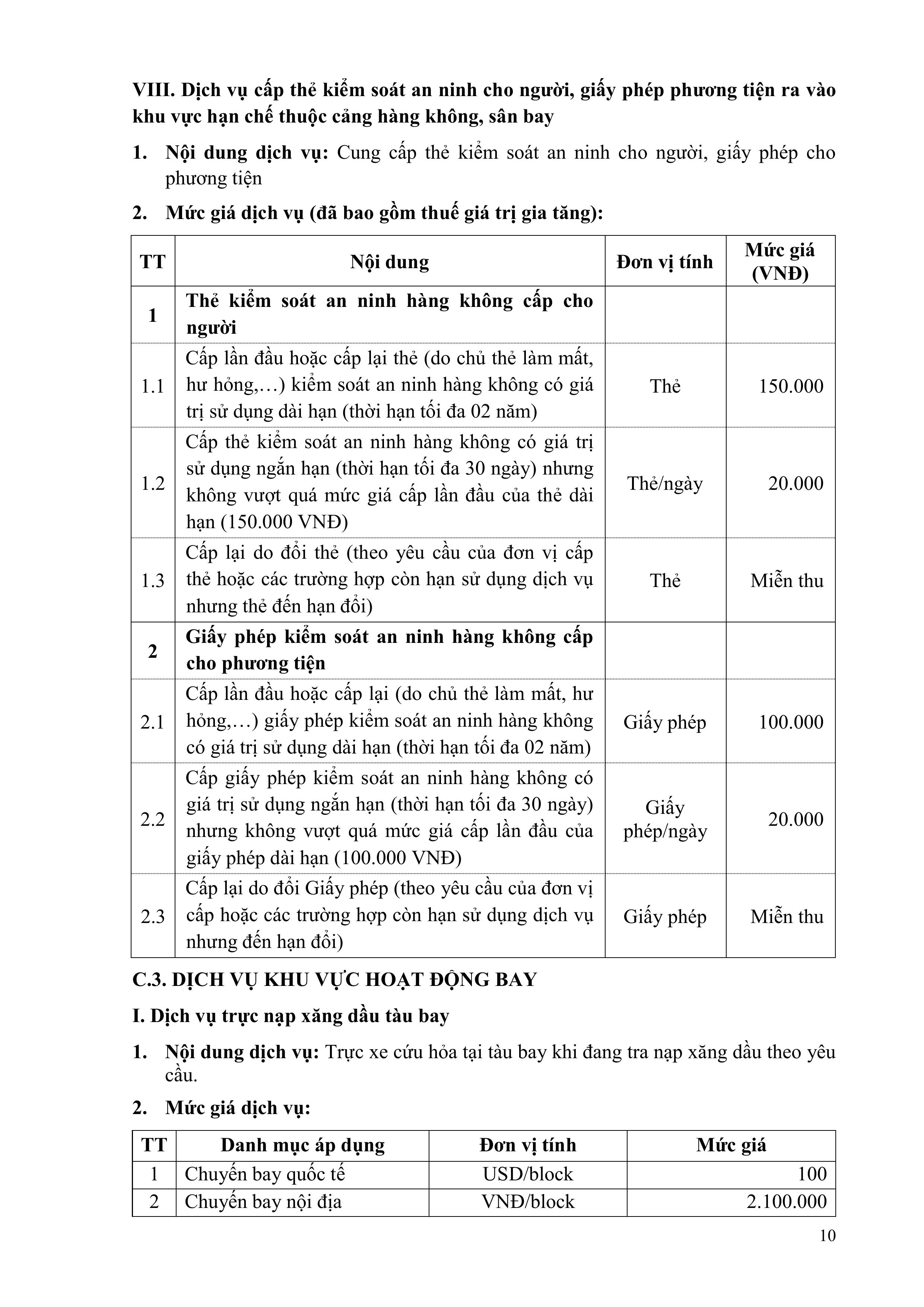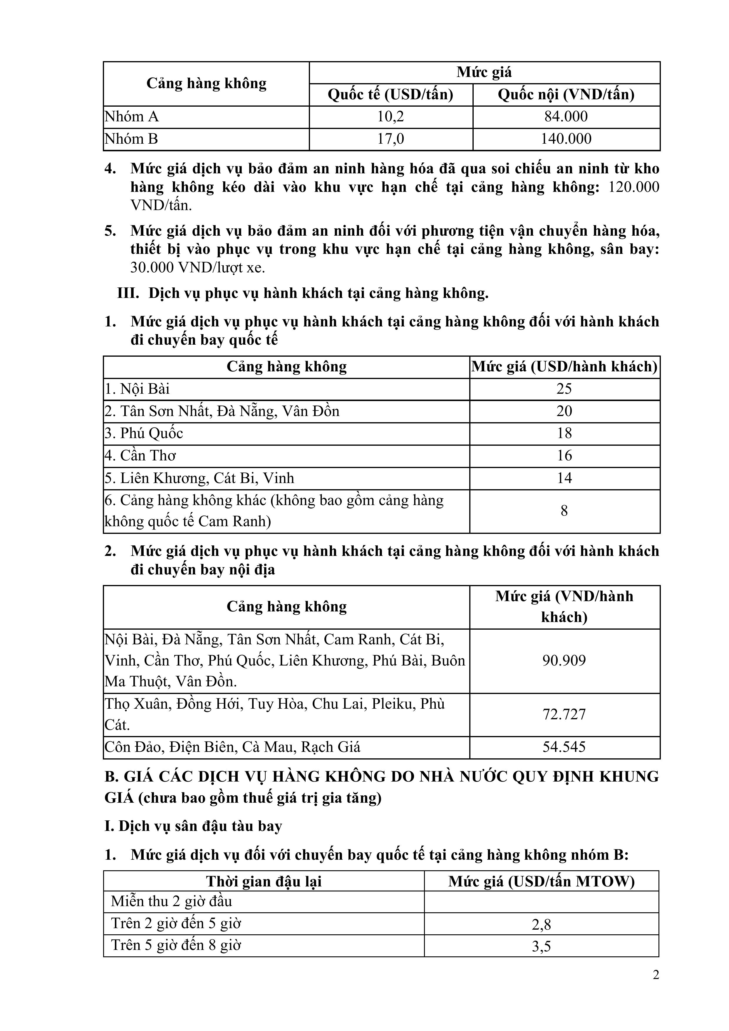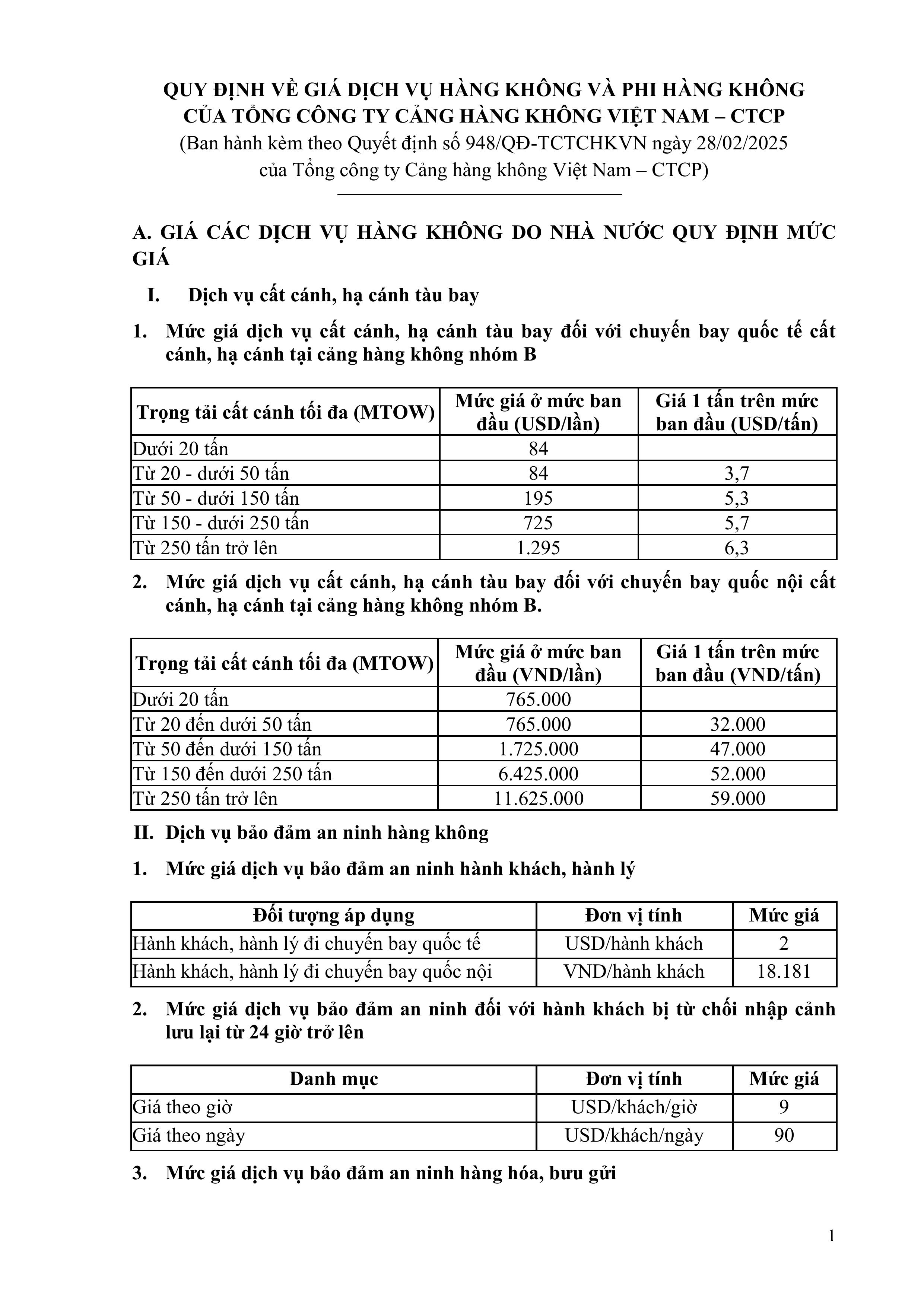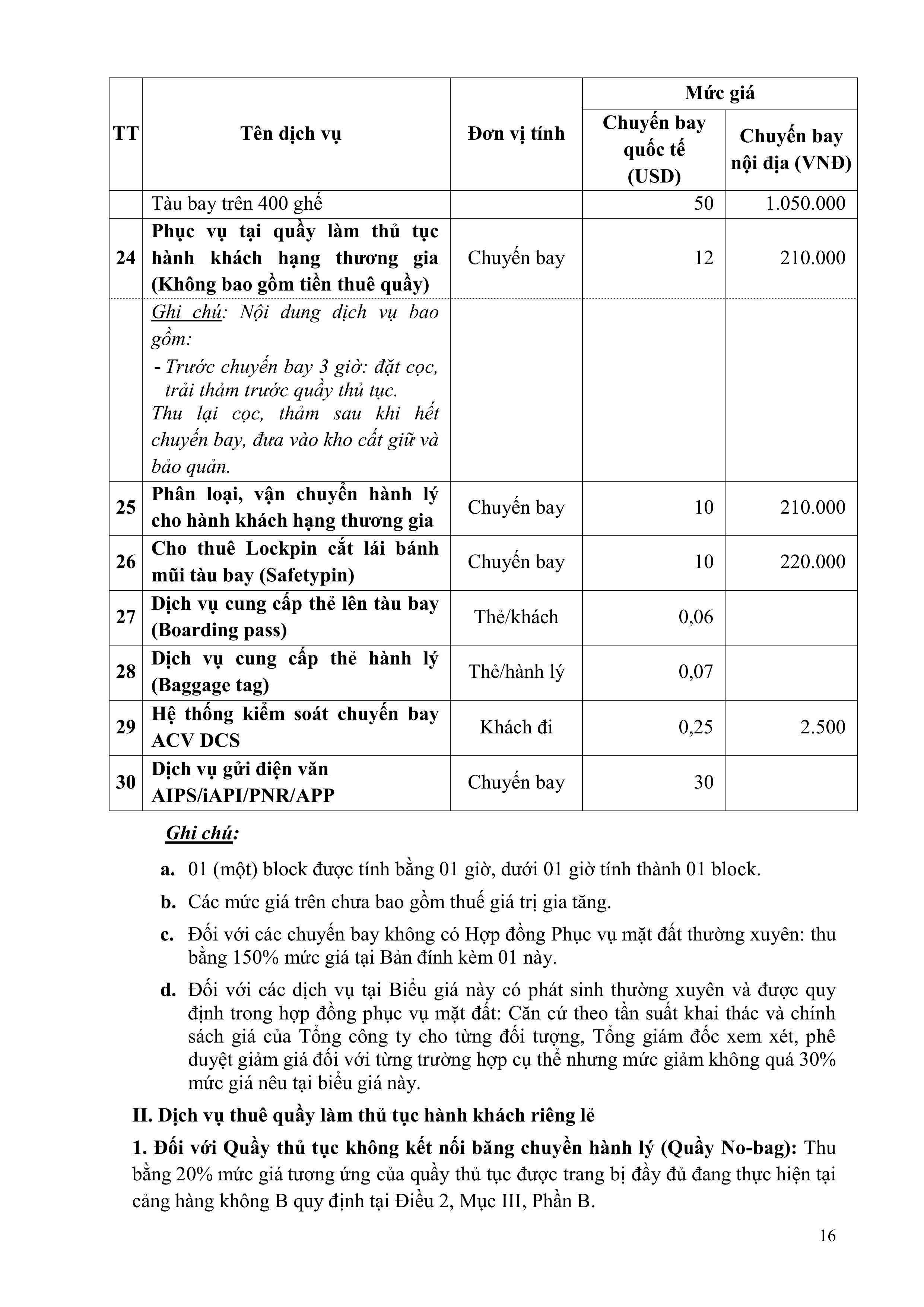 QUY ĐỊNH VỀ GIÁ DỊCH VỤ HÀNG KHÔNG VÀ PHI HÀNG KHÔNG CỦA TỔNG CÔNG TY CẢNG HÀNG KHÔNG VIỆT NAM – CTCP