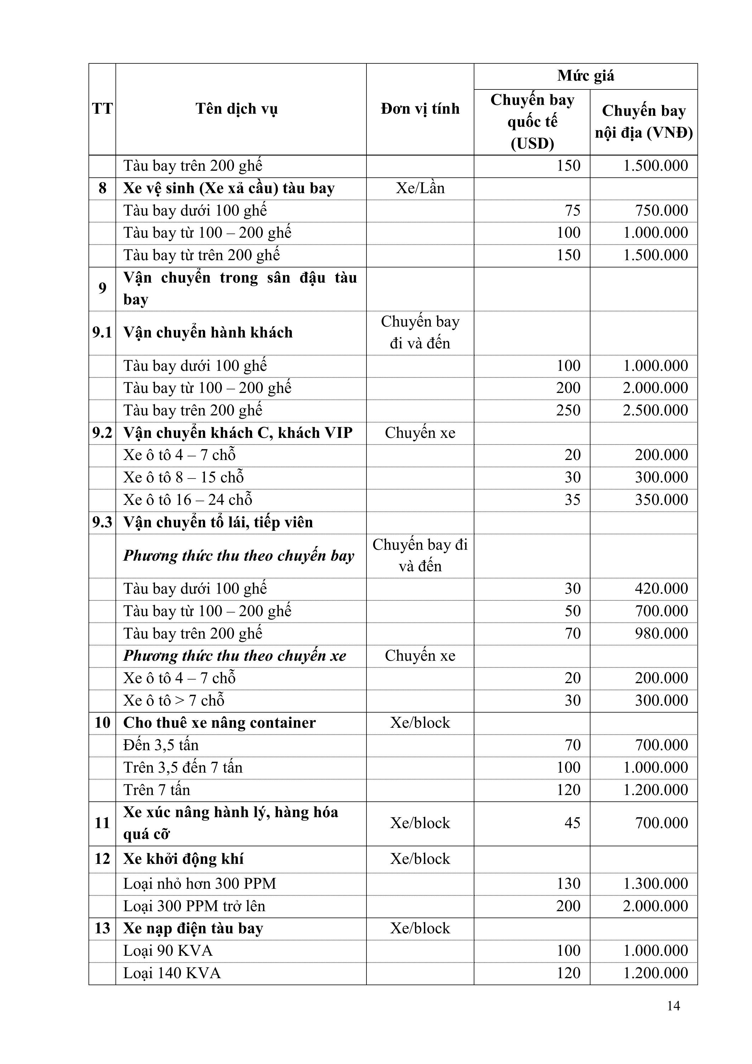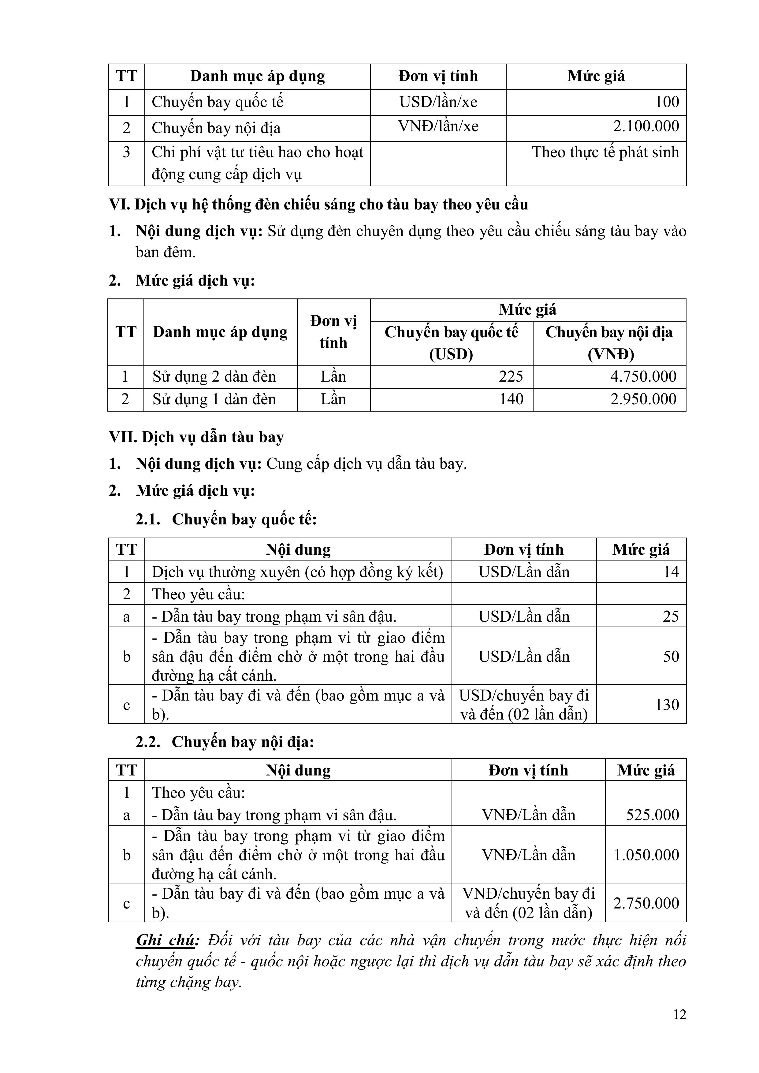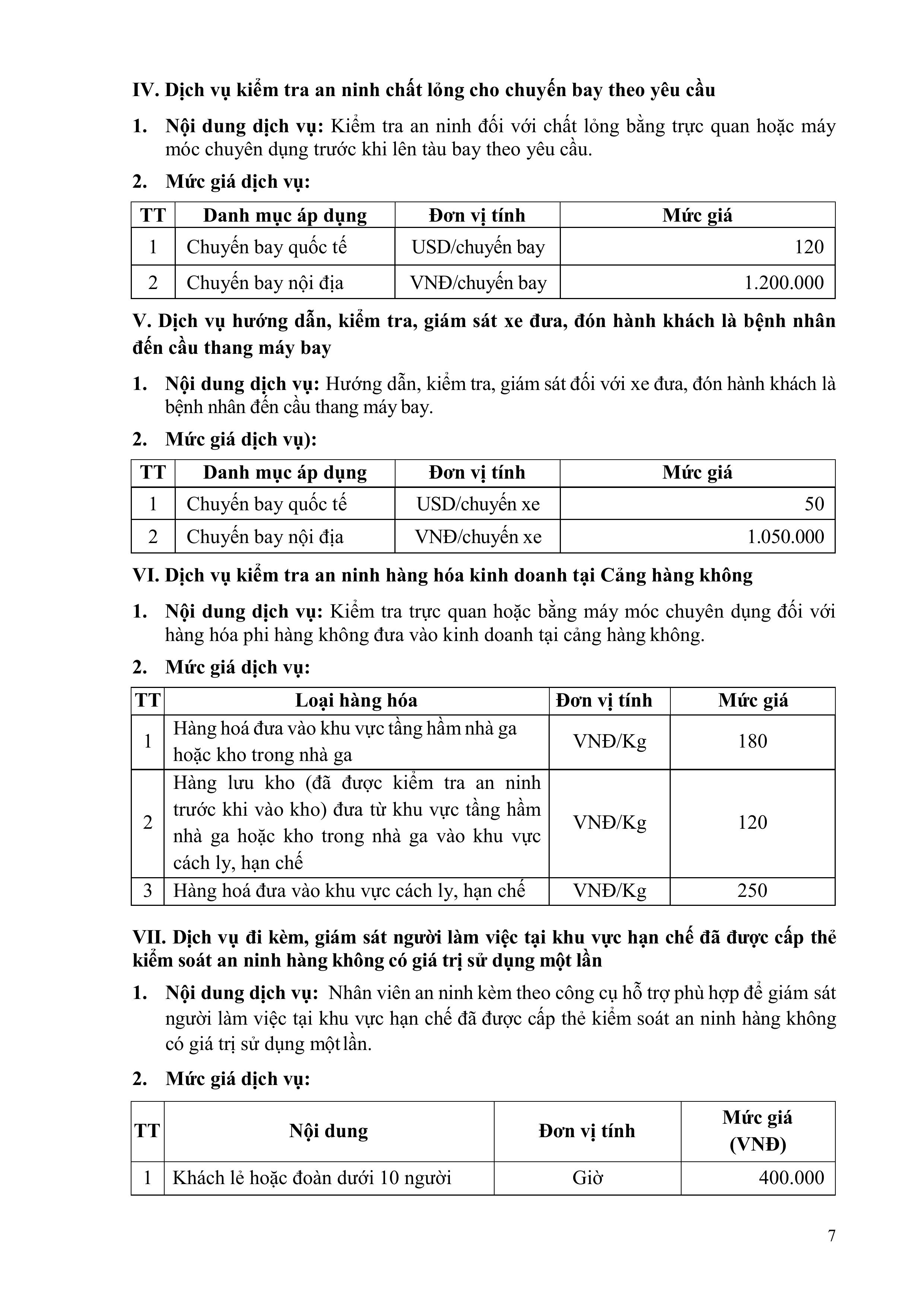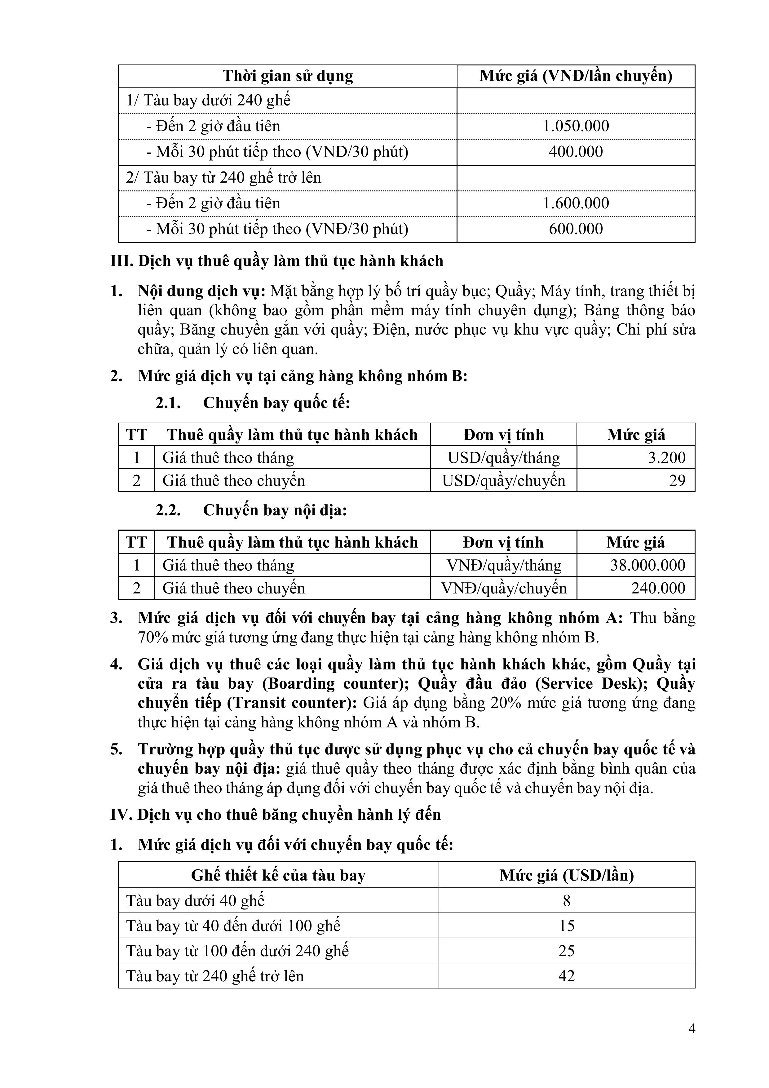 QUY ĐỊNH VỀ GIÁ DỊCH VỤ HÀNG KHÔNG VÀ PHI HÀNG KHÔNG CỦA TỔNG CÔNG TY CẢNG HÀNG KHÔNG VIỆT NAM – CTCP