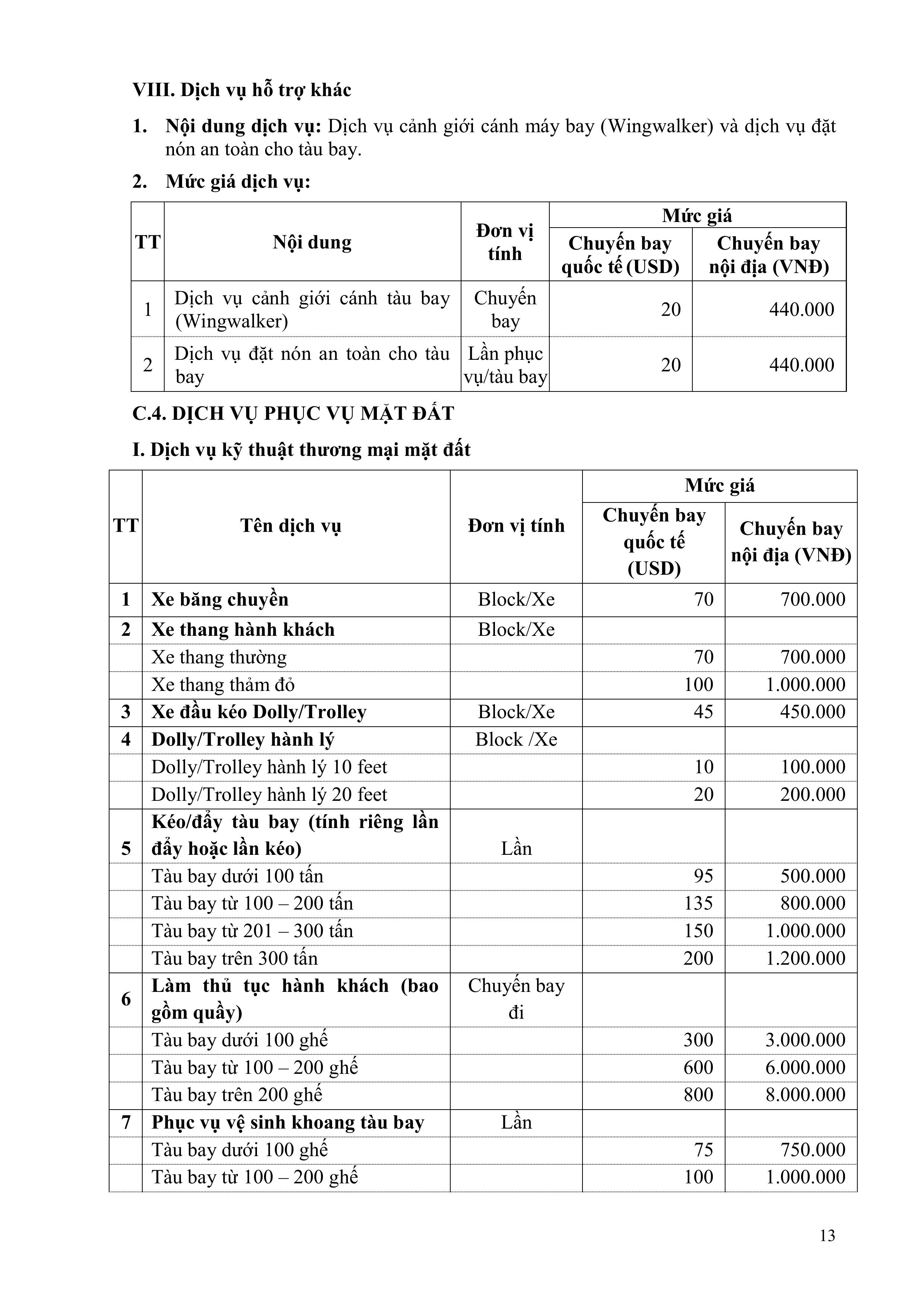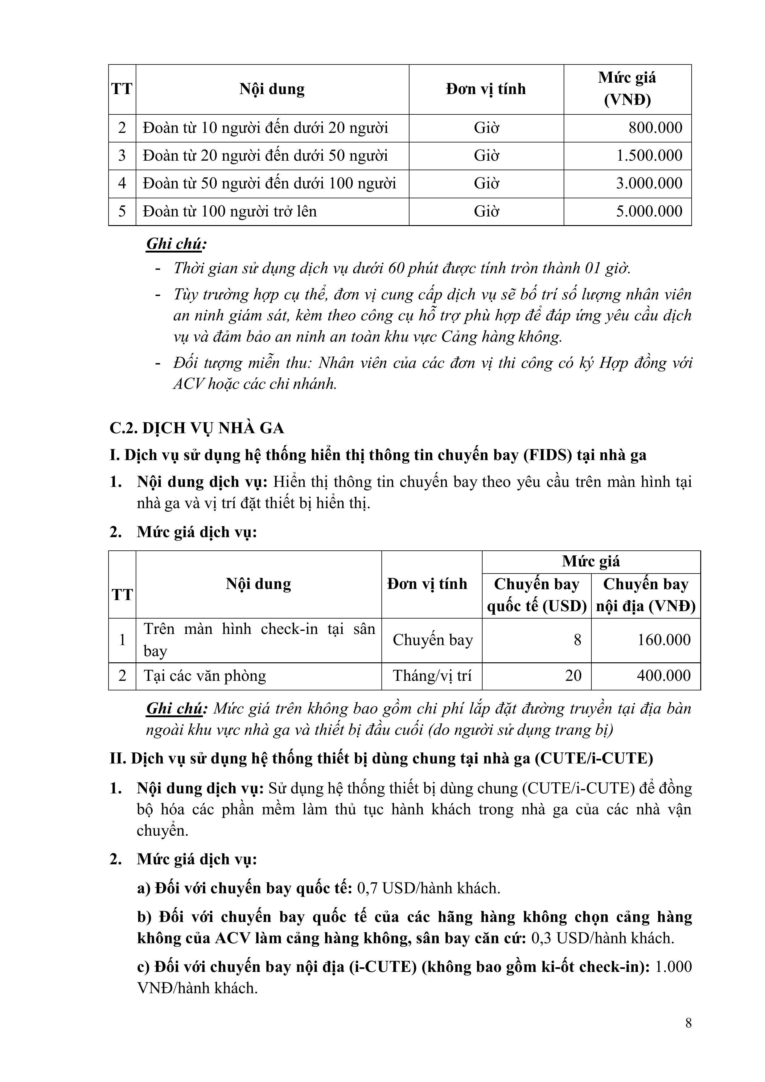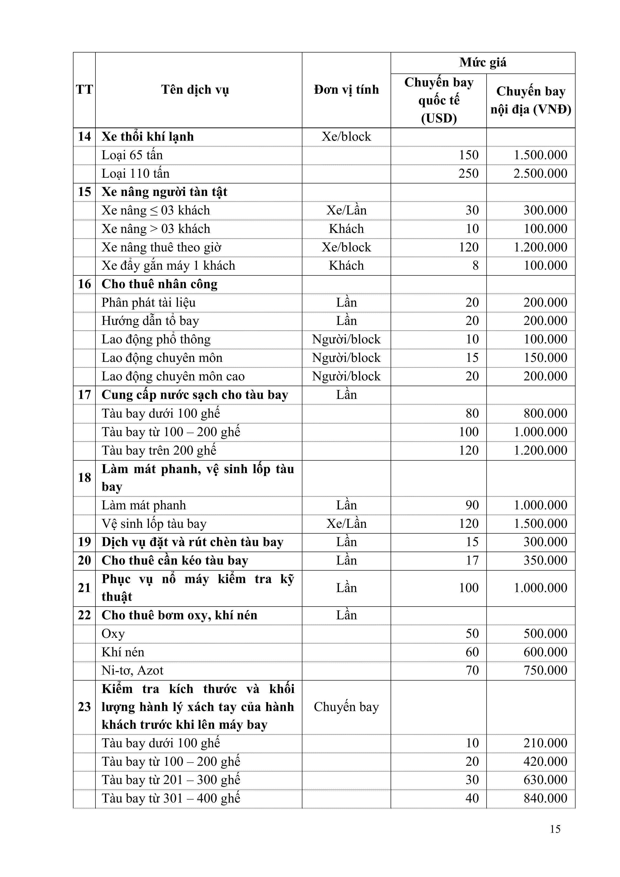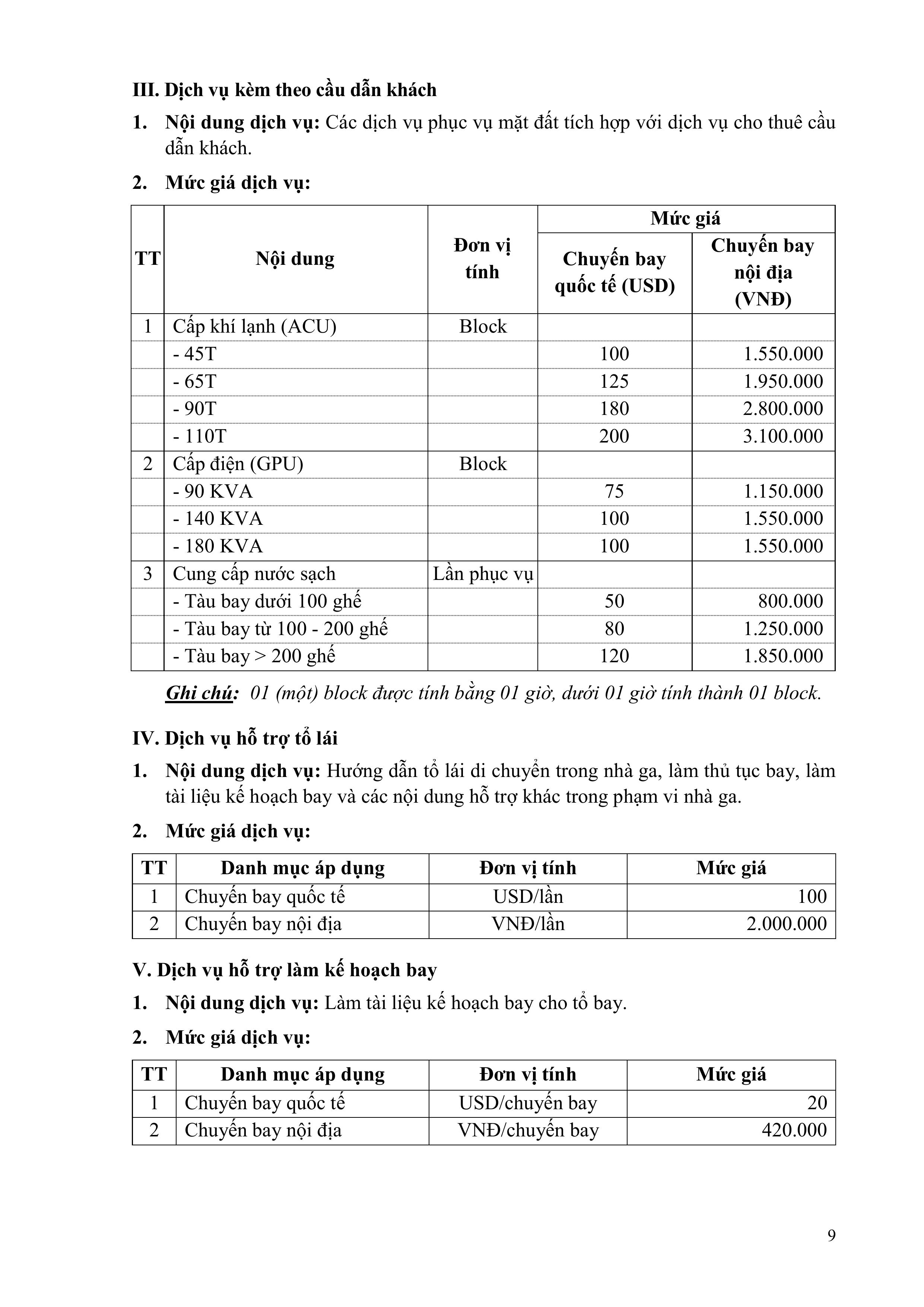 QUY ĐỊNH VỀ GIÁ DỊCH VỤ HÀNG KHÔNG VÀ PHI HÀNG KHÔNG CỦA TỔNG CÔNG TY CẢNG HÀNG KHÔNG VIỆT NAM – CTCP