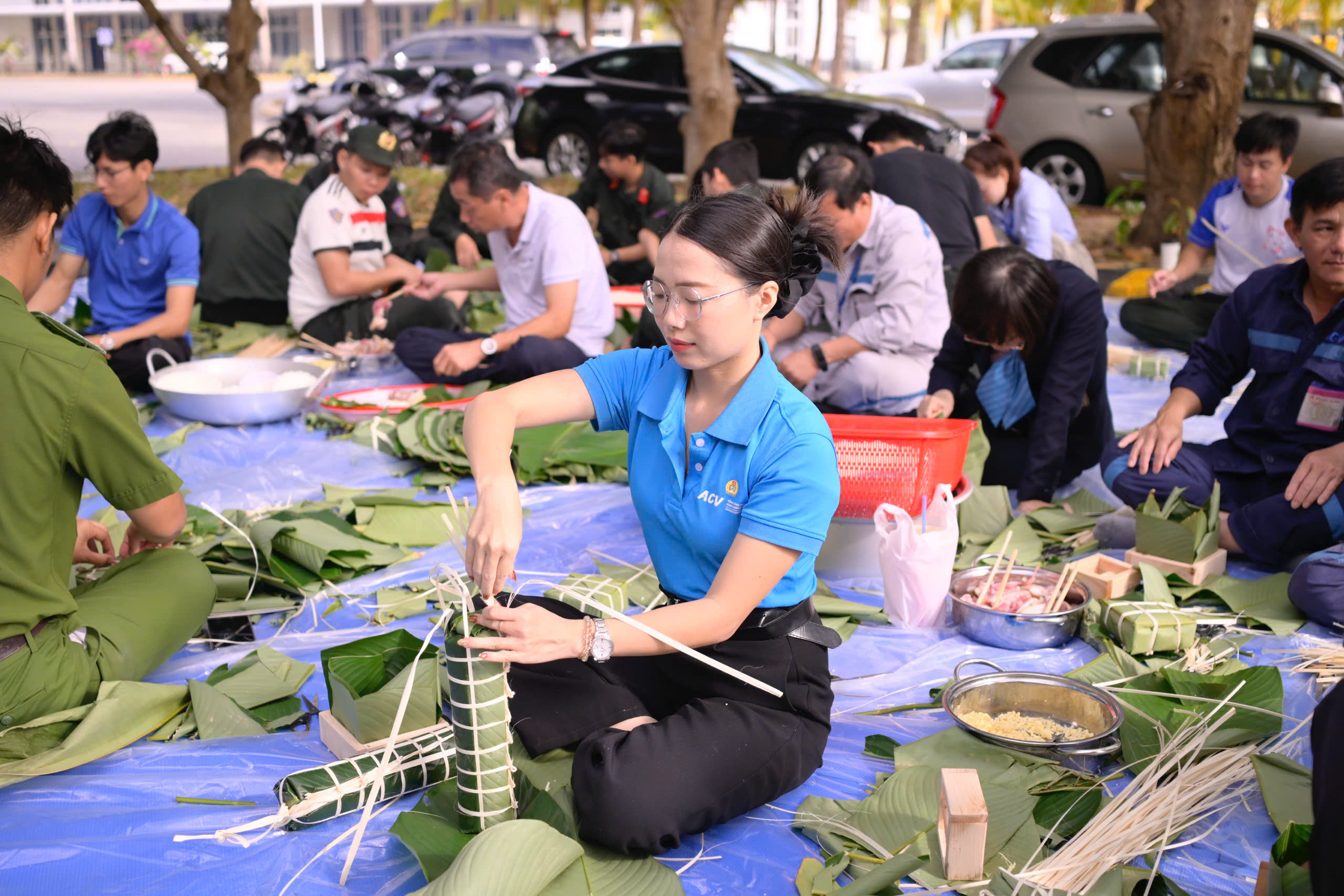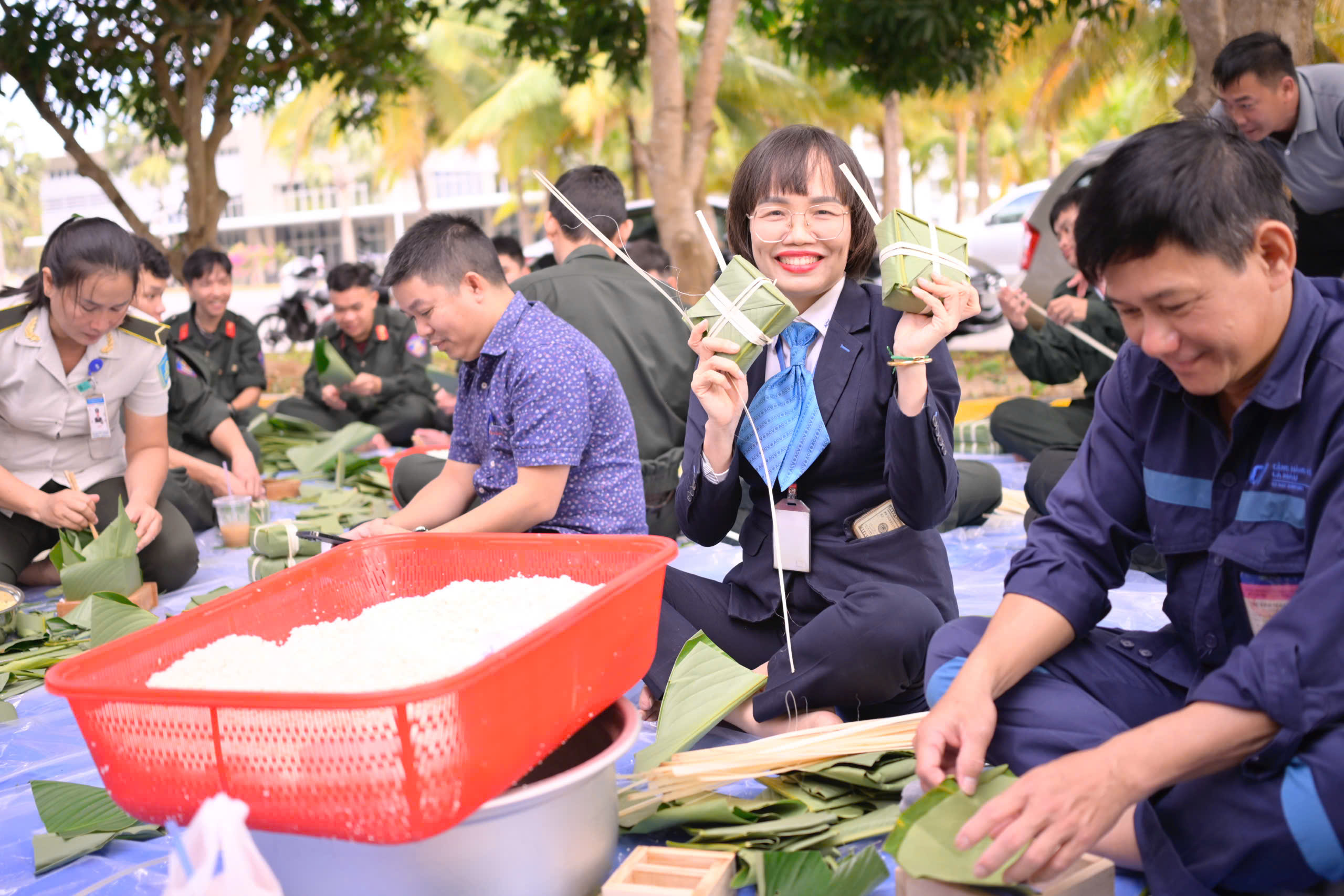 Cán bộ, nhân viên Cảng cùng các đơn vị đã cùng nhau quây quần bên lá dong, đậu xanh thịt lợn, gạo nếp trắng thơm, tự tay gói những chiếc bánh chưng xanh truyền thống. Dưới bàn tay khéo léo của những "nghệ nhân không chuyên", hàng trăm chiếc bánh chưng vuông vức đã được hoàn thành. Hoạt động không chỉ tái hiện nét đẹp văn hóa truyền thống của dân tộc mà còn là dịp để cán bộ, nhân viên từ các đơn vị có cơ hội giao lưu, chia sẻ, thắt chặt tinh thần đoàn kết.