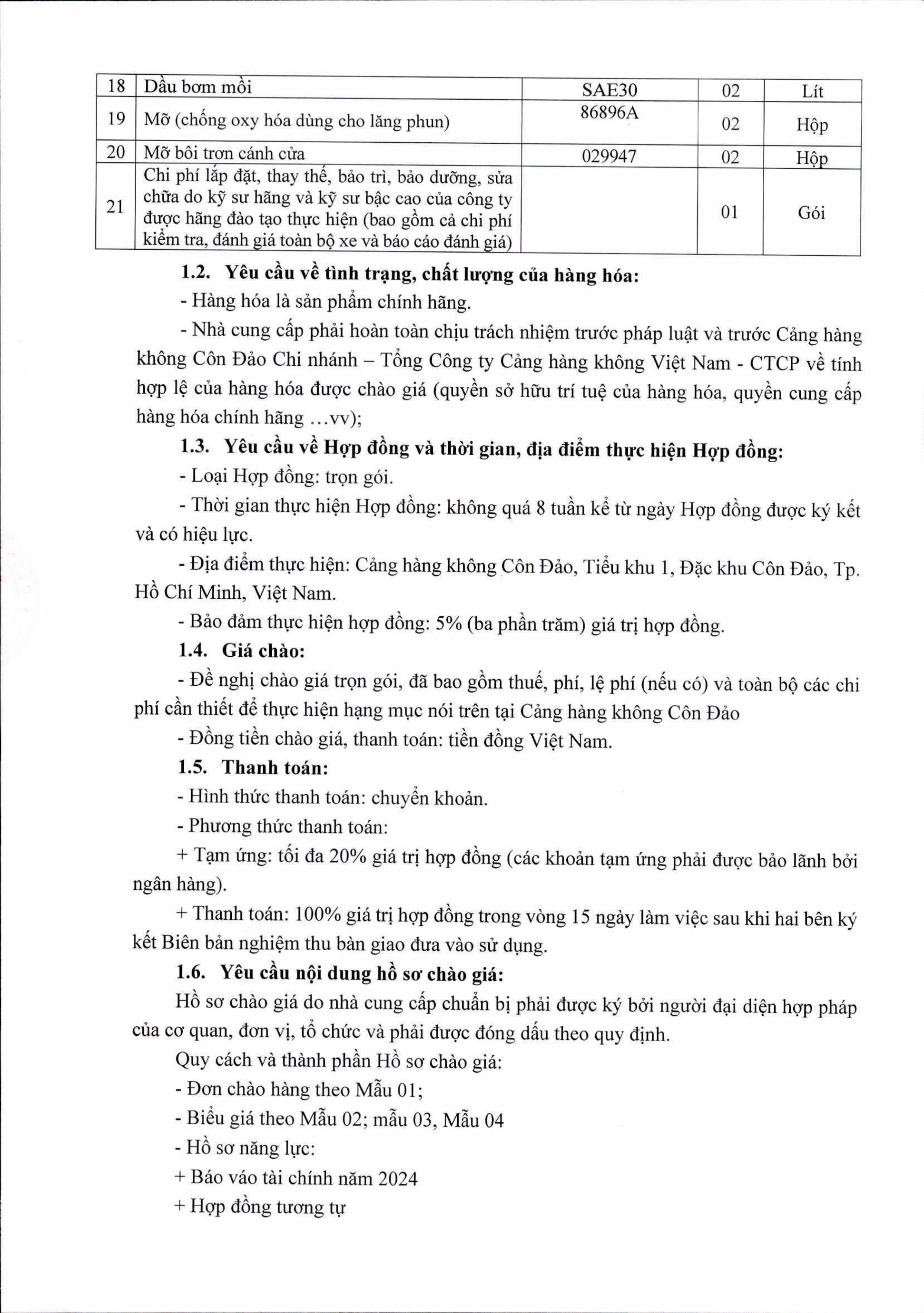 THÔNG BÁO MỜI CHÀO GIÁ (Lần 2) Về việc: "Cung cấp dịch vụ thu gom, vận chuyển và xử lý chất thải nguy hại tại Cảng hàng không Côn Đảo"