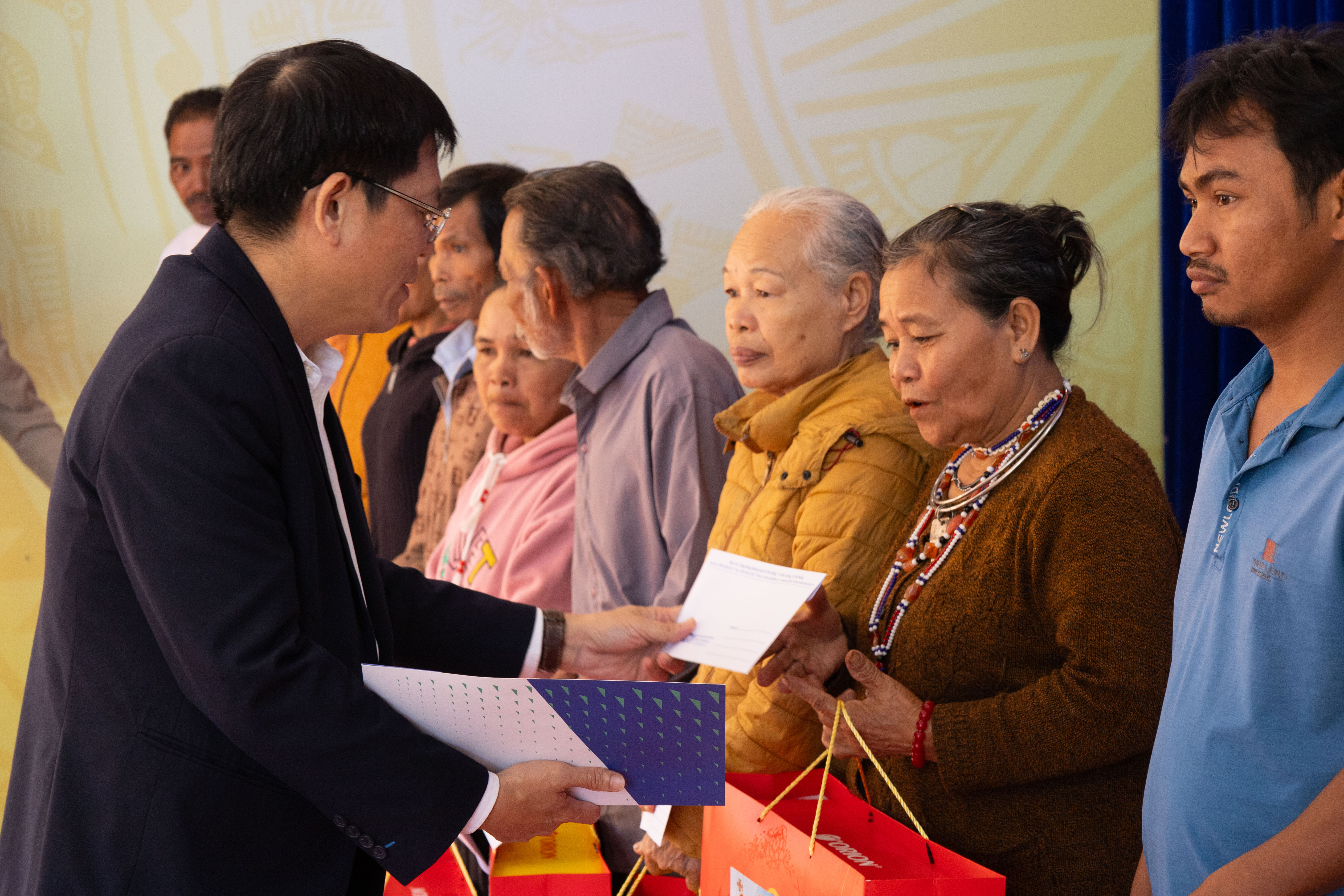 Mỗi suất quà gồm 01 triệu đồng tiền mặt và 01 túi quà Tết, góp phần sẻ chia khó khăn, mang thêm niềm vui tới các gia đình chính sách trong dịp Tết đến, Xuân về.