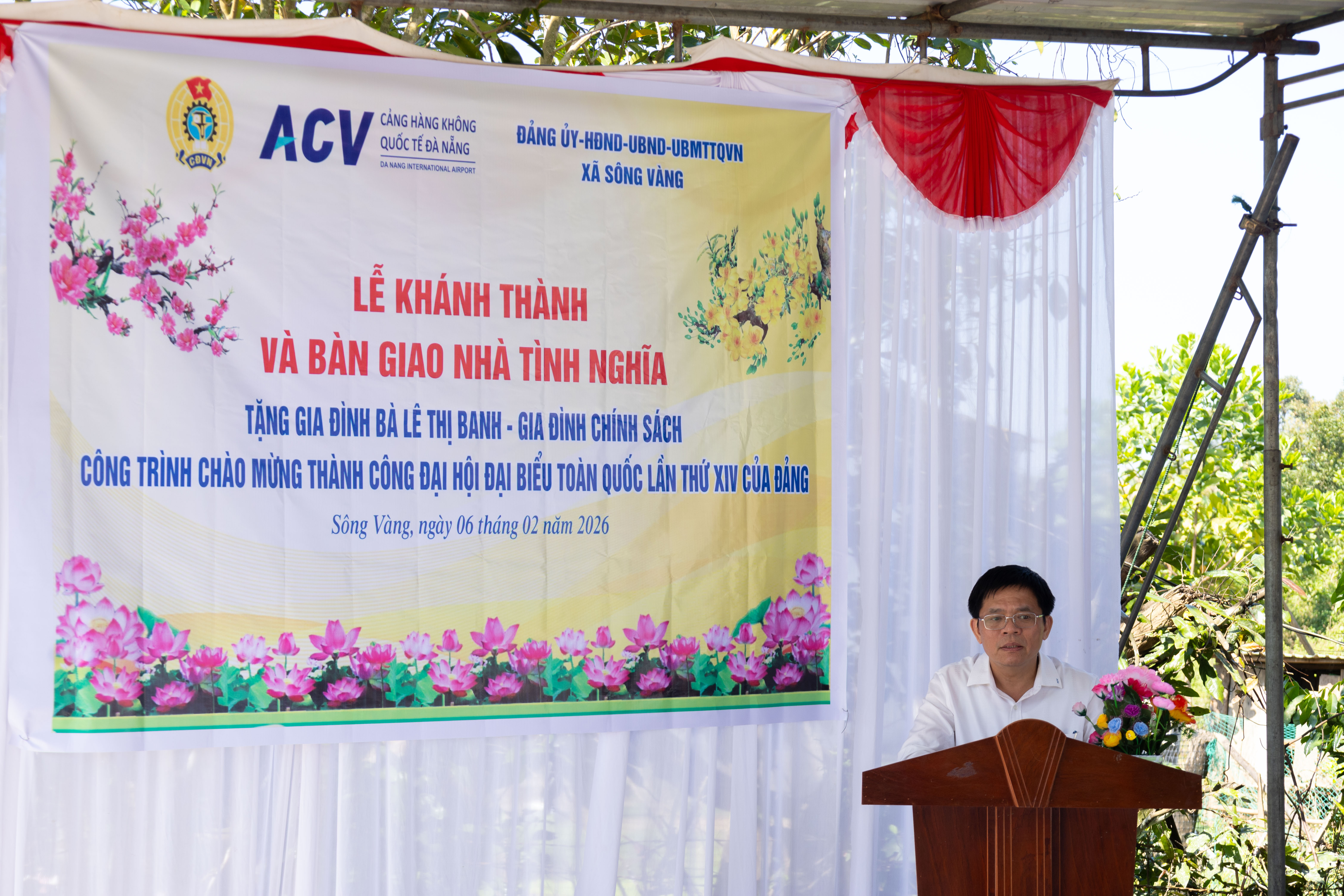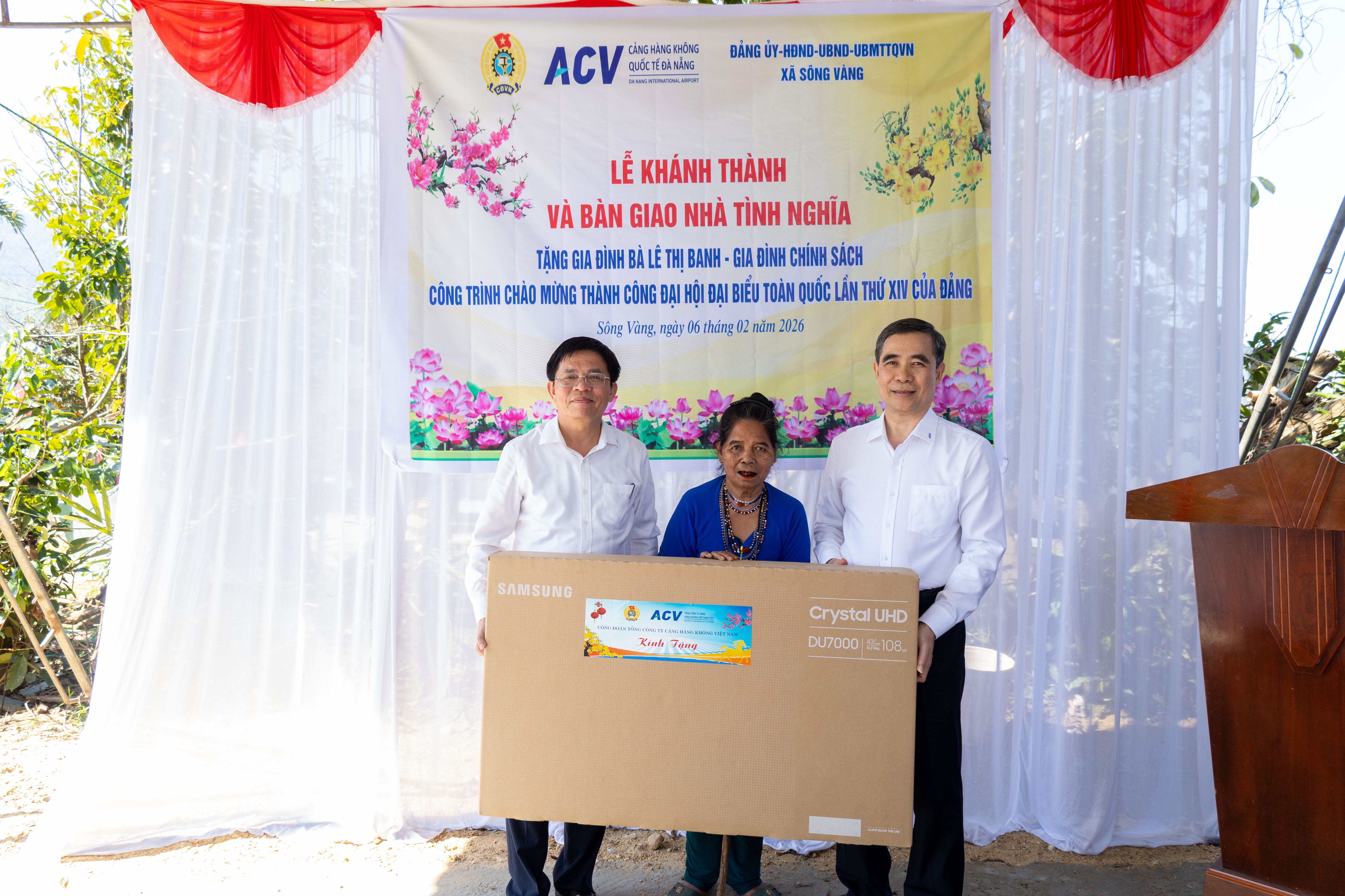 Sáng ngày 06/02/2026, tại xã Sông Vàng, thành phố Đà Nẵng, Cảng Hàng không Quốc tế Đà Nẵng đã phối hợp cùng chính quyền địa phương tổ chức Lễ khánh thành và bàn giao Nhà tình nghĩa cho gia đình bà Lê Thị Banh – gia đình chính sách đang thực hiện việc thờ cúng Mẹ Việt Nam Anh hùng và các liệt sĩ tại xã Sông Vàng, thành phố Đà Nẵng.