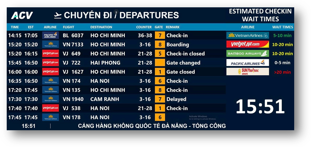 AI quản lý lưu lượng hành khách, dự doán thời gian chờ làm thủ tục hiển thị trên màn hình FIDS
