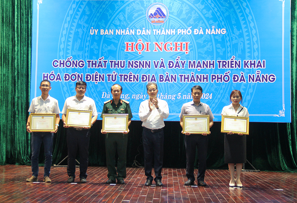 Tại hội nghị, UBND Thành phố đã trao tặng bằng khen cho 5 doanh nghiệp có đóng góp ngân sách Nhà nước lớn trong năm 2023; 02 doanh nghiệp có thành tích tốt nộp ngân sách và triển khai hóa đơn điện tử 3 tháng đầu năm 2024; 7 tập thể và 4 cá nhân có thành tích trong công tác chống thất thu ngân sách Nhà nước và triển khai hóa đơn điện tử năm 2023. Trong đó, Cảng hàng không Quốc tế Đà Nẵng vinh dự là một trong năm doanh nghiệp nộp thuế lớn vào ngân sách nhà nước năm 2023.