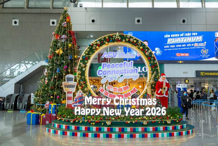 Hòa trong không khí lễ hội cuối năm, Cảng hàng không quốc tế Đà Nẵng tổ chức chuỗi hoạt động mừng Giáng sinh và chào đón năm mới 2026 vào các ngày 24–25/12 và 1/1/2026, mang đến cho hành khách những khoảnh khắc ấm áp ngay tại không gian nhà ga.