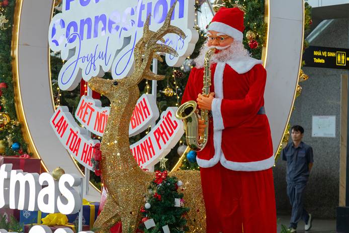Những gam màu Noel rực rỡ cùng các điểm trang trí được sắp đặt hài hòa đã thắp lên không khí tươi vui, thân thiện, trong khi các chương trình âm nhạc live vang lên theo từng khung giờ góp phần làm dịu nhịp chờ đợi của hành khách.
