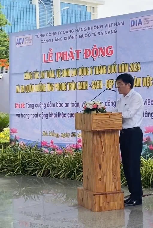 Phát biểu tại lễ phát động, ông Tô Ngọc Hải - Phó giám đốc Cảng hàng không quốc tế Đà Nẵng, Chủ tịch Hội đồng ATVSLĐ đề nghị các đơn vị trực thuộc kêu gọi CBNV Cảng tích cực hưởng ứng, thực hiện có hiệu quả mục tiêu tháng hành động vì ATVSLĐ năm 2024 và nhấn mạnh một số nhiệm vụ trọng tâm: Tăng cường kiểm tra bảo đảm ATVSLĐ tại những nơi làm việc có nguy cơ mất an toàn lao động; tiếp tục triển khai hiệu quả các hoạt động bảo đảm an toàn hàng không; đẩy mạnh công tác tuyên truyền, giáo dục nâng cao nhận thức của người lao động trong công tác bảo đảm ATVSLĐ.