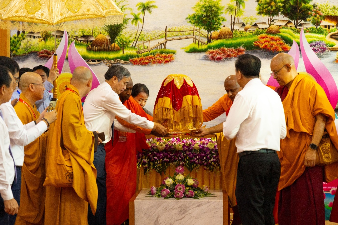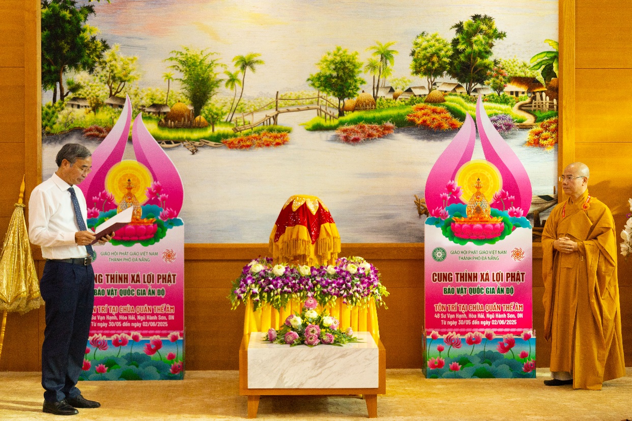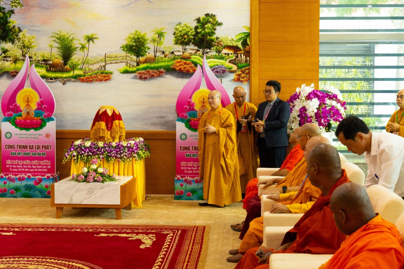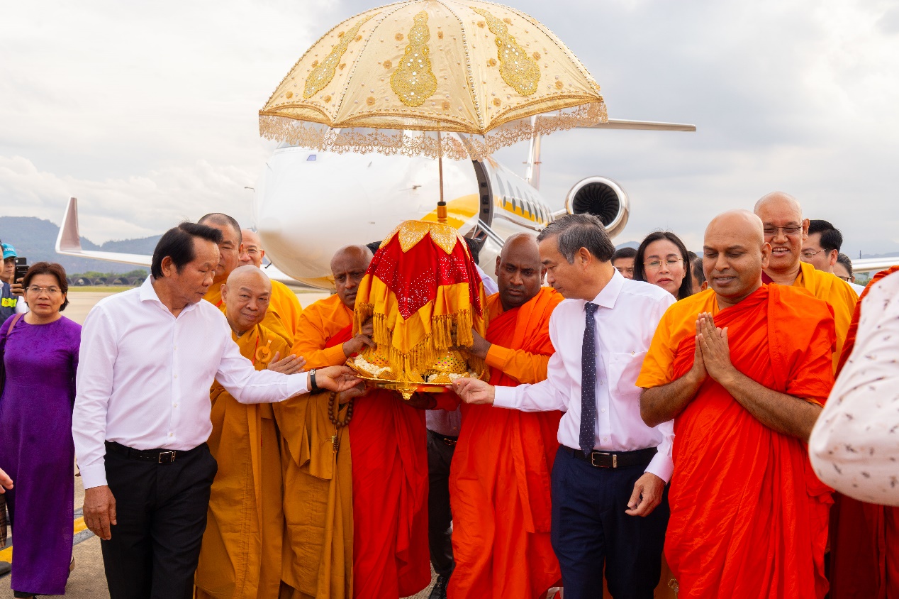 Theo kế hoạch, vào lúc 16h20 chiều ngày 30/5/2025, chuyến bay VNA 579 với chuyên cơ mang số hiệu GLF6 chở Xá Lợi Đức Phật đã đáp xuống thành phố Đà Nẵng. Tại khu vực Nhà khách VIP, Cảng hàng không quốc tế Đà Nẵng đã tổ chức hoạt động trang nghiêm để chào đón Xá Lợi Phật. Đại diện Giáo hội Phật giáo Việt Nam, lãnh đạo UBND TP Đà Nẵng cùng nhiều đơn vị, chức sắc, Phật tử đã trực tiếp tham gia nghi lễ cung rước.
