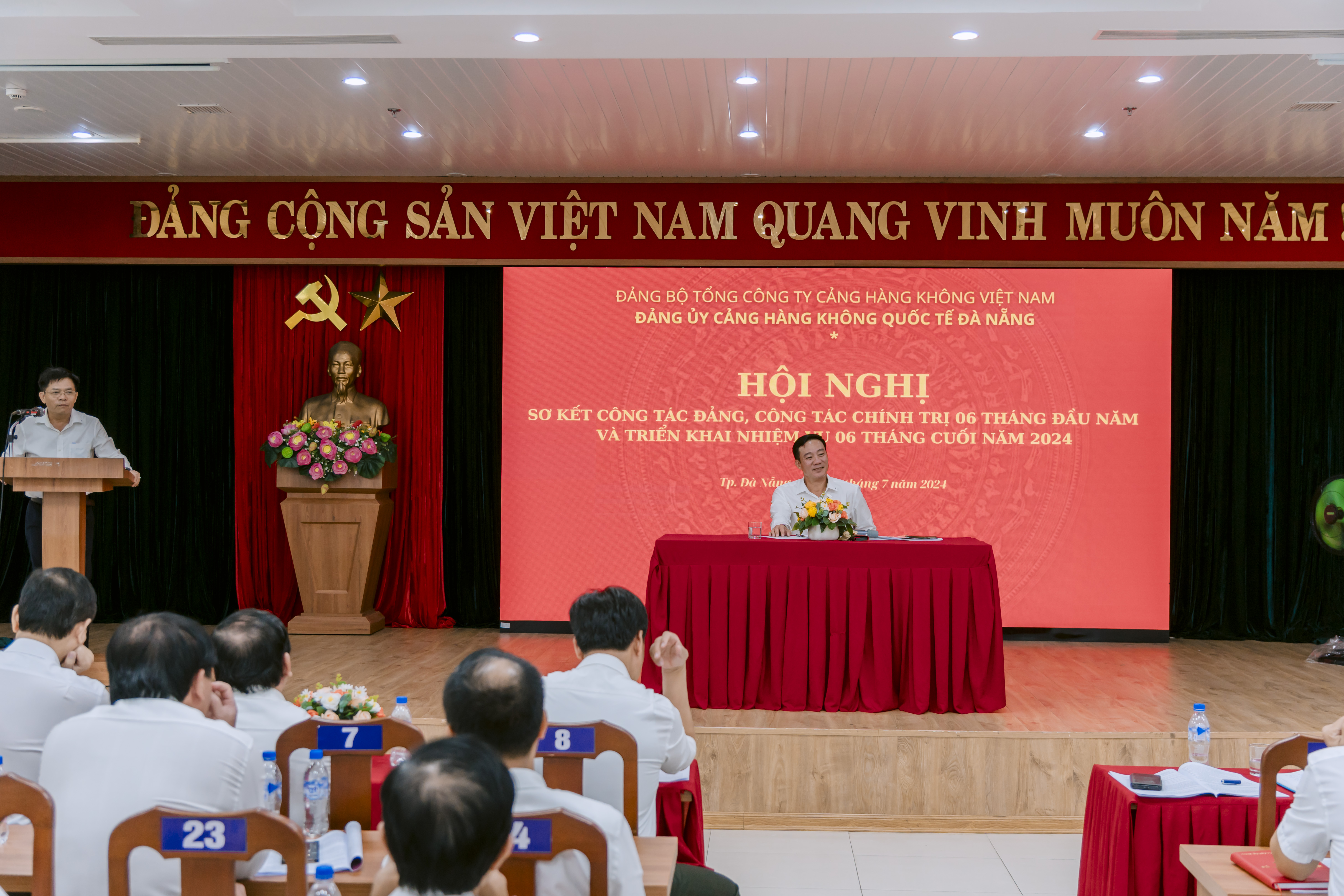 Thực hiện chương trình công tác của Đảng uỷ năm 2024, ngày 08/7/2024, Đảng uỷ Cảng hàng không Quốc tế Đà Nẵng tổ chức Hội nghị sơ kết nhằm đánh giá kết quả lãnh đạo công tác xây dựng Đảng, thực hiện nhiệm vụ chính trị 6 tháng đầu năm 2024 và triển khai nhiệm vụ trọng tâm 6 tháng cuối năm. Đồng chí Phan Kiều Hưng, Phó Bí thư phụ trách, Giám đốc Cảng HKQT Đà Nẵng tham dự và chủ trì Hội nghị; cùng dự có các đồng chí trong Ban thường vụ, Đảng uỷ, Ban giám đốc Cảng; các đồng chí là cấp uỷ viên các cấp và cán bộ từ cấp đội trở lên.