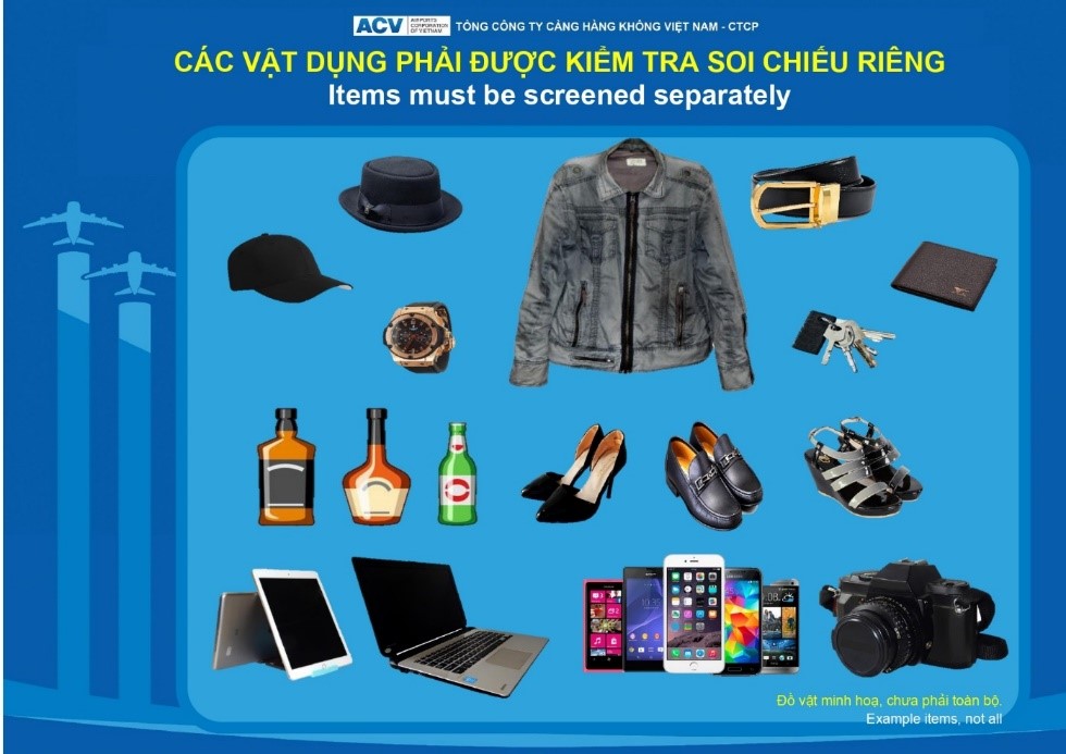 Các vật dụng phải được kiểm tra soi chiếu riêng
