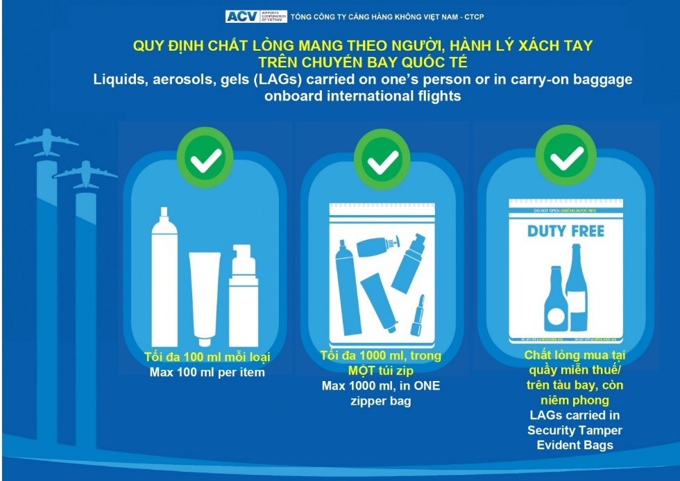 Chất lỏng mang theo người, hành lý xách tay trên chuyến bay quốc tế