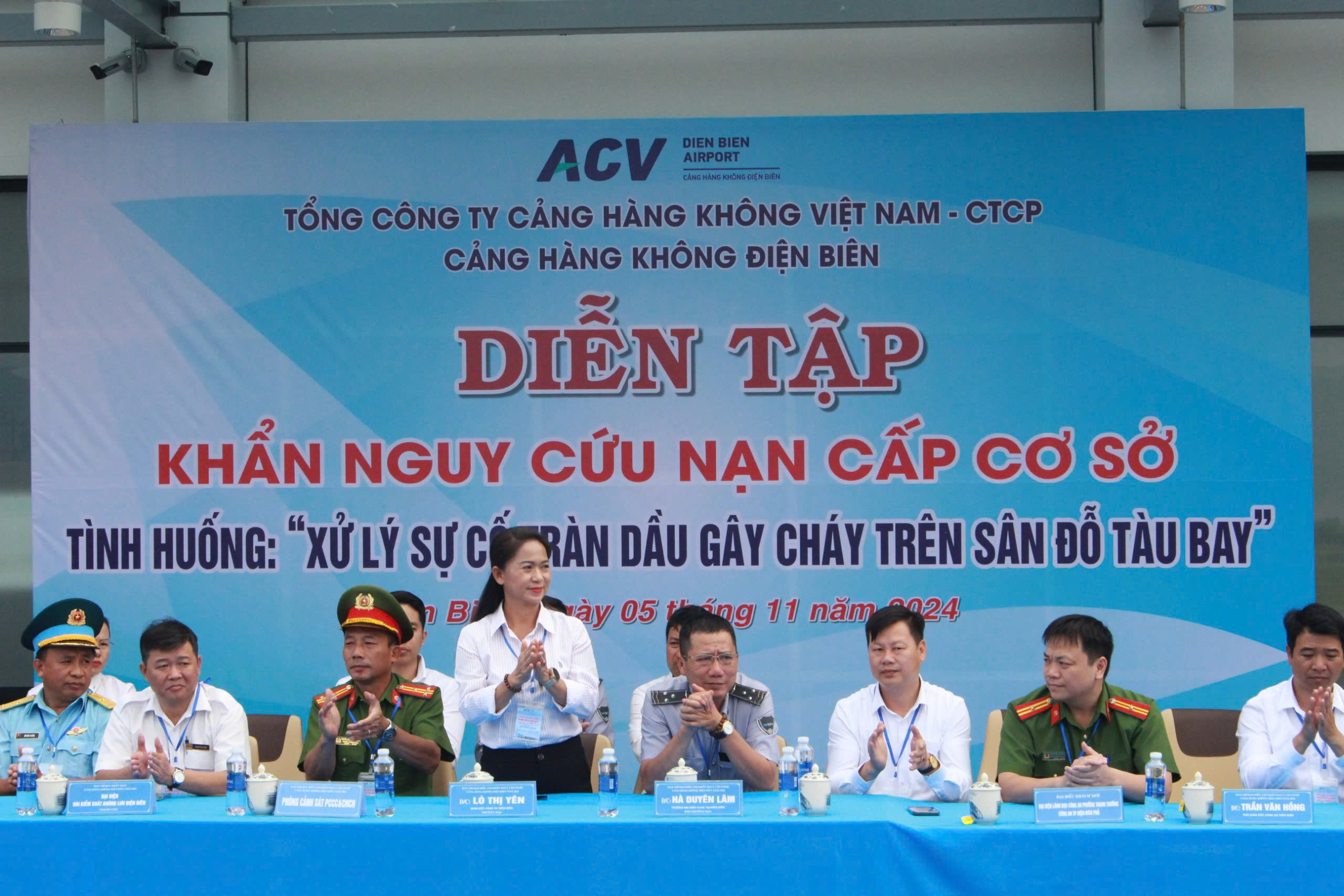 Trước khi diễn tập, Bà Lò Thị Yên- Giám đốc Cảng, Trưởng Ban Chỉ đạo diễn tập năm 2024 đã đặc biệt nhấn mạnh tầm quan trọng của công tác đảm bảo an toàn, công tác khẩn nguy cứu nạn tại Cảng hàng không Điện Biên. Qua đó, chỉ đạo các lực lượng tham gia diễn tập phải thực sự nghiêm túc, bám sát nội dung kịch bản, kế hoạch đã được phê duyệt; đảm bảo an toàn tuyệt đối về lực lượng, phương tiện trong quá trình diễn tập.
