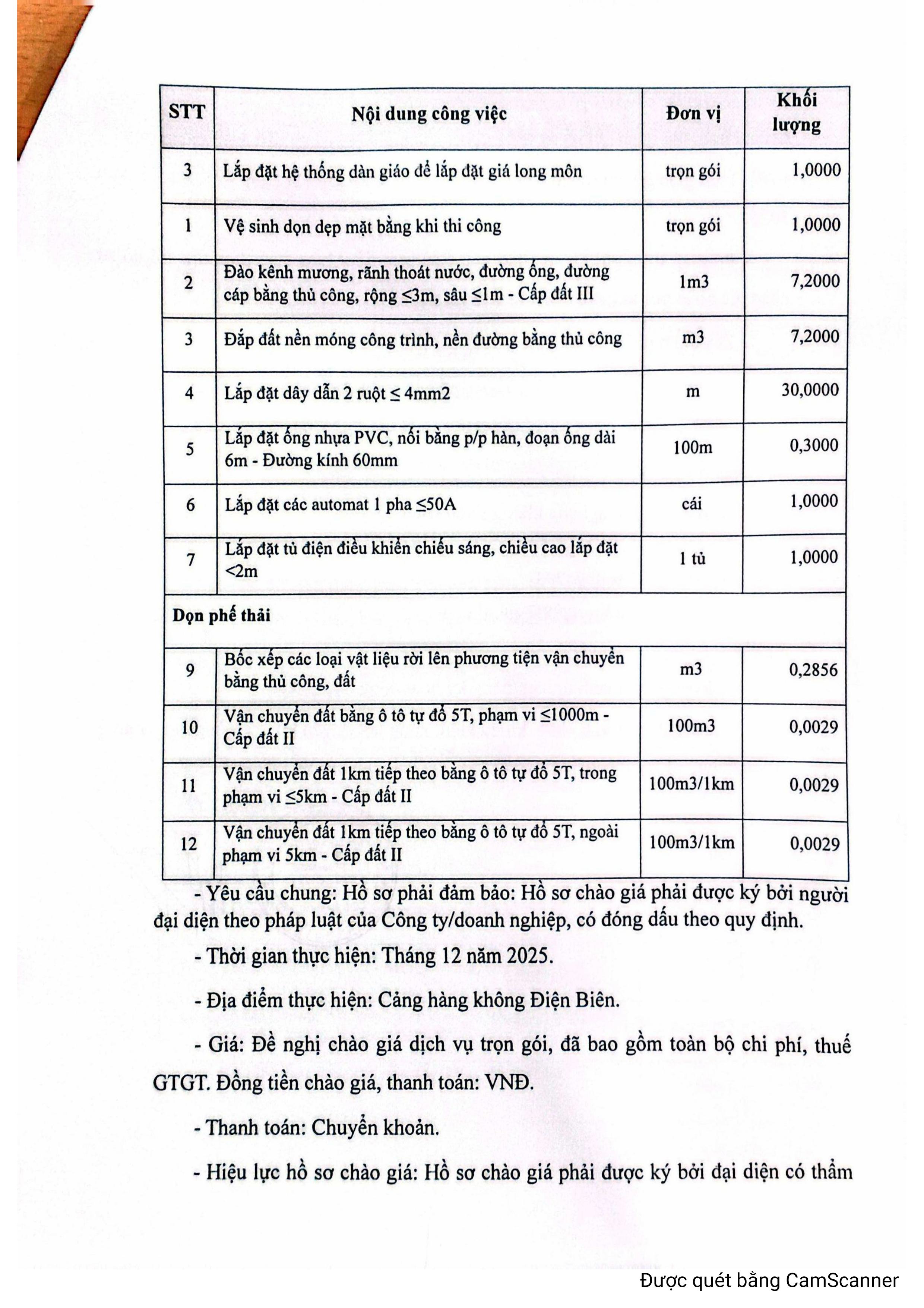 Thông báo chào giá về việc thi công hạng mục: Hệ thống thoát nước khu bay năm 2025 - Cảng hàng không Điện Biên