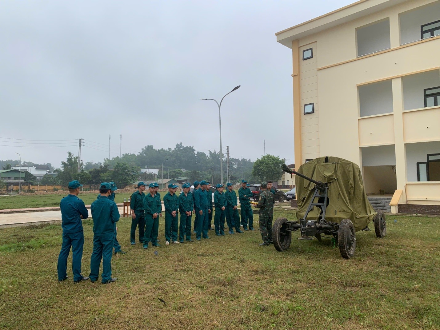 Các chiến sỹ dân quân tự vệ học cách công sự ngụy trang Pháo phòng không 37mm-1