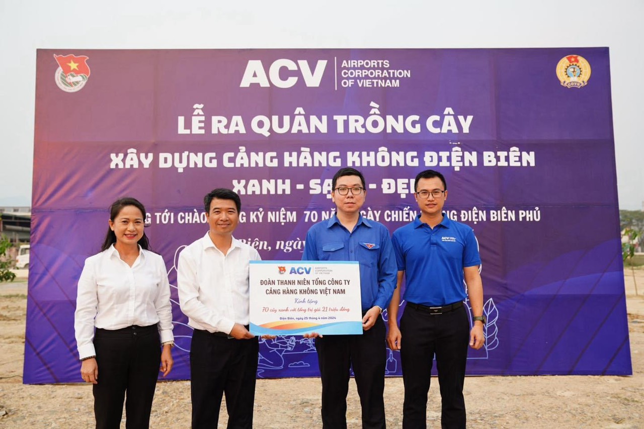Chào mừng kỷ niệm 49 năm ngày Giải phóng miền Nam thống nhất đất nước (30/4/1975) và 70 năm ngày chiến thắng Điện Biên Phủ (07/5/1954), ngày 25/4/2024 Đoàn Thanh niên Tổng công ty Cảng hàng không Việt Nam kết hợp với Đoàn Thanh niên Cảng hàng không Điện Biên đã tổ chức tuyên truyền văn hoá an toàn hàng không và phát động trồng cây xanh tại Cảng hàng không Điện Biên.