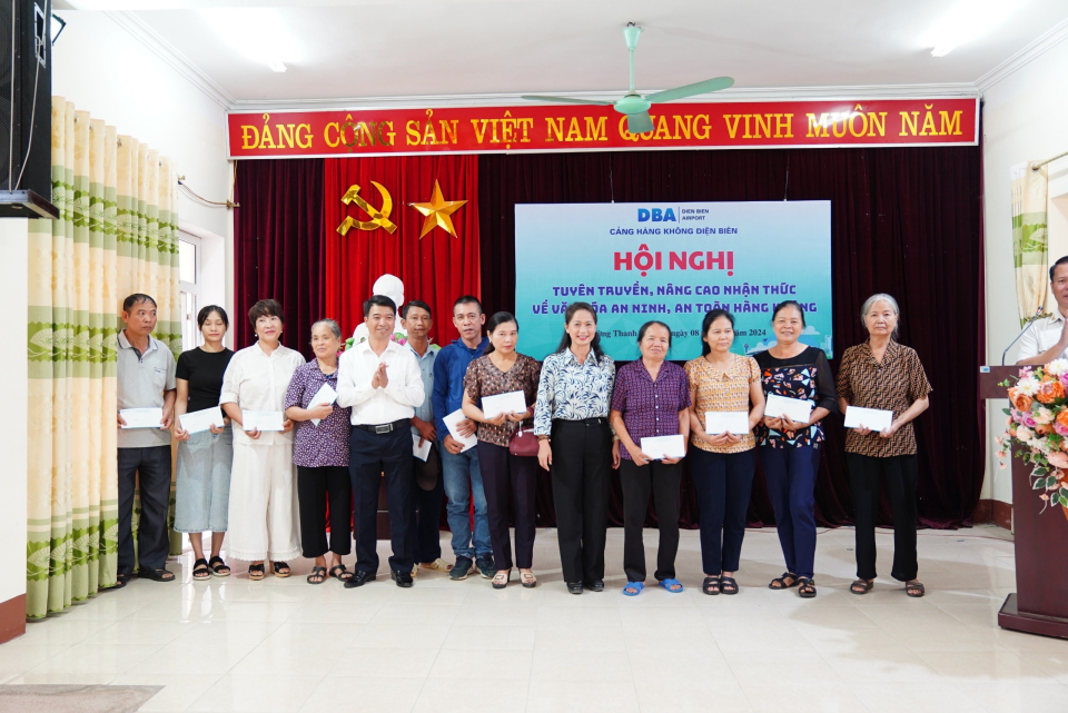 Tại hội nghị, Cảng hàng không Điện Biên đã trao tặng 14 suất quà cho Tổ dân phố phường Thanh Trường và 15 suất quà cho các hộ dân sống quanh khu vực Cảng hàng không.