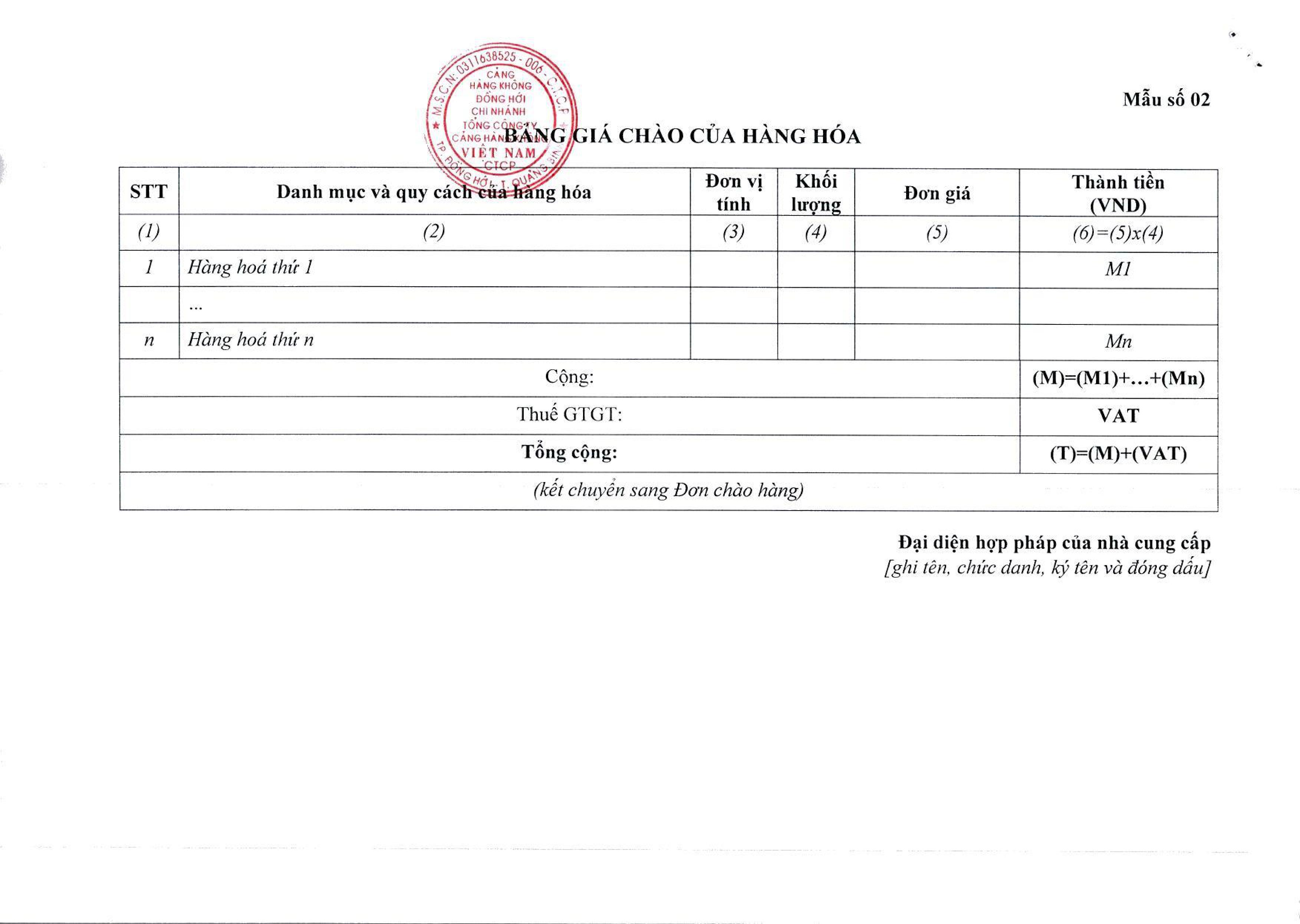 THÔNG BÁO MỜI CHÀO GIÁ V/v: “Mua sắm bảo hiểm năm 2026 cho phương tiện, trang thiết bị chuyên ngành hàng không và xe ô tô các loại tại CHK Đồng Hới”