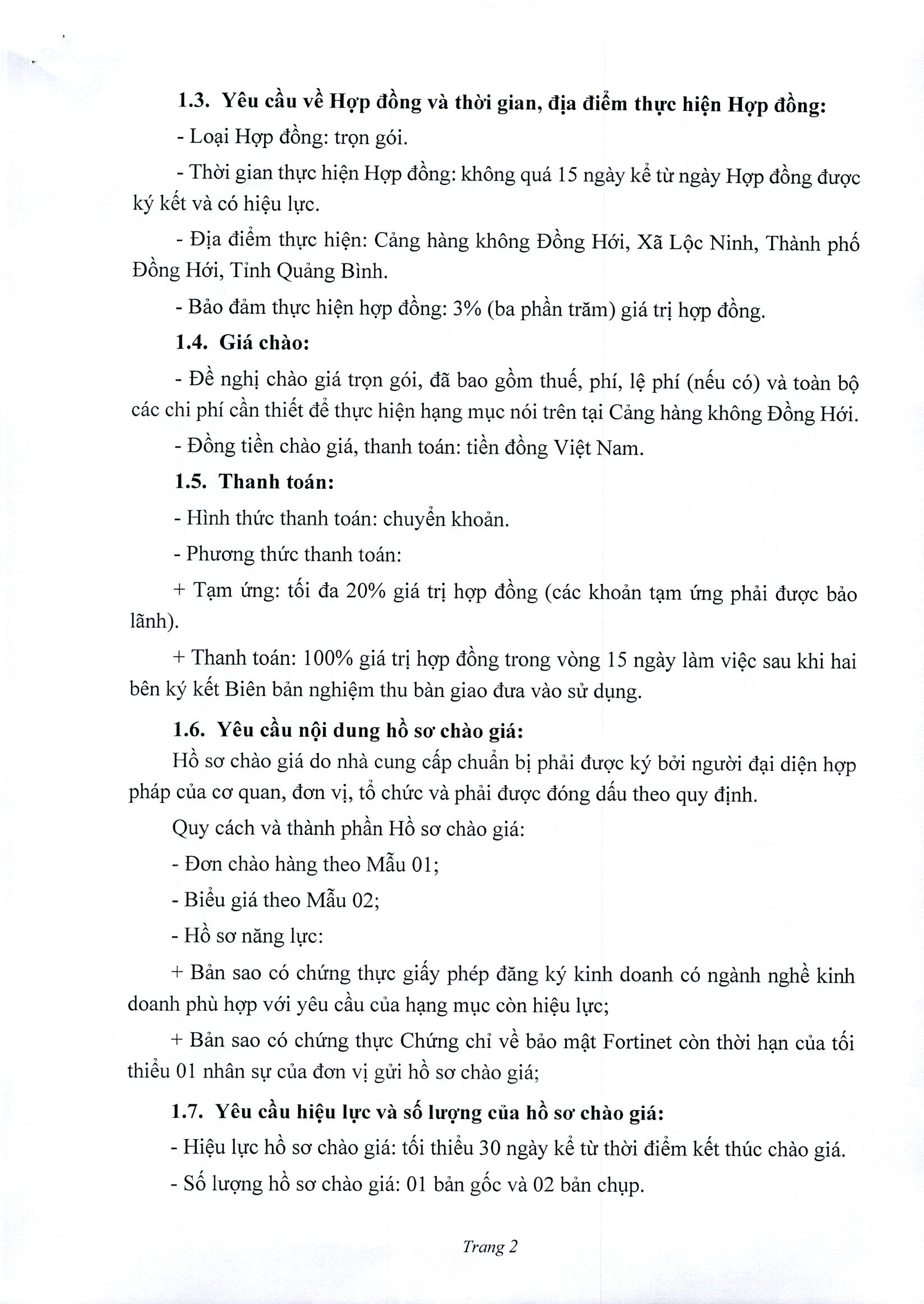 THÔNG BÁO MỜI CHÀO GIÁ V/v: “Mua sắm bảo hiểm năm 2026 cho phương tiện, trang thiết bị chuyên ngành hàng không và xe ô tô các loại tại CHK Đồng Hới”