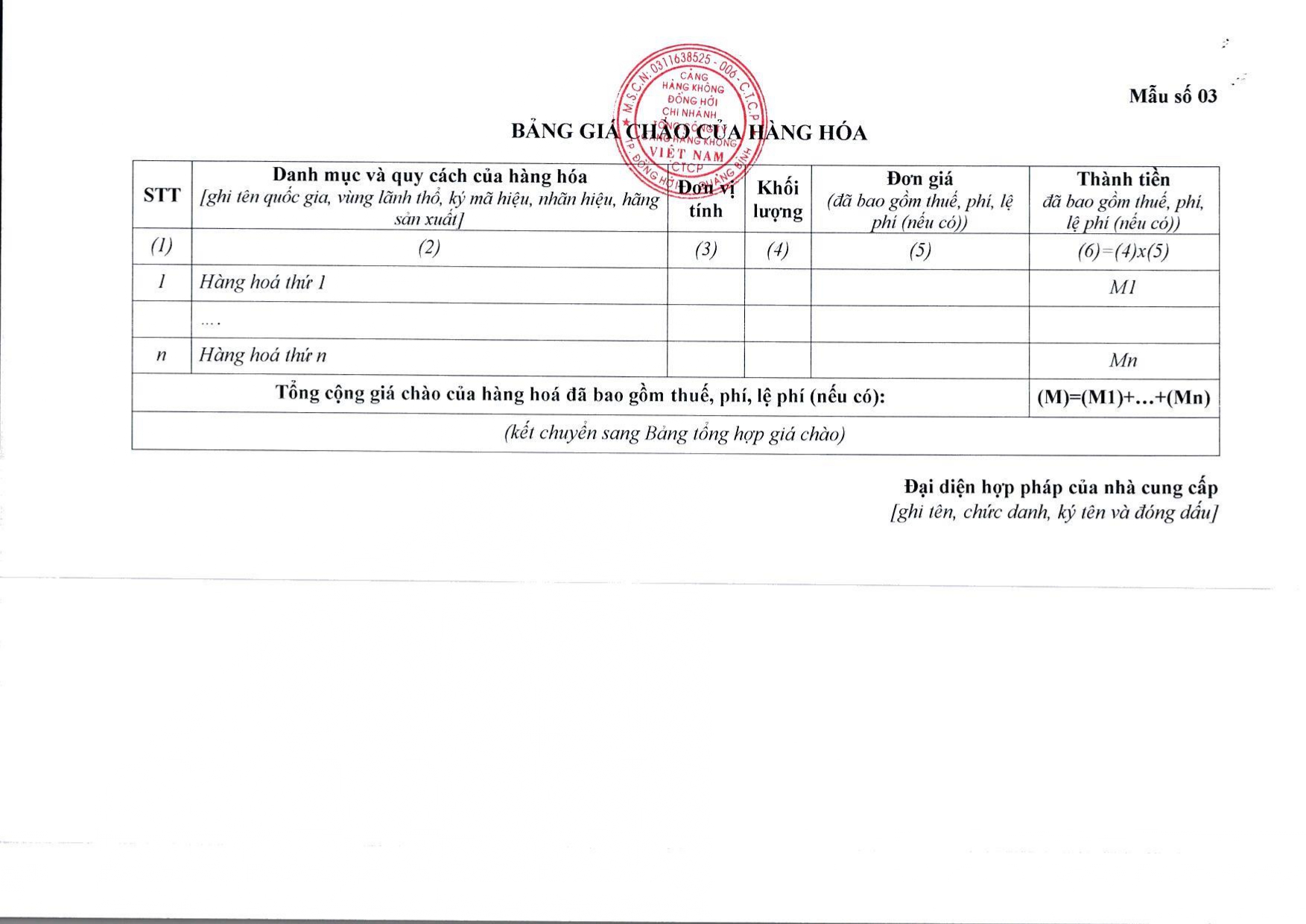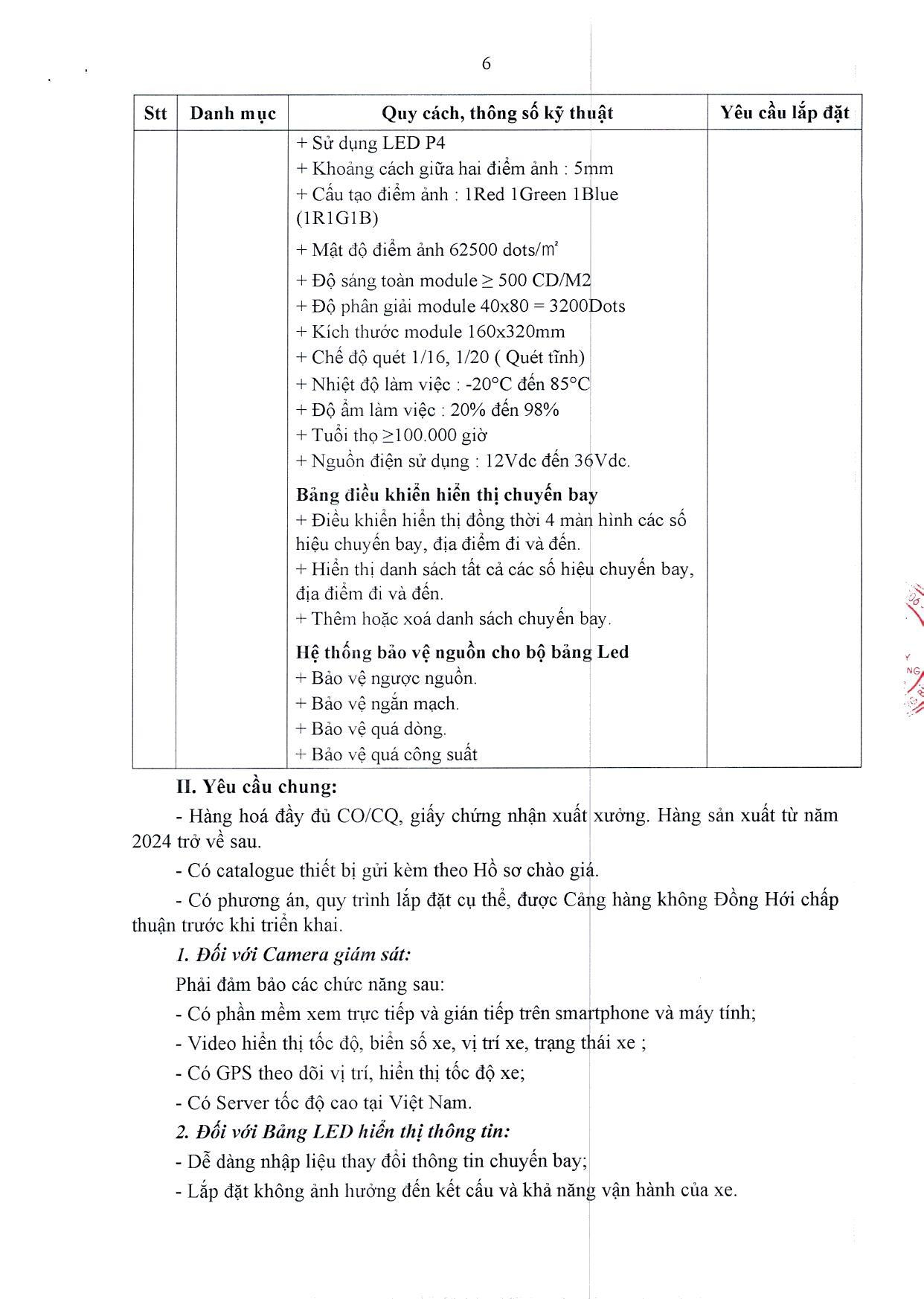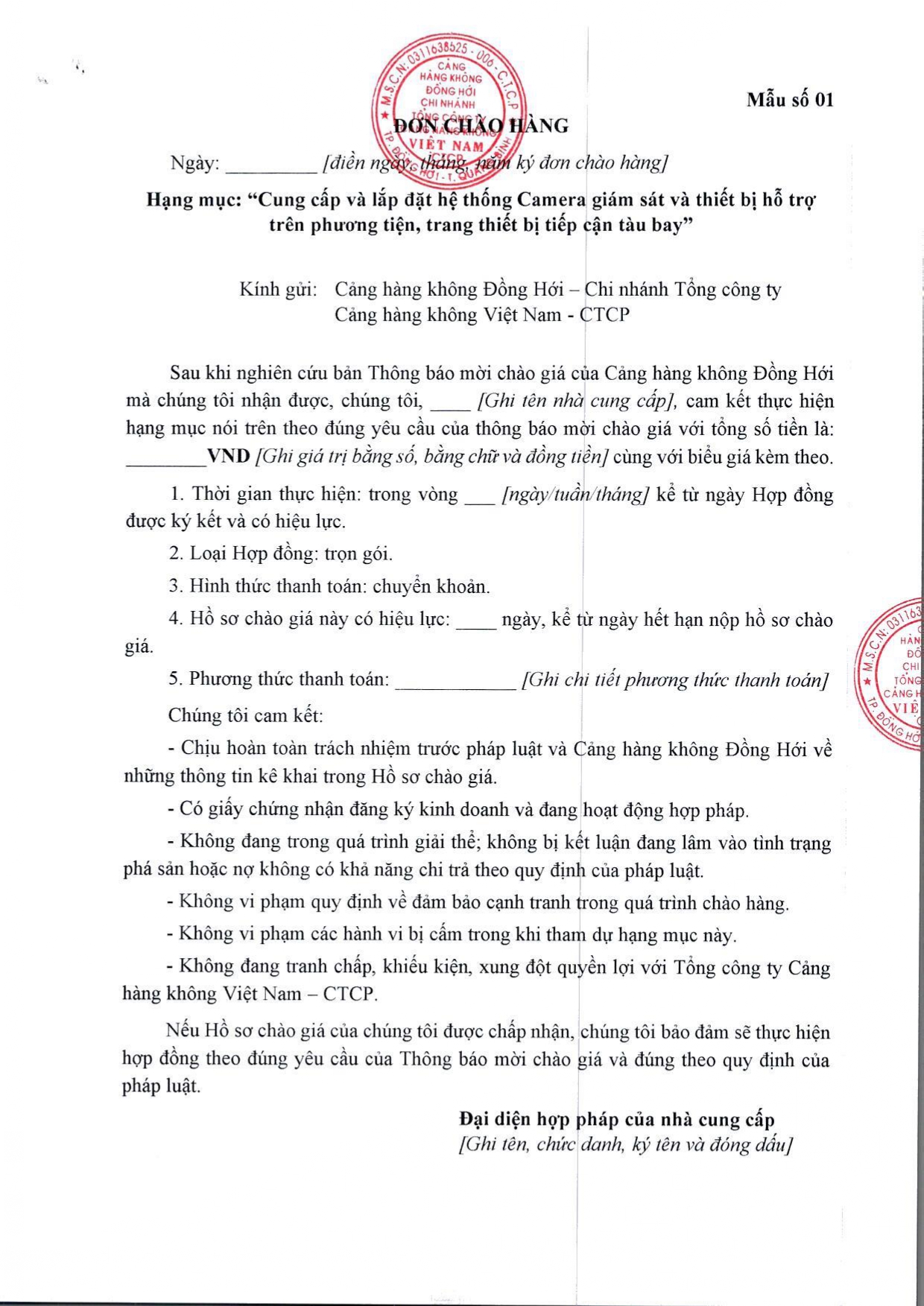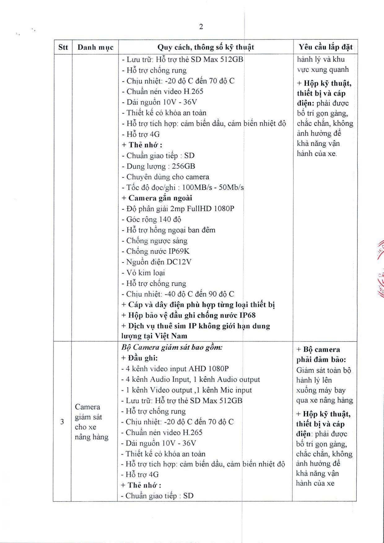 THÔNG BÁO MỜI CHÀO GIÁ V/v: Cung cấp hàng hoá hạng mục: " Cung cấp và lắp đặt hệ thống Camera giám sát và thiết bị hỗ trợ trên phương tiện, trang thiết bị tiếp cận tàu bay"