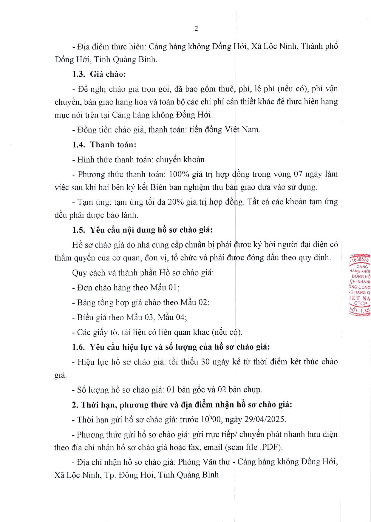 THÔNG BÁO MỜI CHÀO GIÁ V/v: “Mua sắm bảo hiểm năm 2026 cho phương tiện, trang thiết bị chuyên ngành hàng không và xe ô tô các loại tại CHK Đồng Hới”