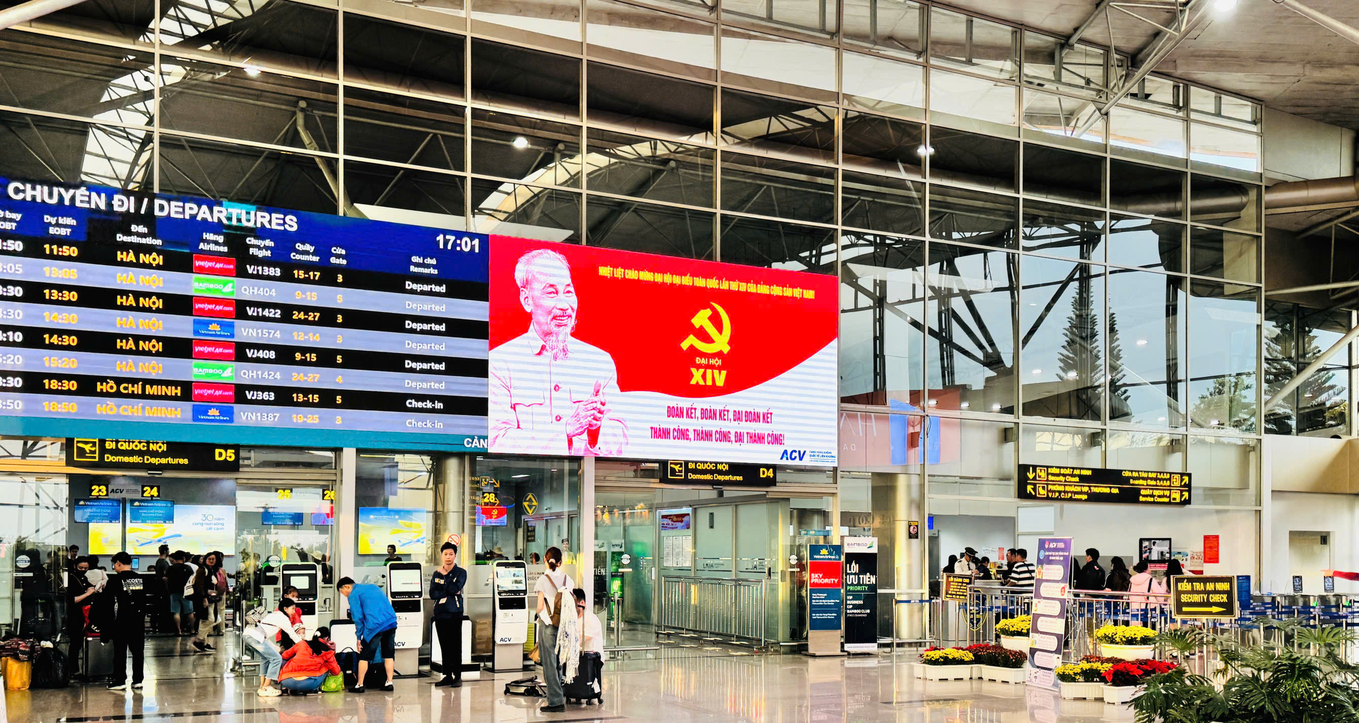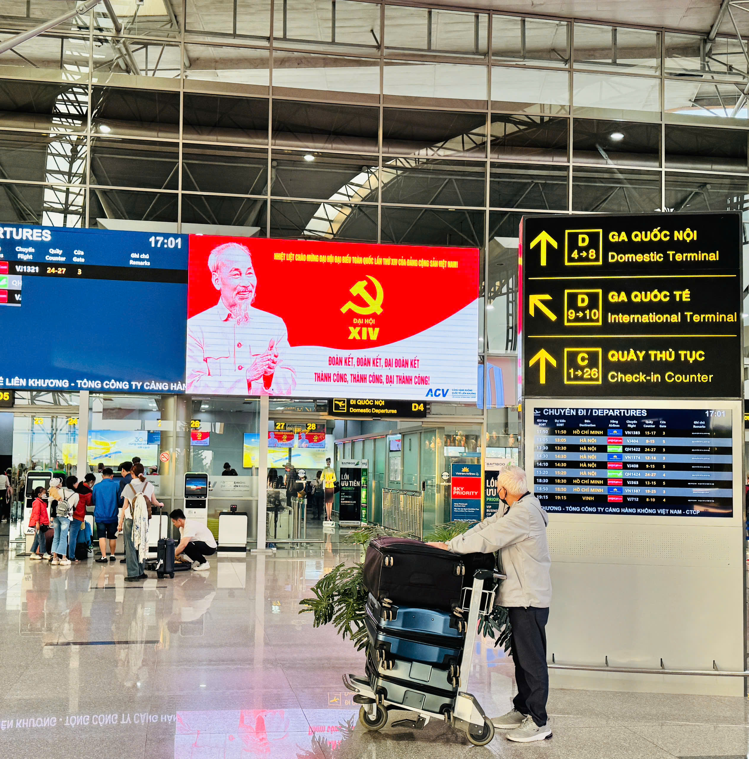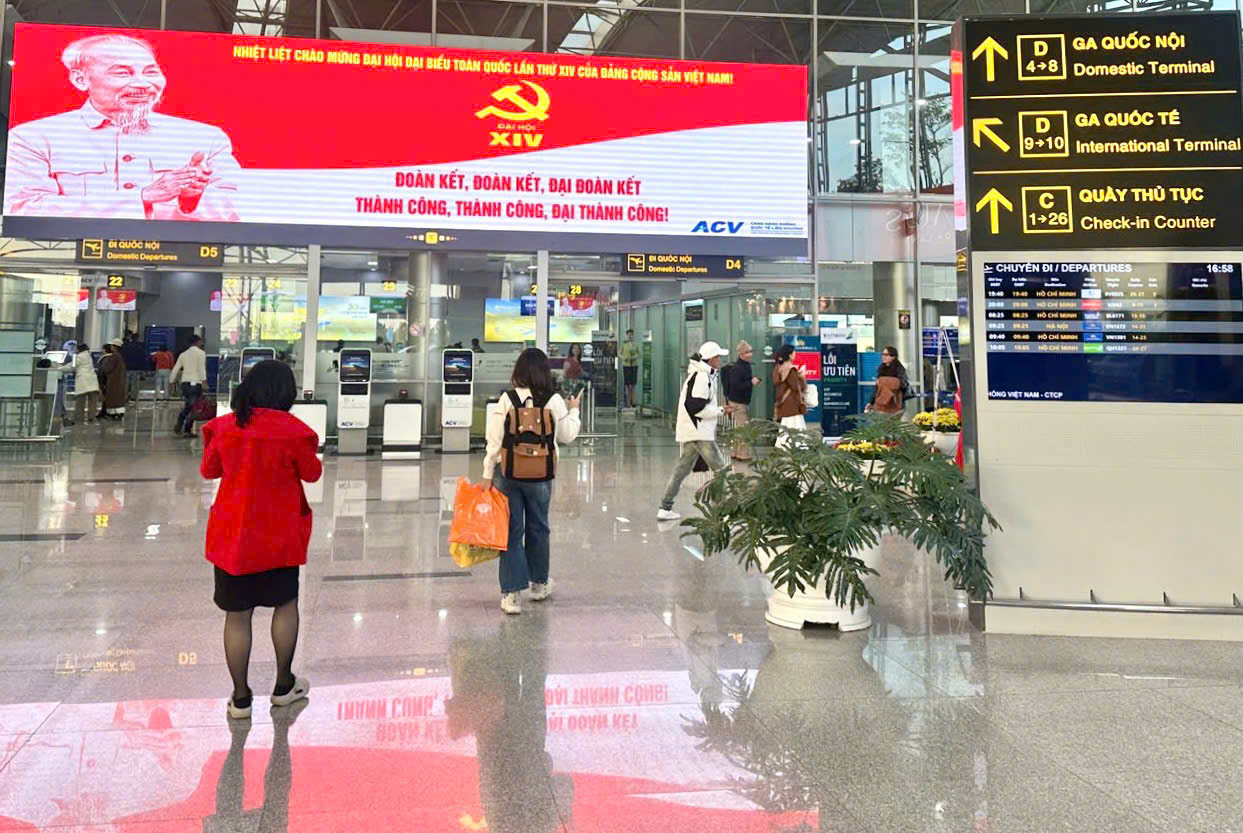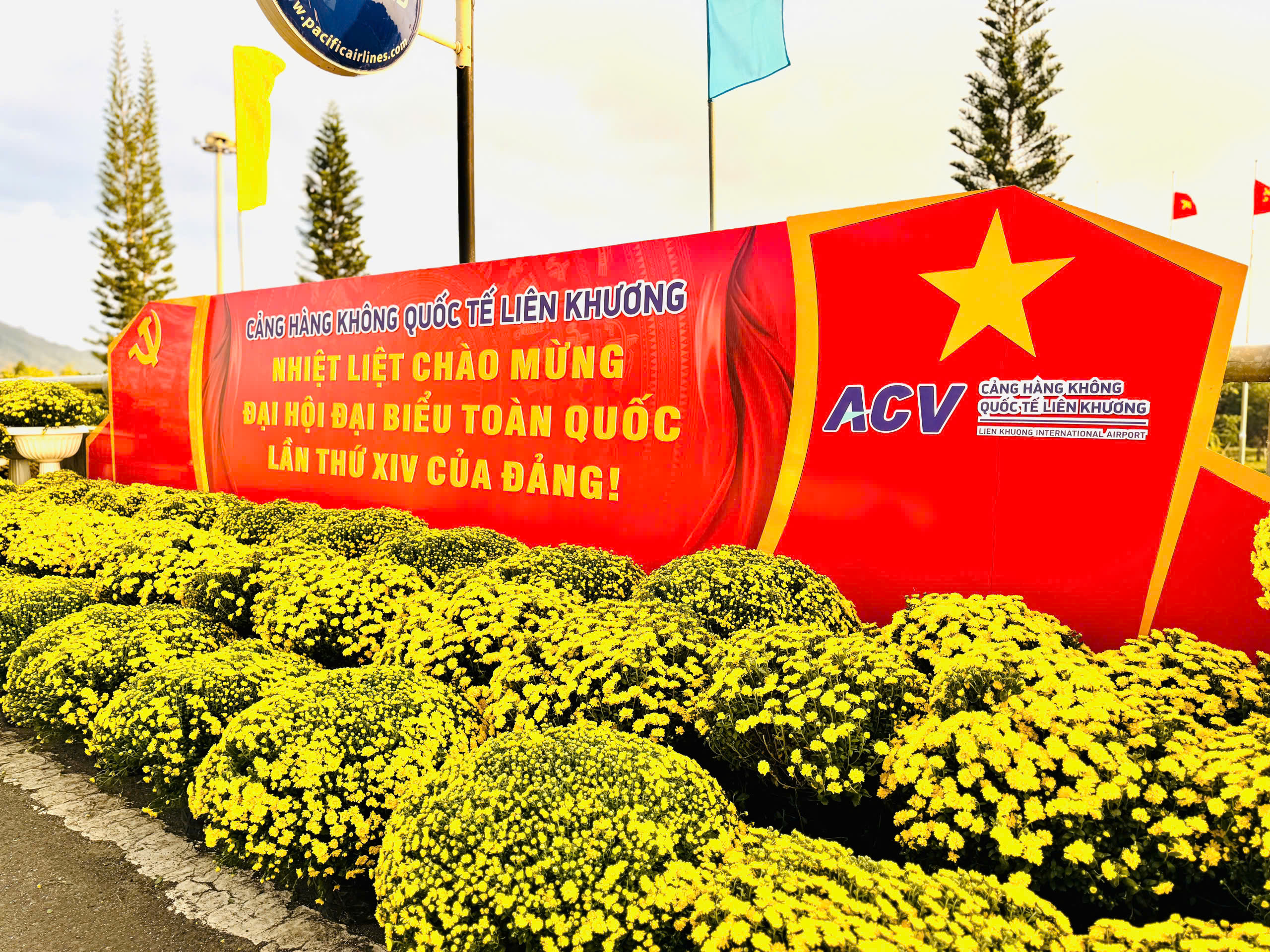 Những ngày này, tại Cảng hàng không quốc tế Liên Khương, các hoạt động trang trí và tuyên truyền chào mừng Đại hội Đại biểu toàn quốc lần thứ XIV của Đảng được triển khai đồng bộ, tạo nên không khí phấn khởi và trang trọng trong toàn khu vực. Từ cổng vào nhà ga, sảnh công cộng cho đến các tuyến đường giao thông nội cảng, hệ thống tiểu cảnh, pano, băng rôn và khẩu hiệu được bố trí nổi bật, hài hòa, tạo điểm nhấn sinh động cho không gian cảng.