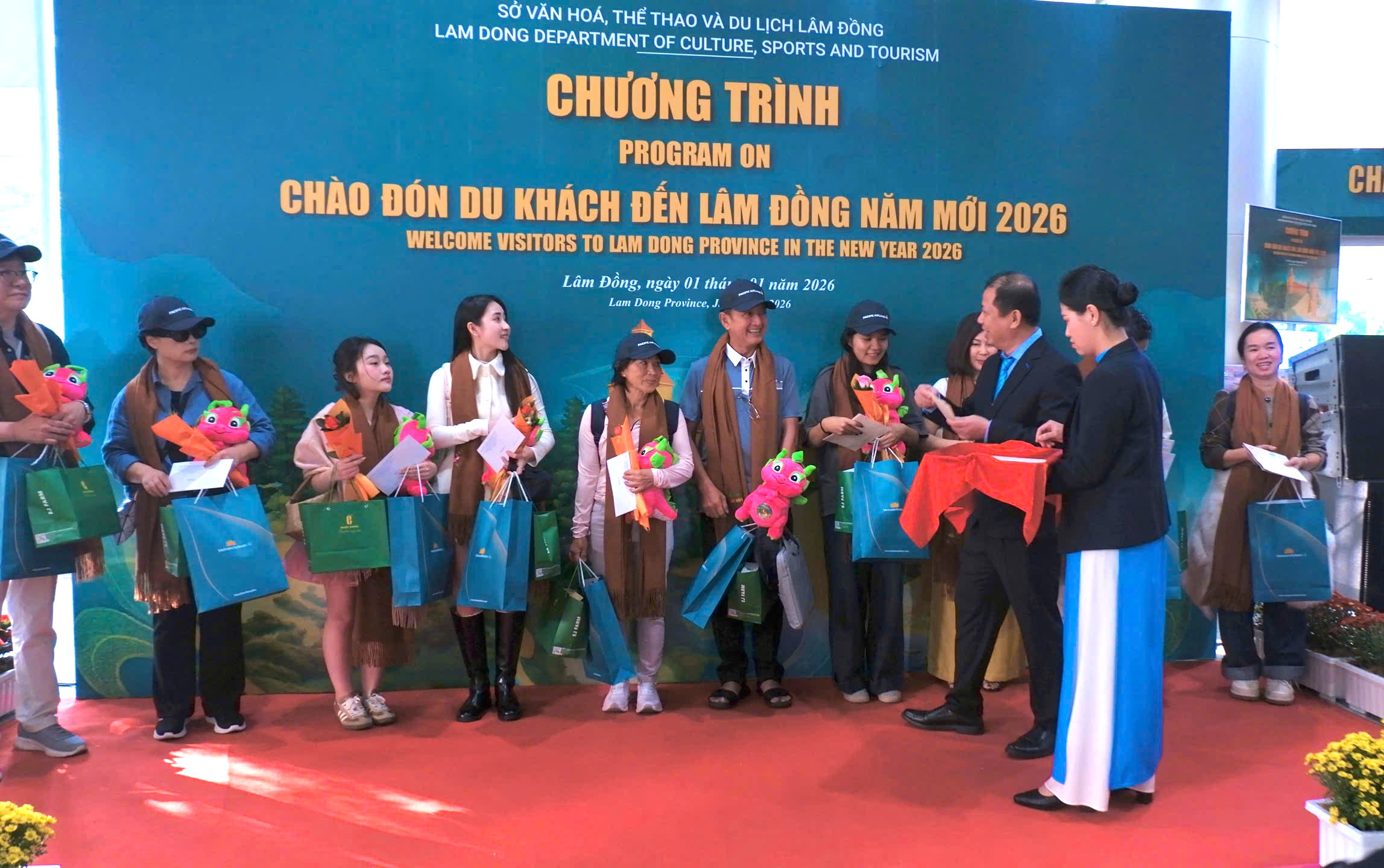 Sáng ngày 01/01/2026, tại Cảng hàng không quốc tế Liên Khương, chương trình “Chào đón những du khách đầu tiên đến Lâm Đồng năm mới 2026” đã diễn ra trong không khí trang trọng, ấm áp và đầy ý nghĩa. Sự kiện do Sở Văn hóa, Thể thao và Du lịch tỉnh Lâm Đồng chủ trì, phối hợp với Cảng hàng không quốc tế Liên Khương, Tổng Công ty Hàng không Việt Nam (Vietnam Airlines) và các đơn vị liên quan tổ chức với sự tham dự của lãnh đạo UBND tỉnh Lâm Đồng, lãnh đạo các Sở ngành và Hiệp hội Du lịch Lâm Đồng cùng các cơ quan báo chí, truyền thông.
