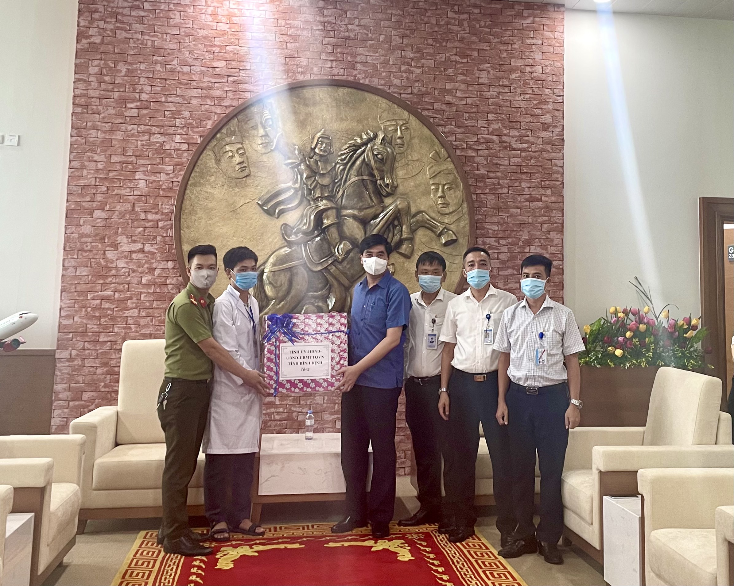 Nhân dịp đến thăm và kiểm tra công tác phòng, chống dịch tại Cảng hàng không Phù Cát, thay mặt cho Tỉnh ủy, Hội đồng nhân dân, Ủy ban nhân dân, Ủy ban Mặt trận Tổ quốc Việt Nam, Ông Lâm Hải Giang-Phó Chủ tịch Tỉnh Bình Định gửi đến các đơn vị đã hỗ trợ lập chốt kiểm soát dịch tại Cảng hàng không Phù Cát những món quà, lời động viên, lời chúc sức khỏe với mong muốn các đơn vị sẽ tiếp tục nỗ lực hơn nữa để góp phần cùng với Tỉnh làm tốt công tác phòng, chống dịch COVID-19 được hiệu quả, an toàn.