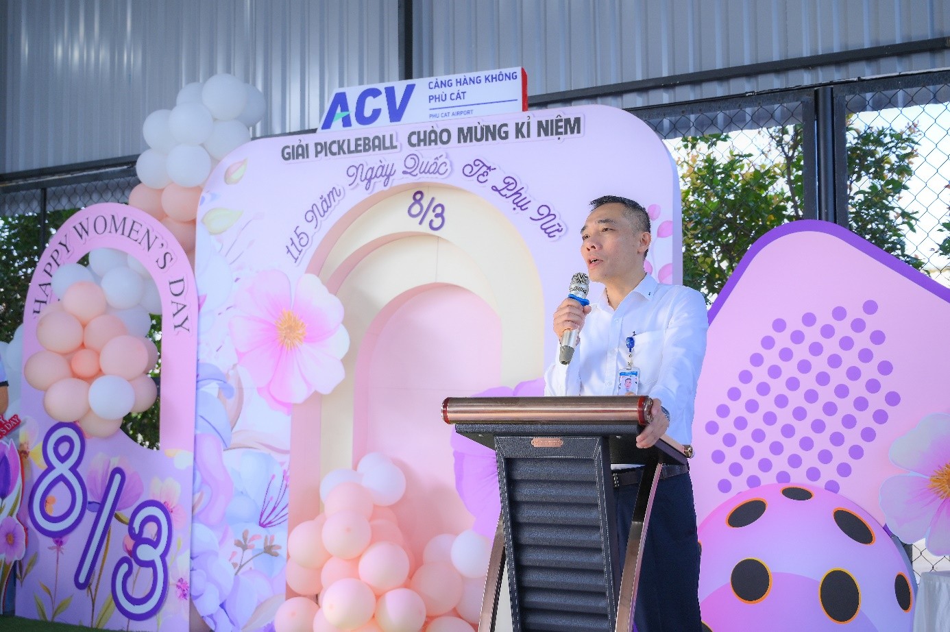 Phát biểu tại lễ khai mạc, ông Hồ Long Giang - Phó Giám đốc, Chủ tịch Công đoàn cơ sở Cảng hàng không Phù Cát đã gửi lời chúc mừng đến toàn thể nữ cán bộ, nhân viên nhân dịp đặc biệt này. Ông nhấn mạnh tầm quan trọng của việc rèn luyện thể chất, duy trì lối sống lành mạnh cũng như phát huy tinh thần thể thao trong môi trường làm việc. Đồng thời, ông khuyến khích các vận động viên tham gia với tinh thần thi đấu đoàn kết, trung thực, cao thượng, mang đến những trận đấu kịch tính và hấp dẫn.