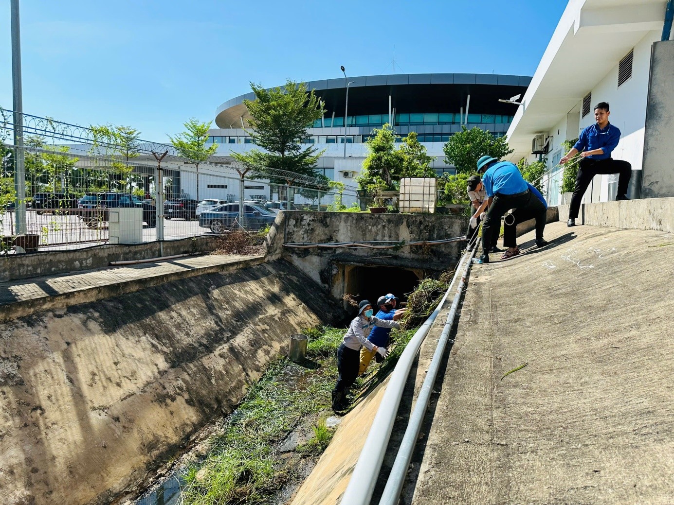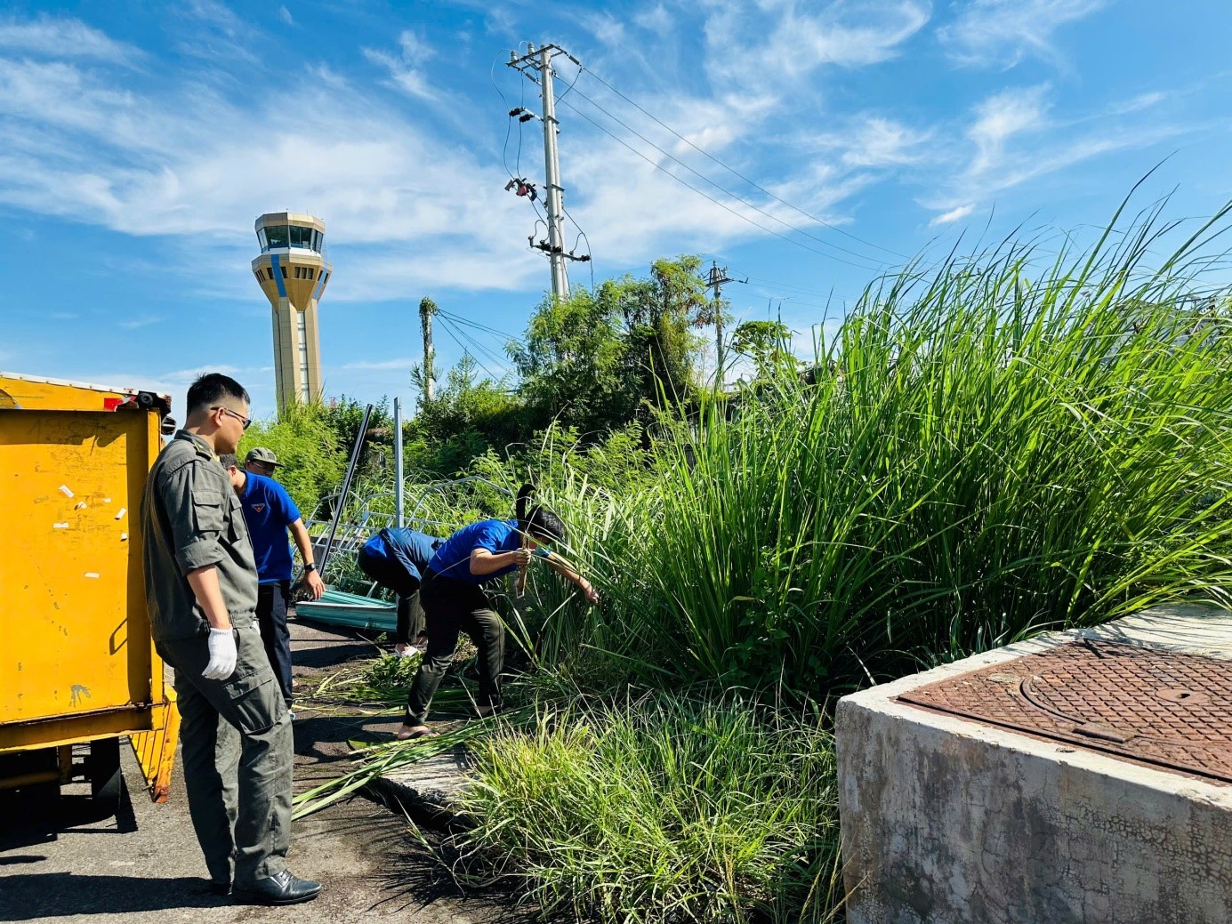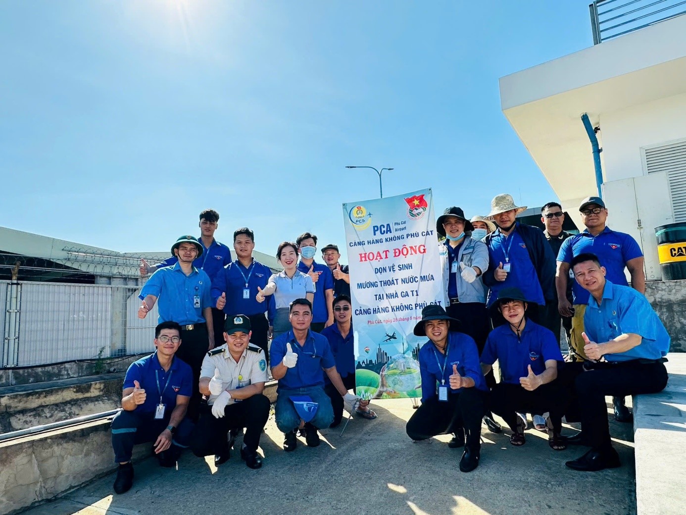 Sáng ngày 28/8/2024, Công đoàn cơ sở-Đoàn thanh niên Cảng hàng không Phù Cát đã phối hợp tổ chức hoạt động vệ sinh môi trường: quét dọn vệ sinh phát quang bụi rậm và khơi thông cống thoát nước tại khu vực nhà ga hành khách T1 Cảng hàng không Phù Cát.