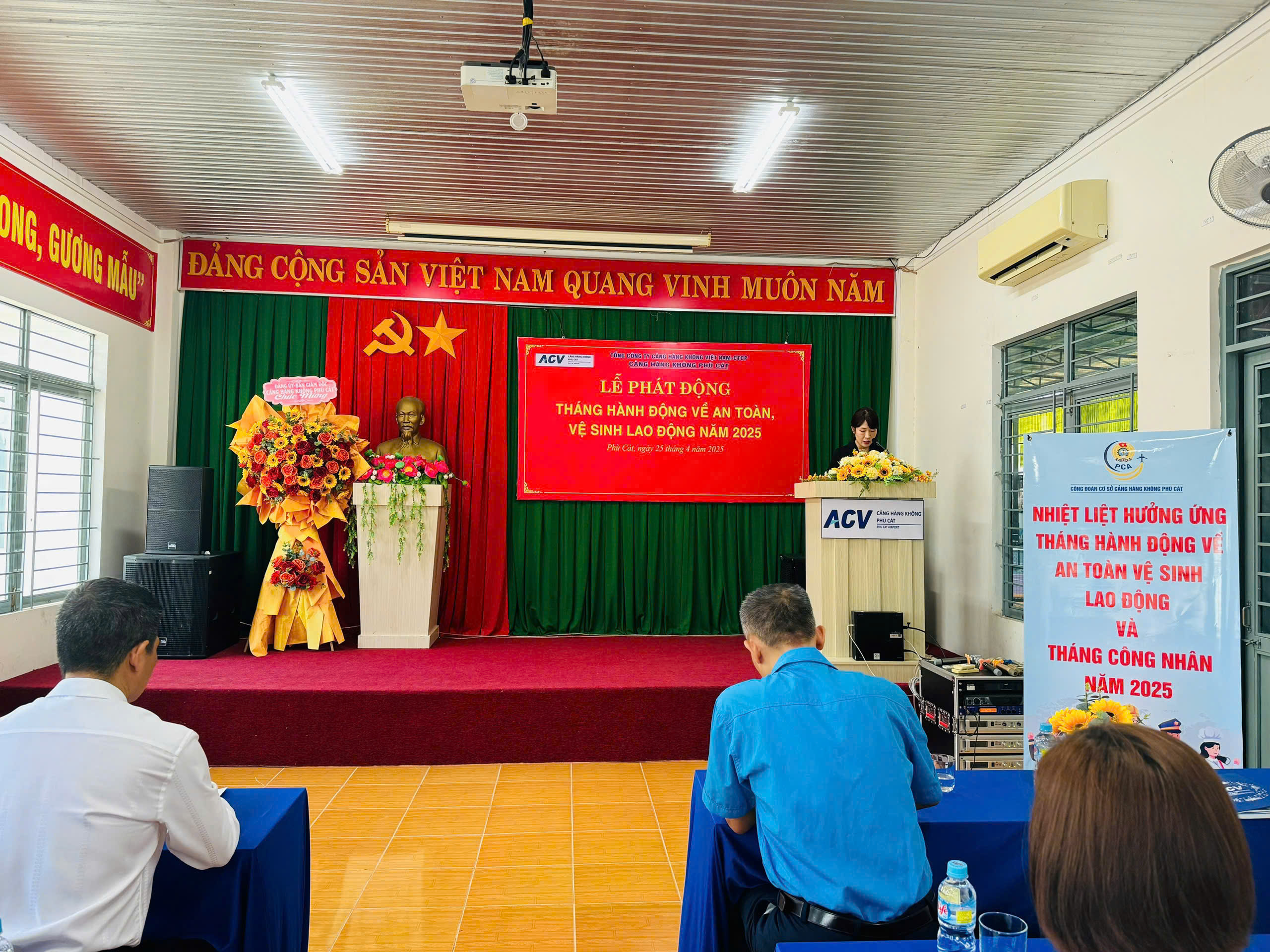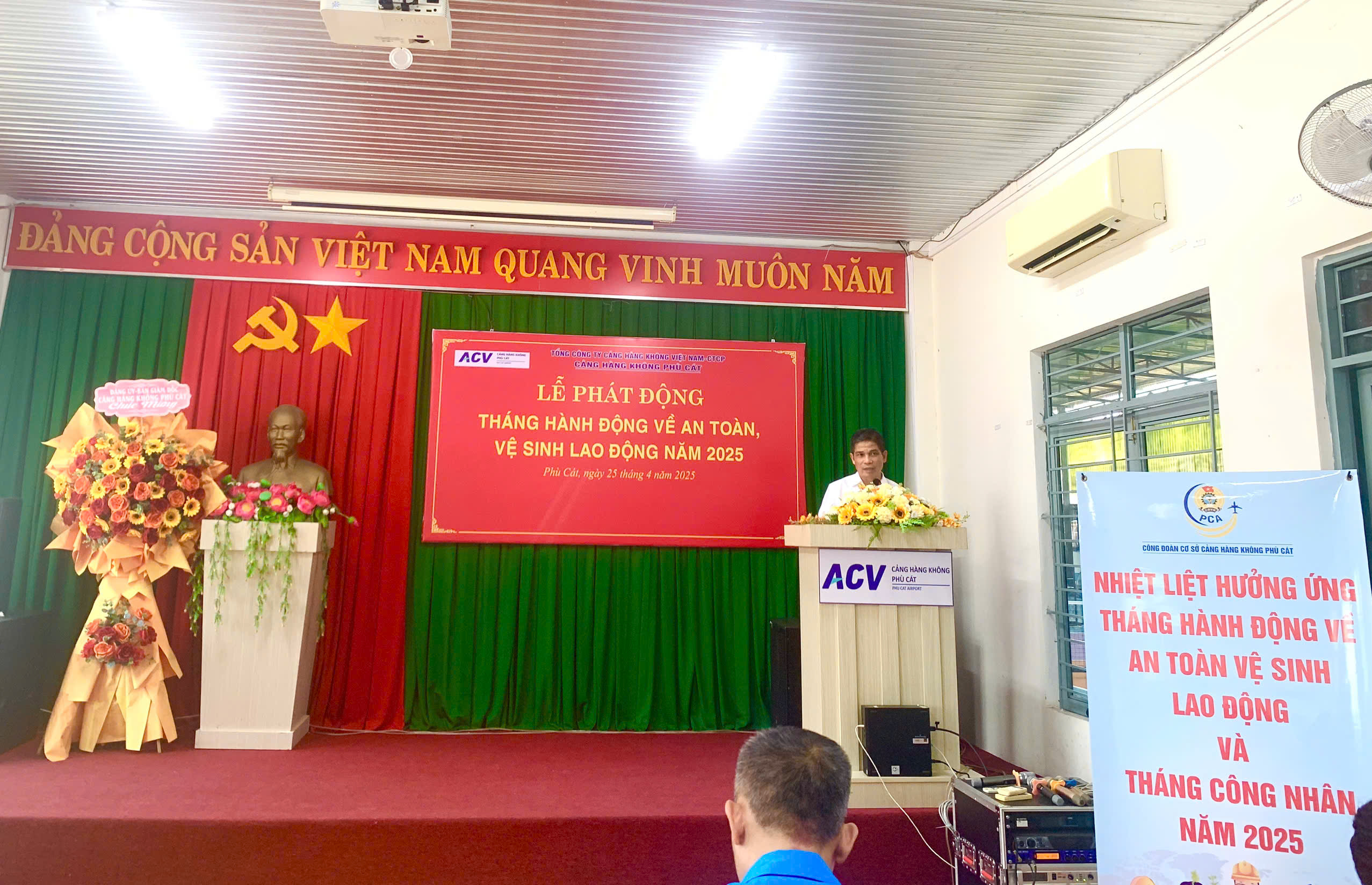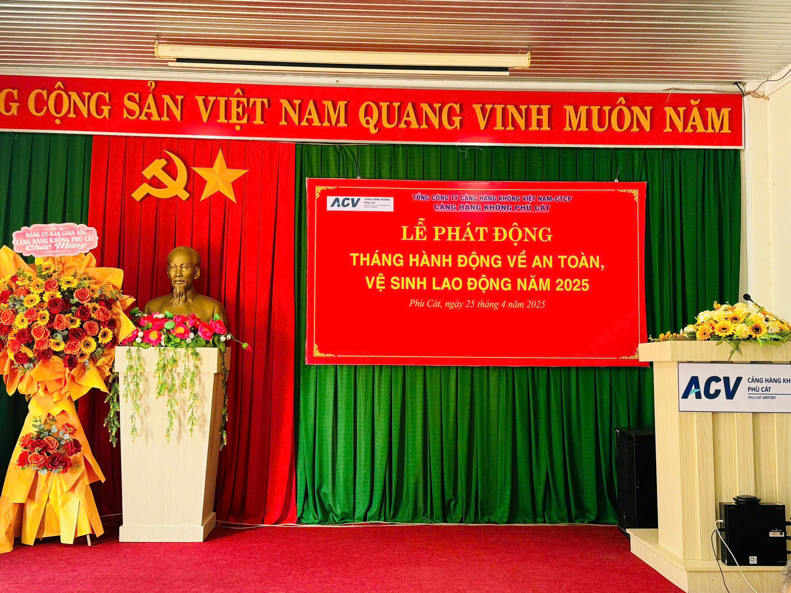 Sáng ngày 25/4/2025, Cảng hàng không Phù Cát long trọng tổ chức Lễ phát động Tháng hành động về An toàn, vệ sinh lao động năm 2025 với chủ đề: “Tăng cường đánh giá, nhận diện nguy cơ, rủi ro và chủ động triển khai các biện pháp bảo vệ an toàn, vệ sinh lao động tại nơi làm việc.”
