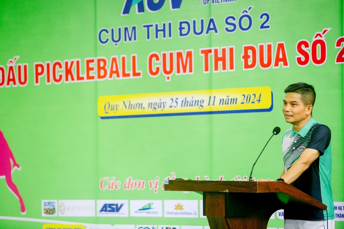 Ông Nguyễn Hoàng Anh - Giám đốc Cảng hàng không Phù Cát - Cụm trưởng Cụm thi đua số 2 phát biểu khai mạc giải đấu