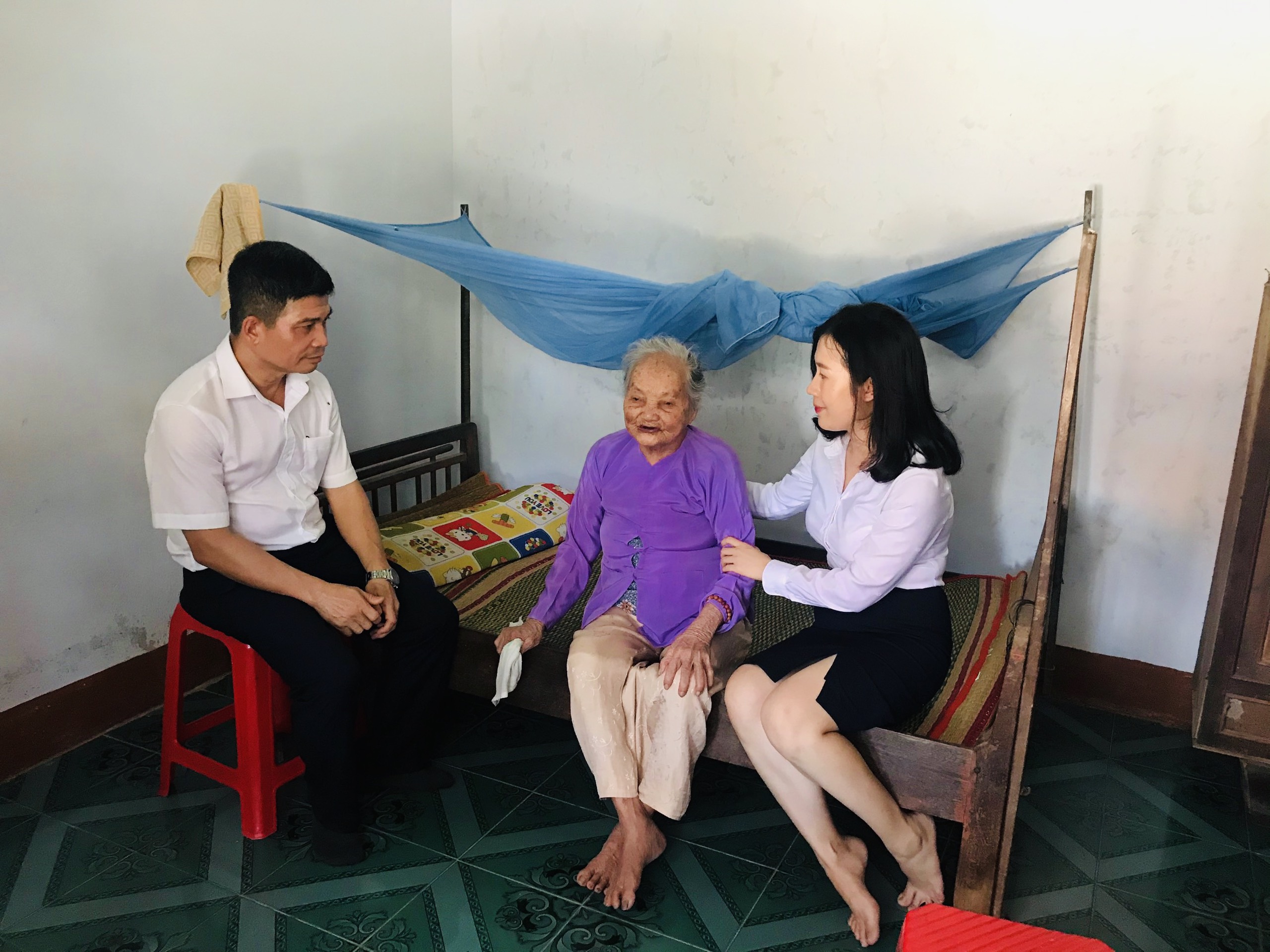 Đoàn đã ghé nhà của Mẹ Việt Nam Anh Hùng Đỗ Thị Thừa (101 tuổi) có chồng và 1 người con duy nhất là liệt sỹ. Hiện tại Mẹ đang sống cùng với người cháu họ tại Xã Cát Minh, Huyện Phù Cát, Tỉnh Bình Định.