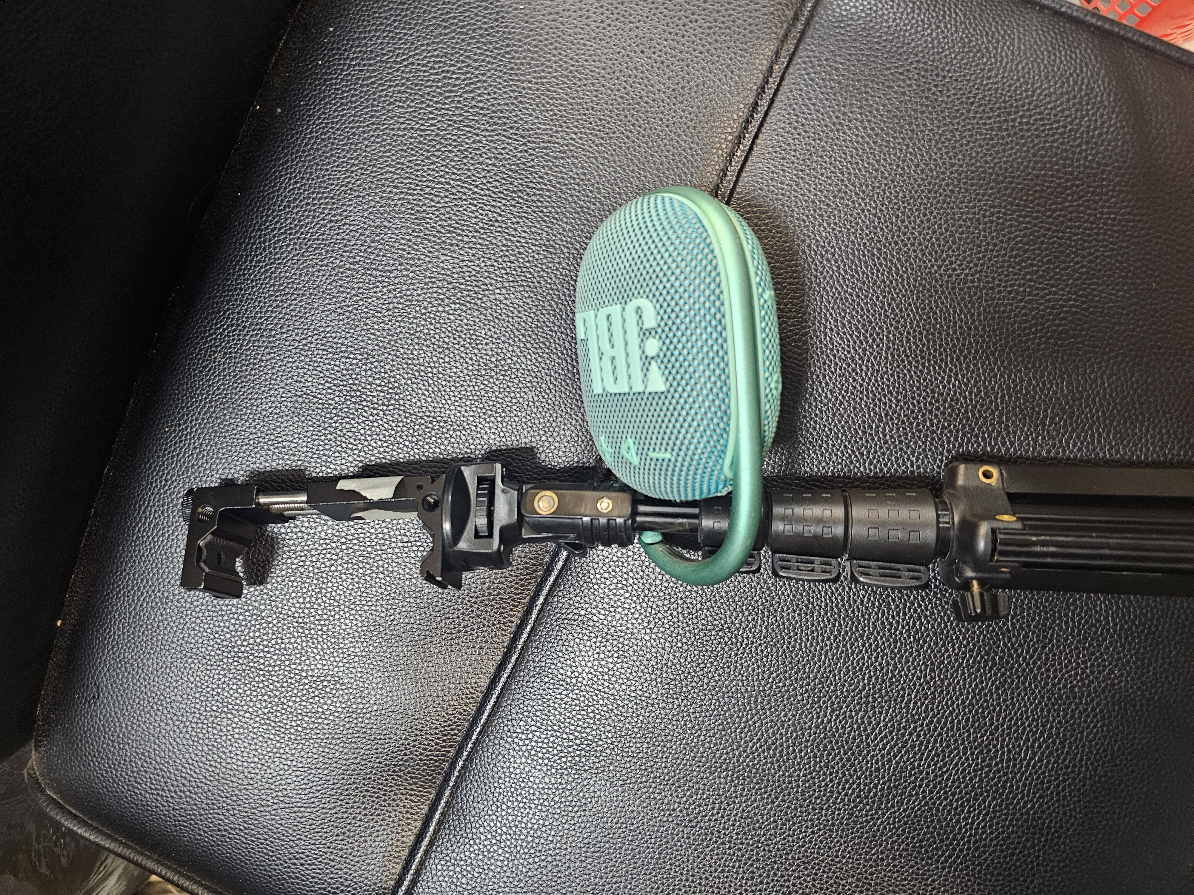 01 chân máy ảnh + 01 loa bluetooth JBL màu xanh, được tìm thấy vào ngày 28/08/2024, ở Phòng chờ cách ly quốc nội
