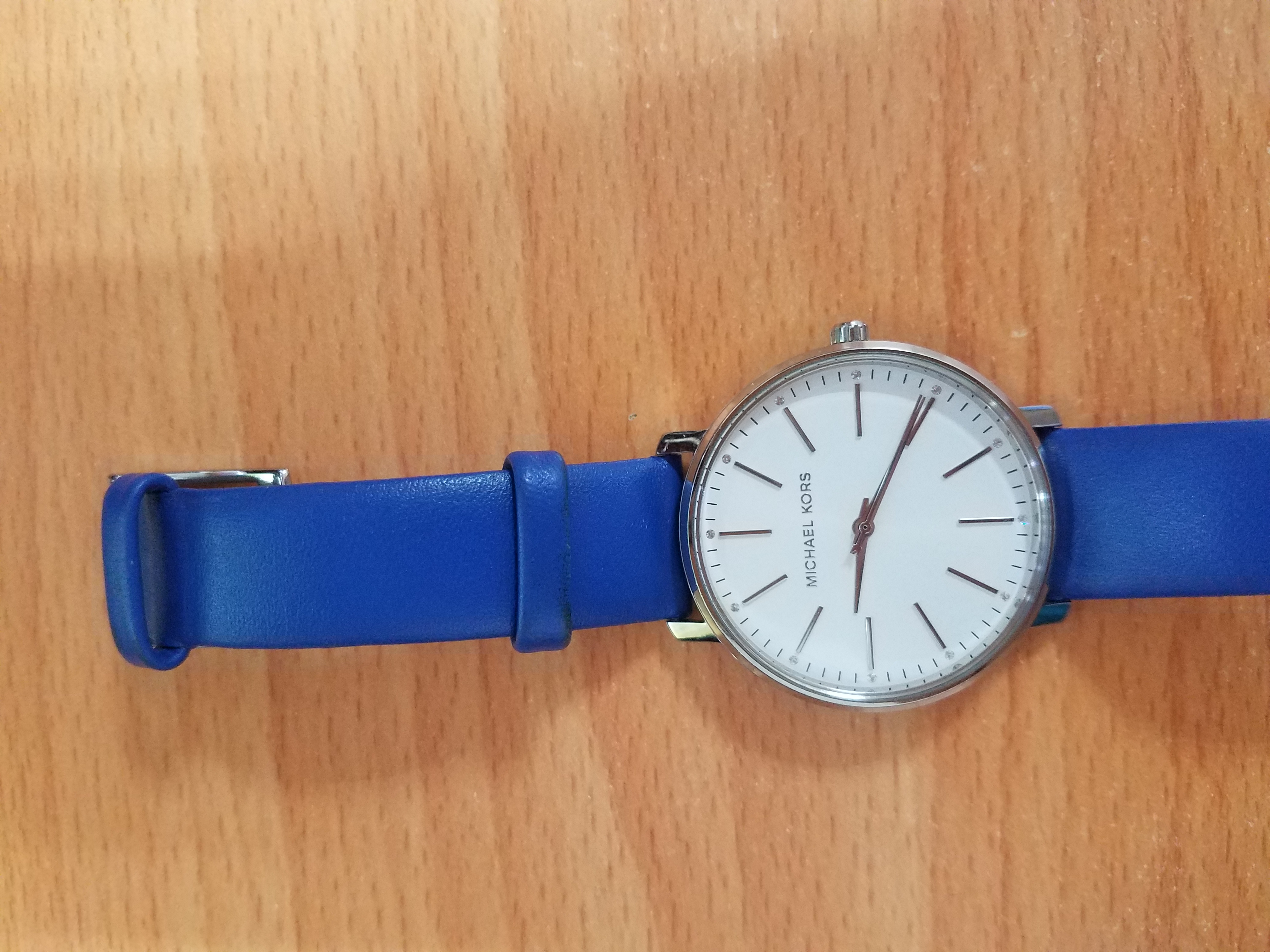 01 đồng hồ dây da màu xanh mặt tròn hiệu Michael Kors, ngày 30/12/2022
