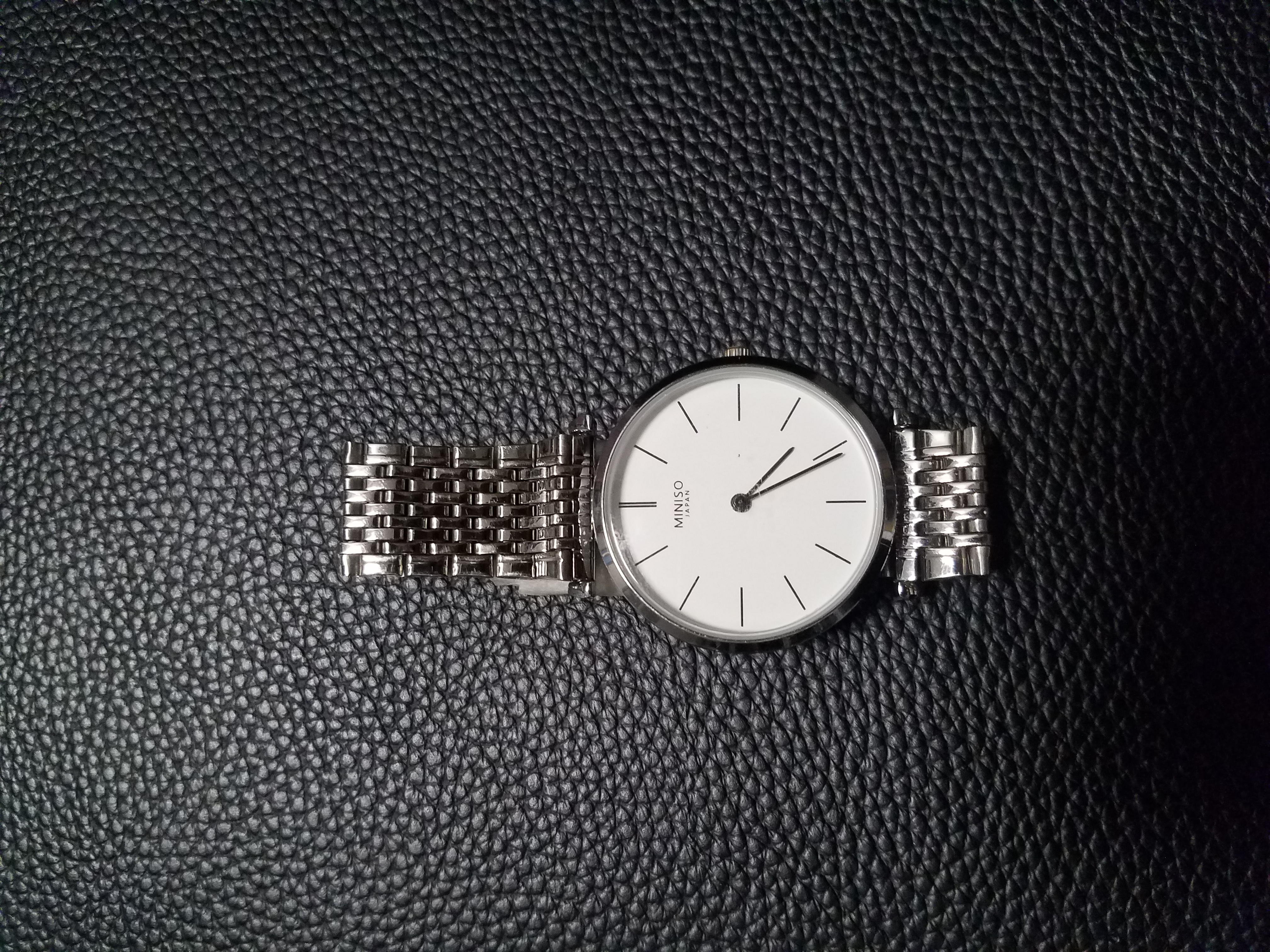 01 đồng hồ dây kim loại màu bạc hiệu MINISO JAPAN, ngày 10/01/2023