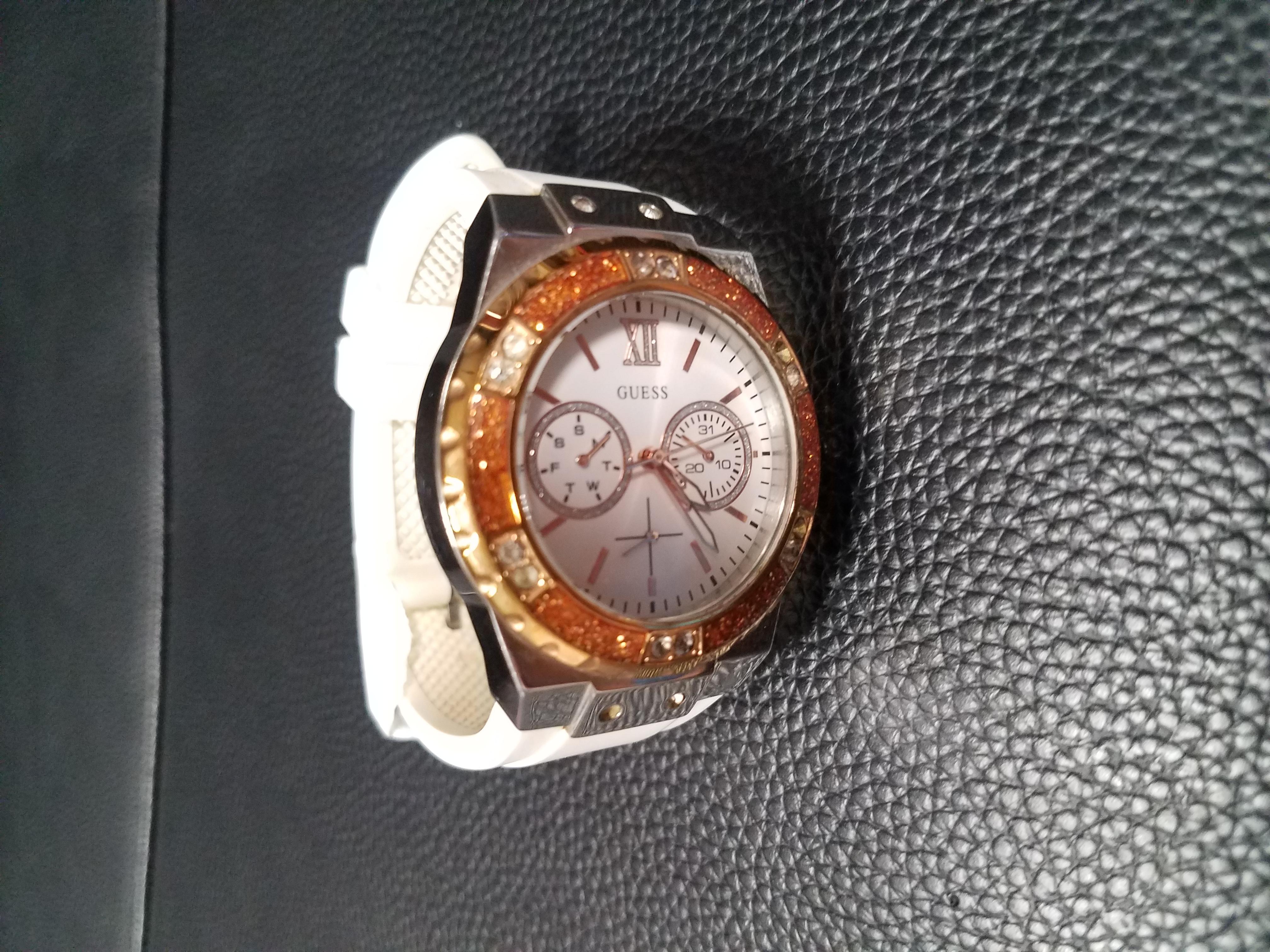 01 đồng hồ dây trắng hiệu GUESS, ngày 09/01/2023