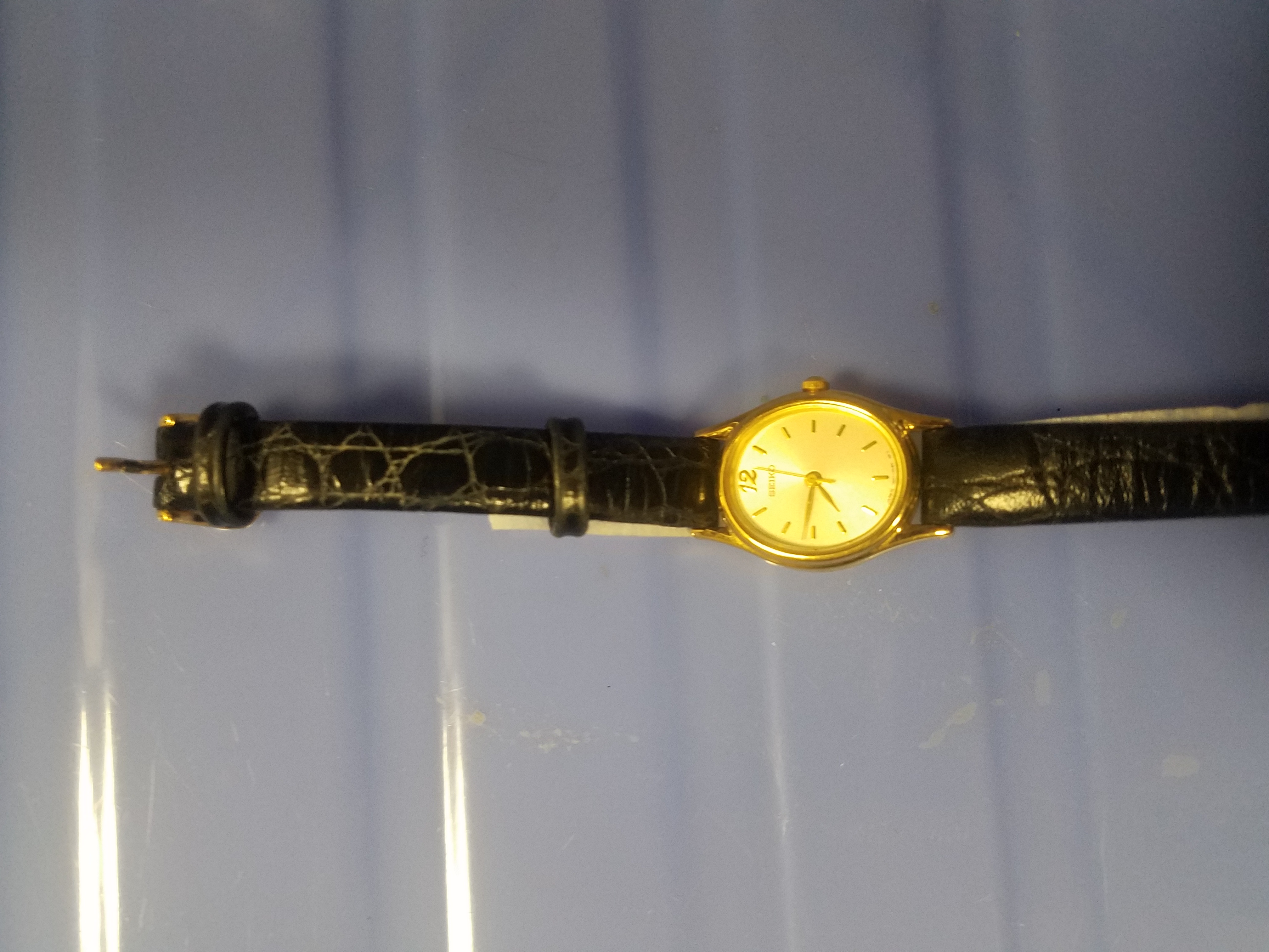 01 đồng hồ hiệu seiko (mặt màu vàng, dây đeo màu đen), ngày 07/08/2023