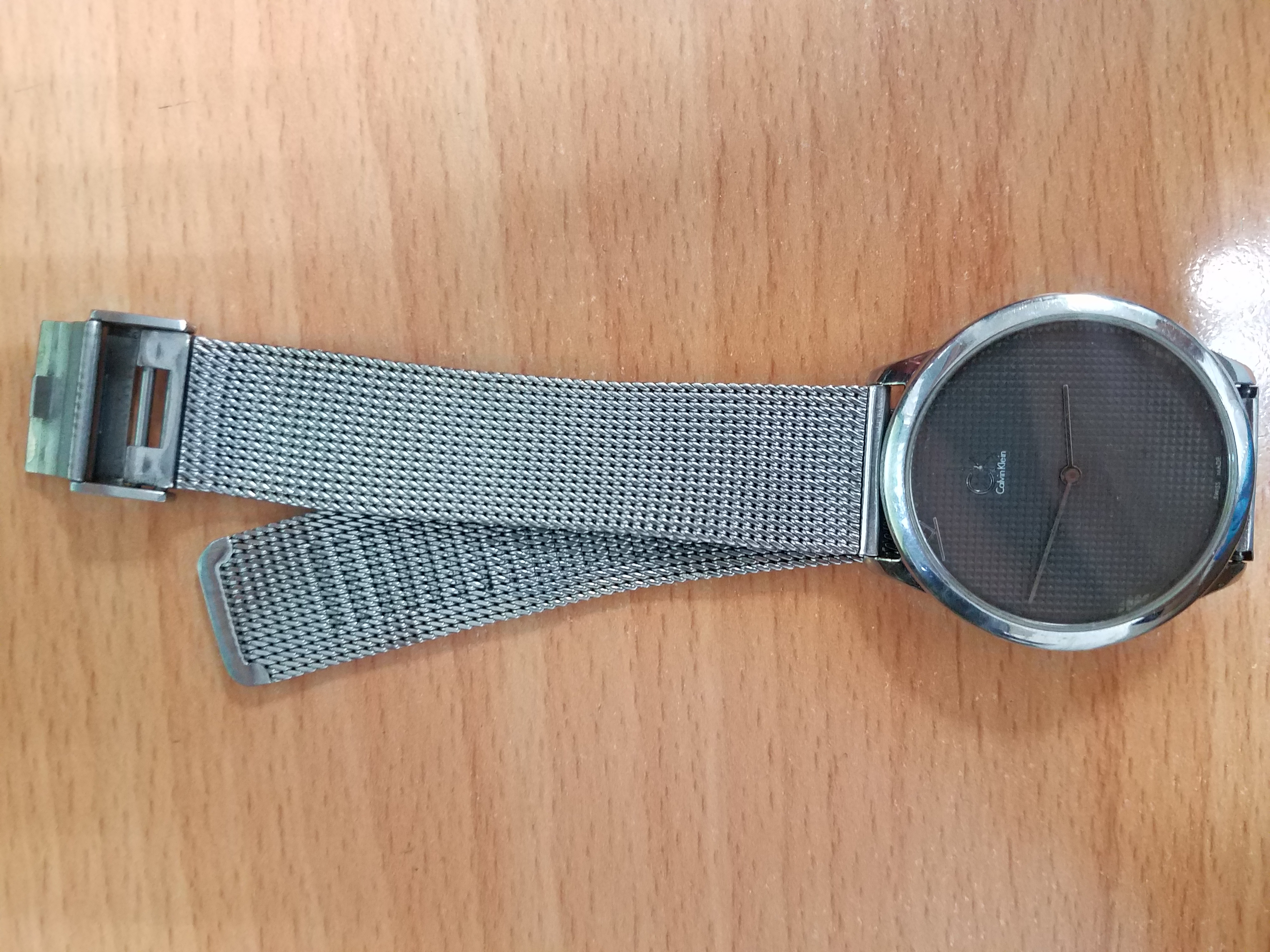 01 đồng hồ kim loại màu bạc có chữ CK, ngày 21/07/2023