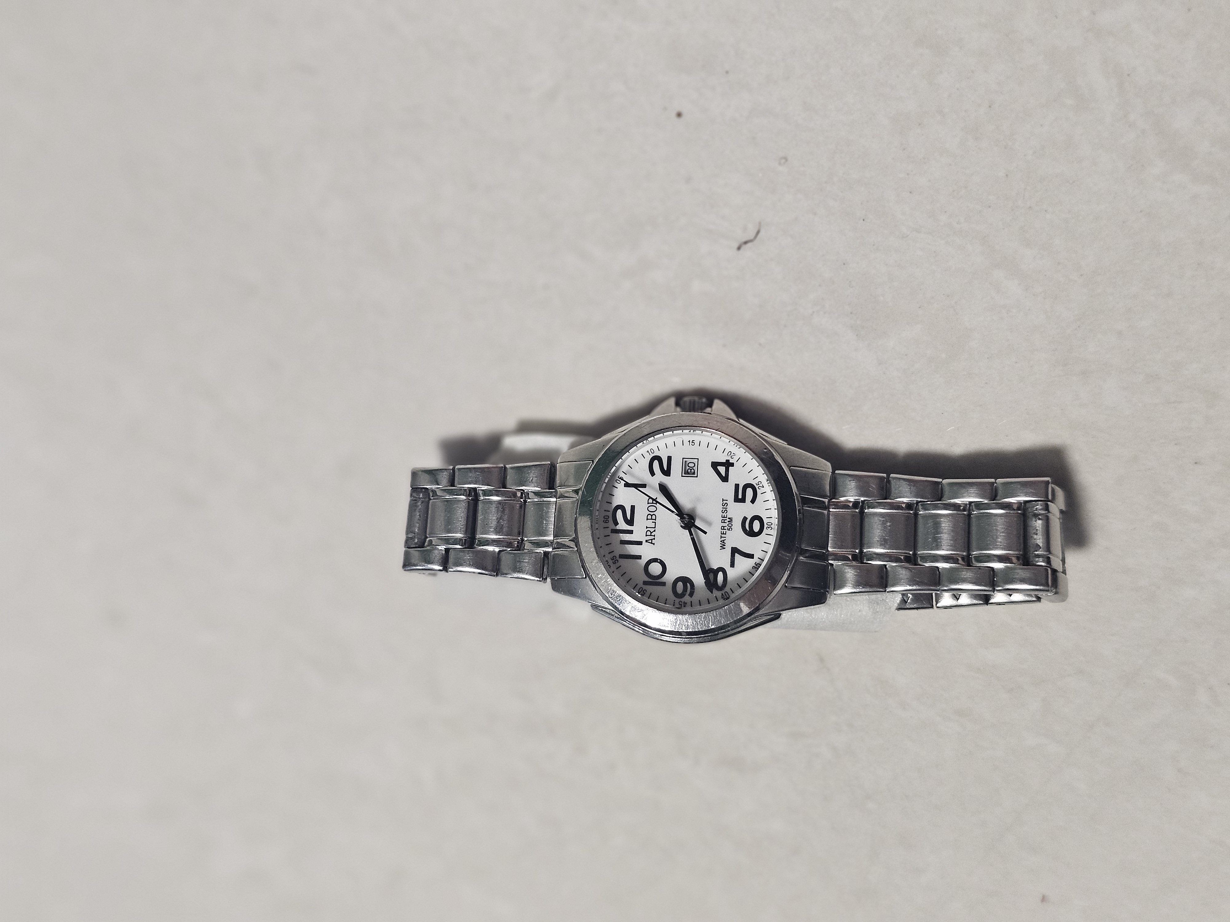 01 đồng hồ kim loại màu bạc hiệu ARLBOR, được tìm thấy ở ANSC HLXT Quốc tế vào ngày 28/04/2025