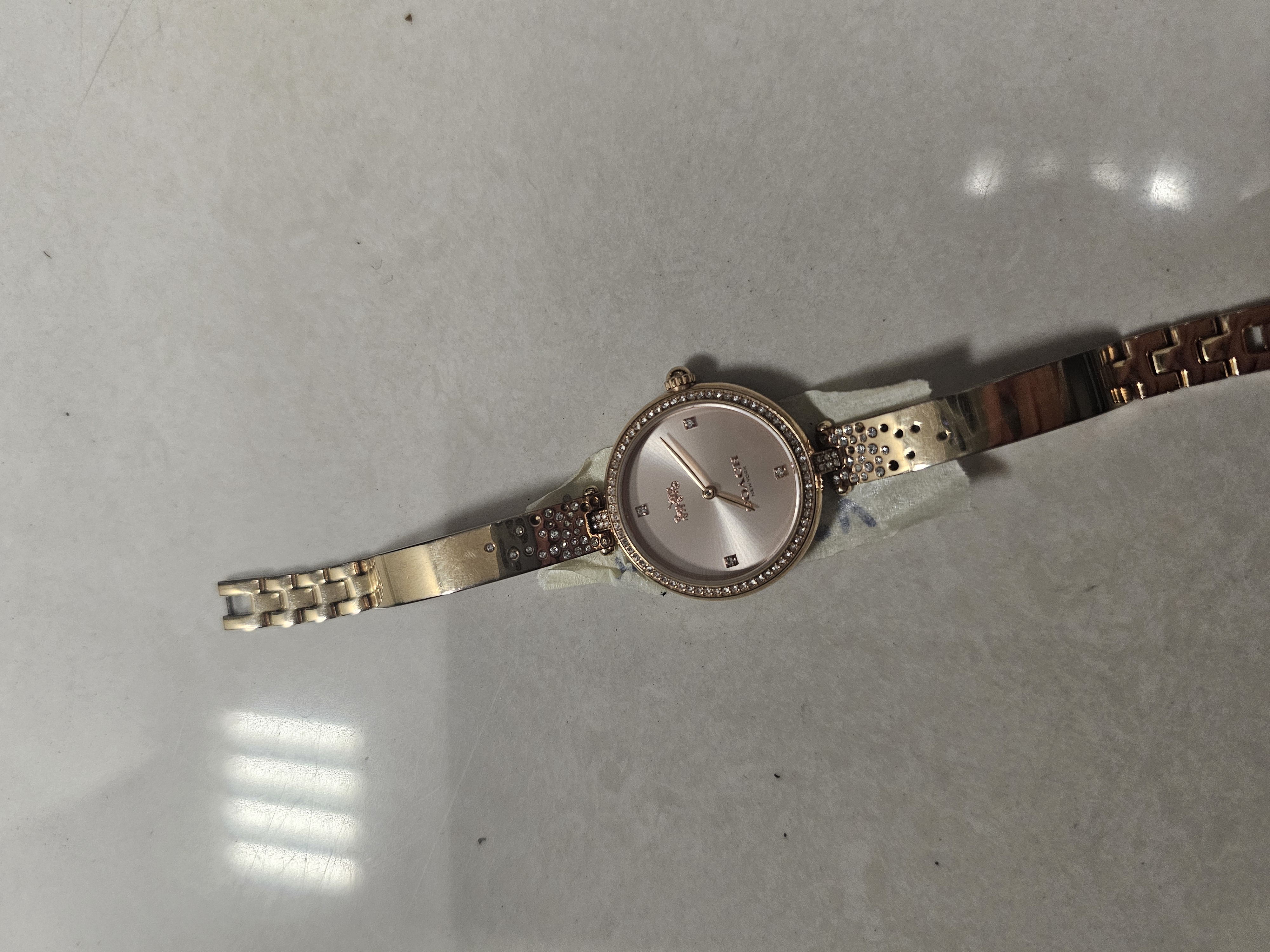 01 đồng hồ kim loại màu hồng hiệu coach, được tìm thấy vào ngày 12/10/2024.